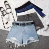 Shorts jeans rasgados femininos plus size gordos mm 2025 cintura alta modeladores que envolvem o quadril calças soltas em A pernas largas hot pants femininos