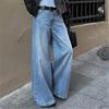 Calças mágicas com efeito de pernas longas! Outono novo jeans com fenda lateral feminino elasticidade em quatro direções slim fit perna reta perna larga