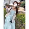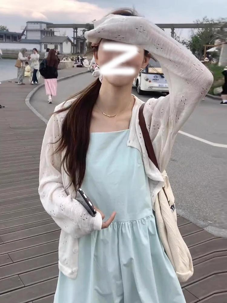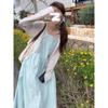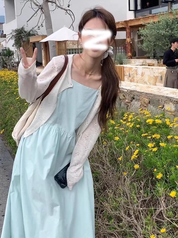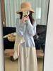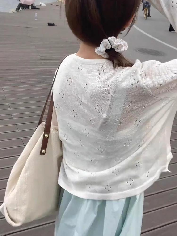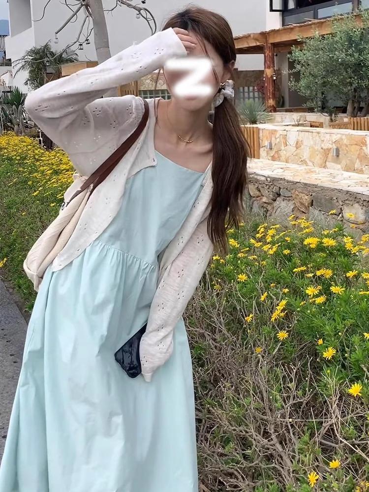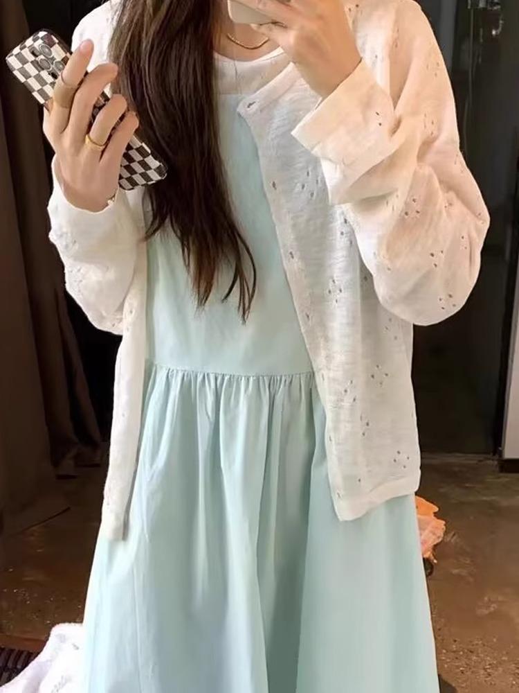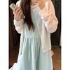 Cardigã Tricotado em Seda Gelo com Saia Suspensório Top de Manga Comprida para Mulheres 2025 Verão Recortado Chic e Leve Blusa de Proteção Solar