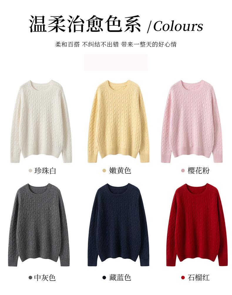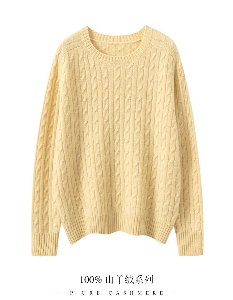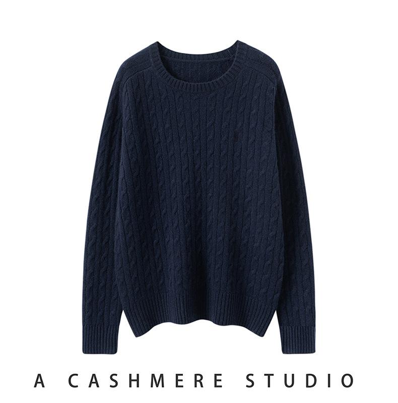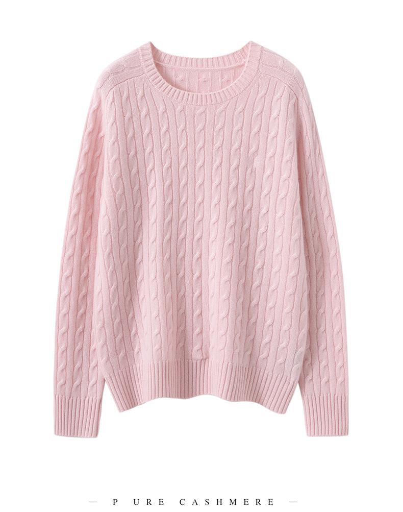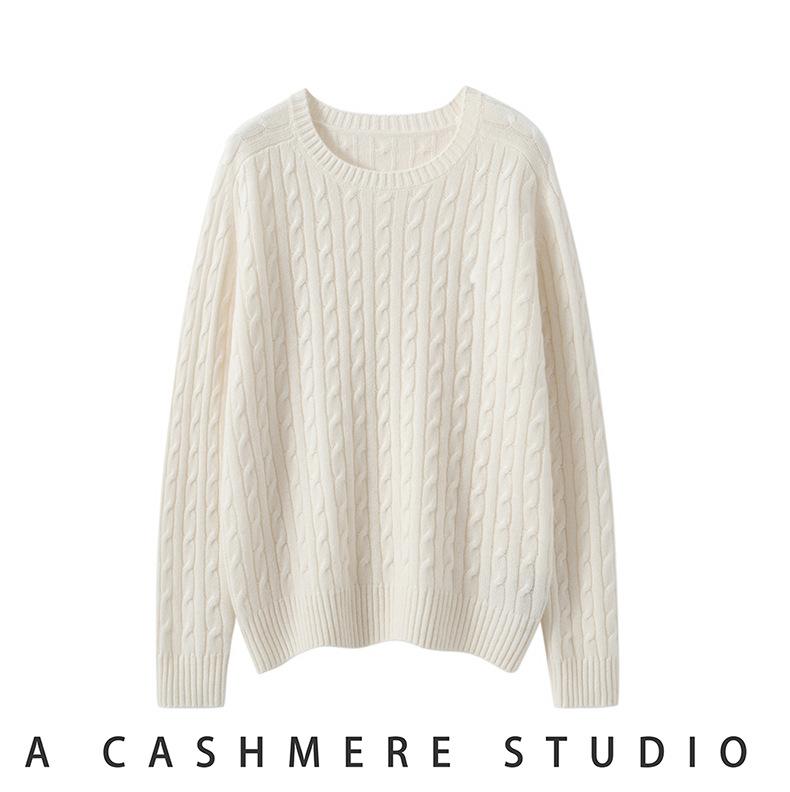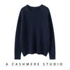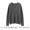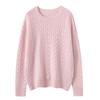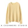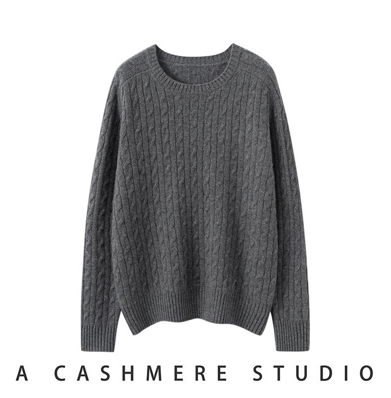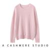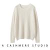 Suéter de caxemira feminino 100% caxemira pura outono e inverno solto versátil gola redonda simples tricô de cabo pulôver