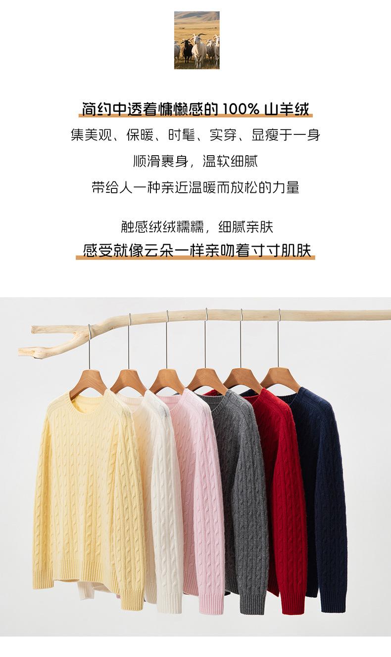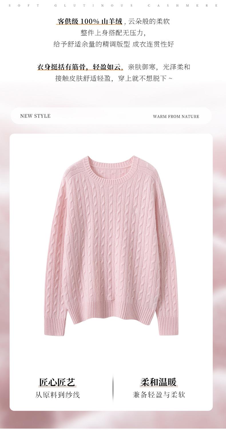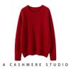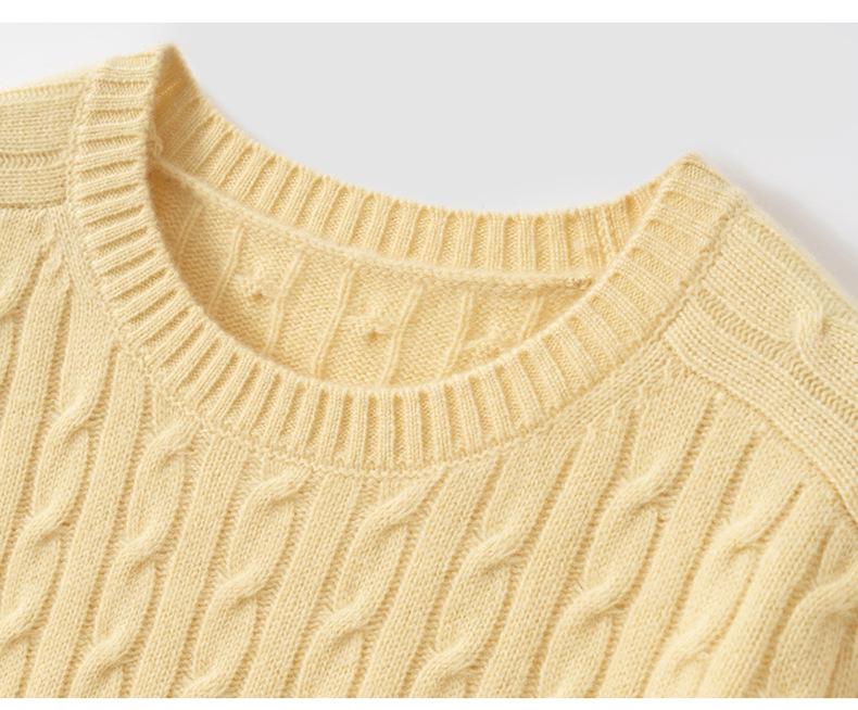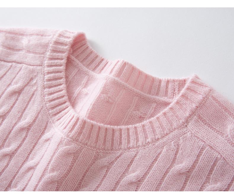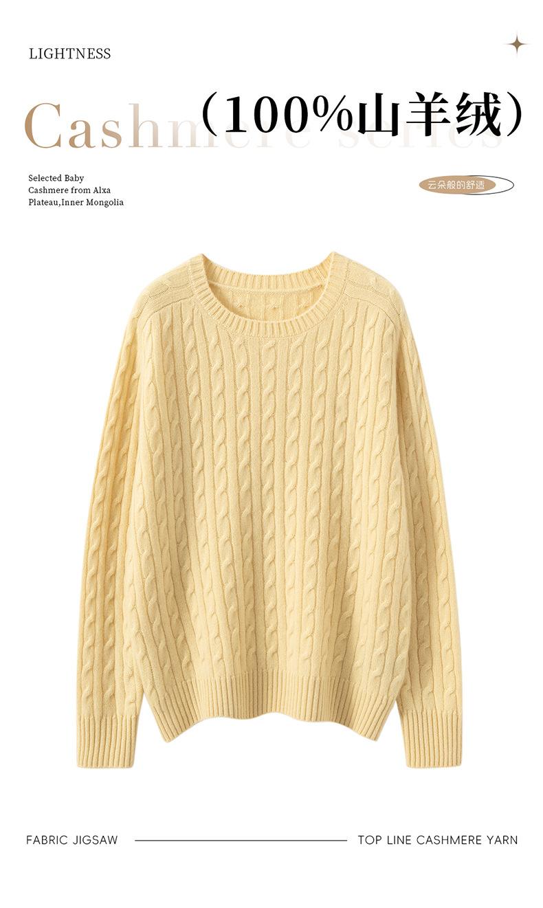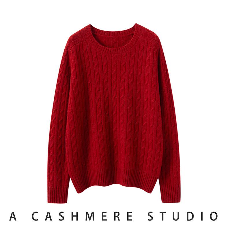 Suéter de caxemira feminino 100% caxemira pura outono e inverno solto versátil gola redonda simples tricô de cabo pulôver