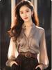 Popular este ano, nova blusa roxa de chiffon para o início da primavera, camisa feminina de alta qualidade, temperamento nicho francês, levemente madura.