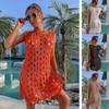 Vestido de Praia Tricotado Vazado com Alças Europeu e Americano Vestido Sexy com Fenda e Decote nas Costas Biquíni Roupa de Banho Sobrecamisa Mulheres