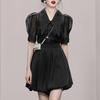 2025 Novo Estilo de Verão Estilo Europeu e Americano Design de Fita Plissada Saia Solta de Malha + Conjunto de Shorts