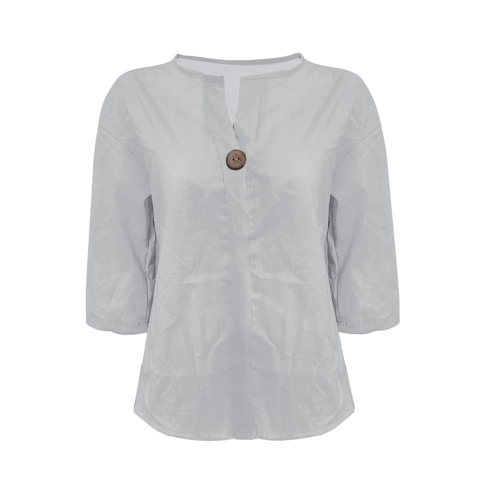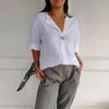 Roupa feminina transfronteiriça primavera/verão 2025 Amazon nova camisa de um botão moda casual europeia e americana linho manga longa Shopee