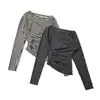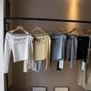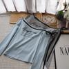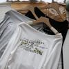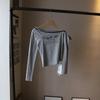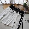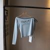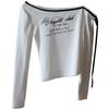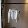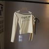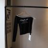 [Bi Zheng] 2025 Início do Outono Novo Estilo Coreano Estampa de Letras Cadarço Ombro Único Fora do Ombro Emagrecimento Manga Longa Camiseta Feminina 4592