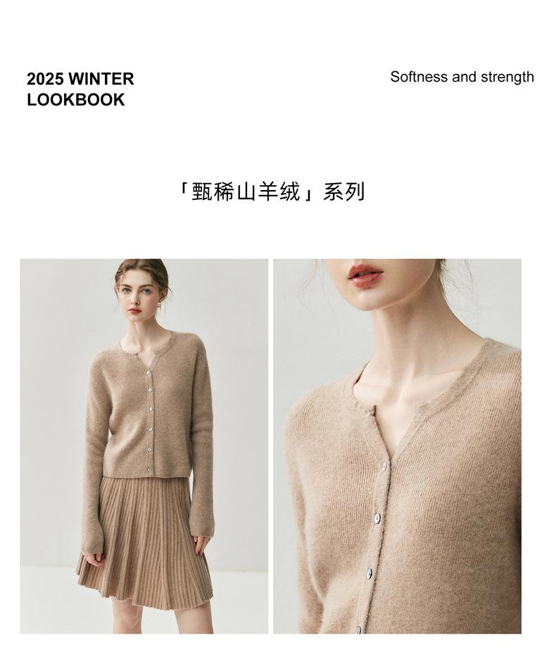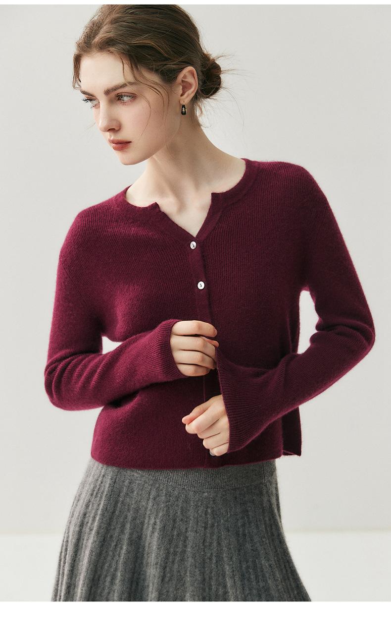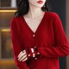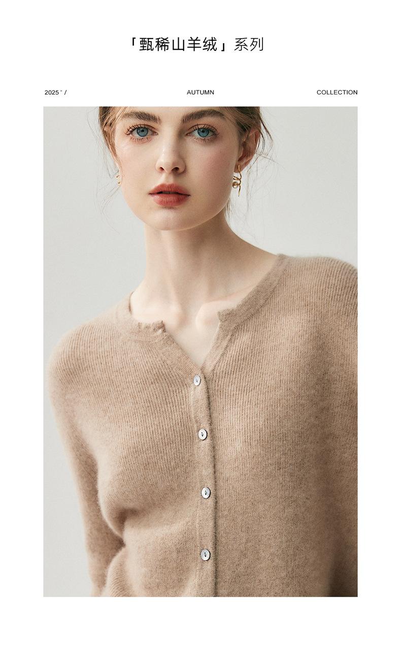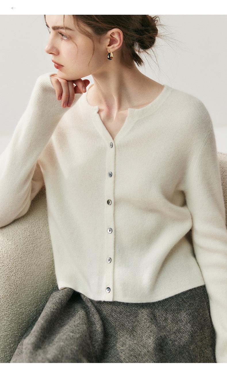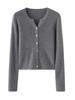 Macio e versátil~Cardigã de cashmere feminino decote V suéter curto 2025 outono e inverno novo lã de malha outerwear slim-fit