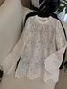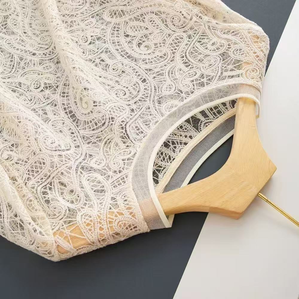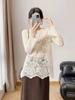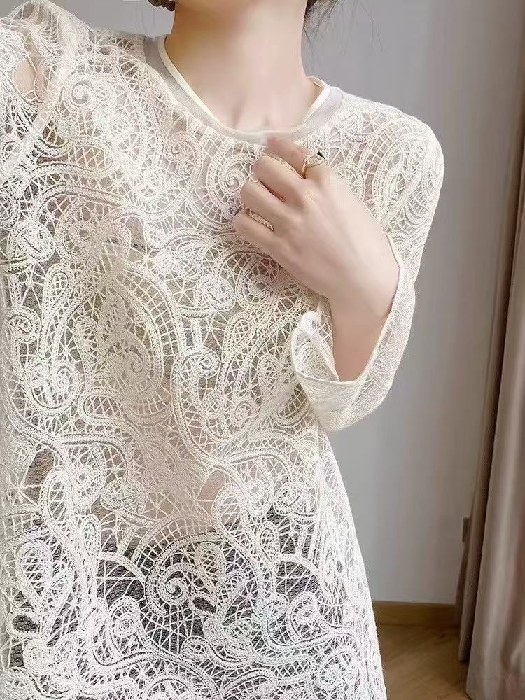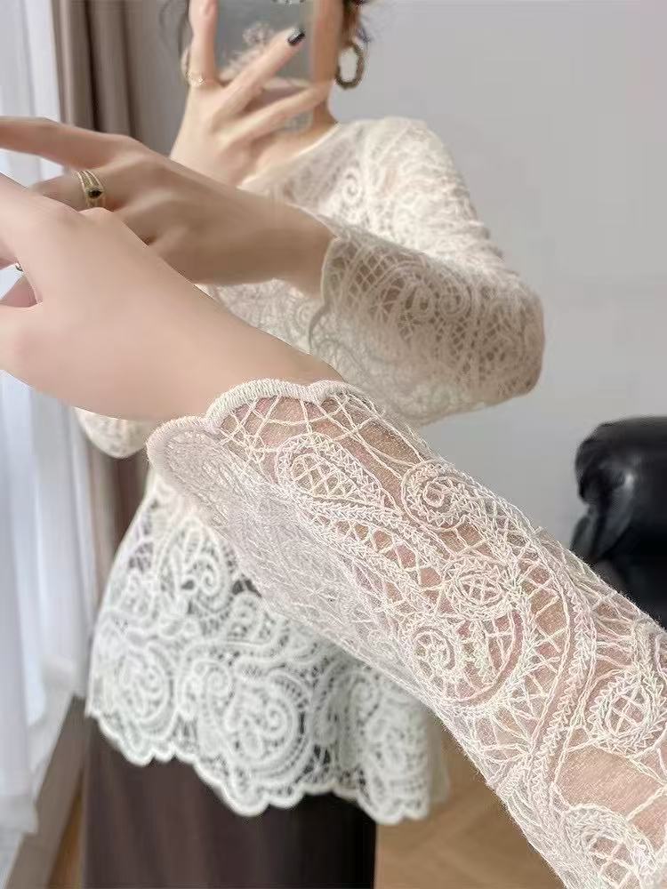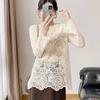 Camiseta de Renda Crochê Vazada Estilo Europeu Fashion Única Top de Malha para Mulheres, Novo Outono Estilo Francês, Top Em Camadas Emagrecedor