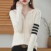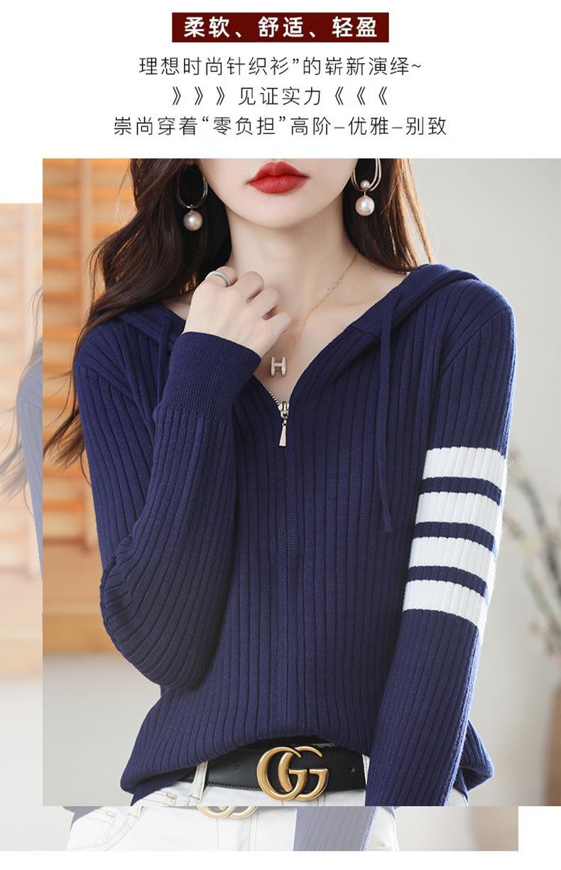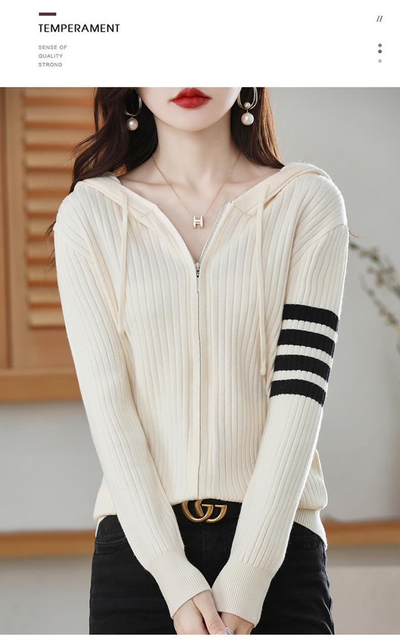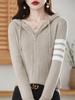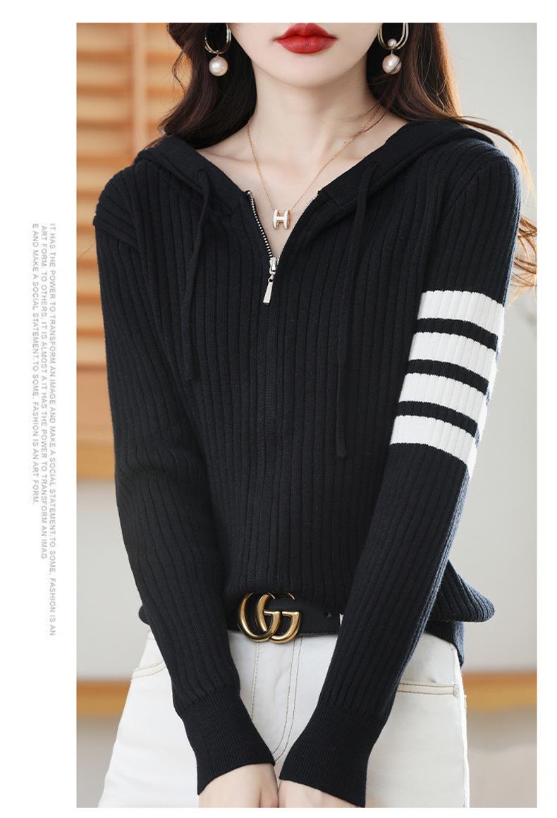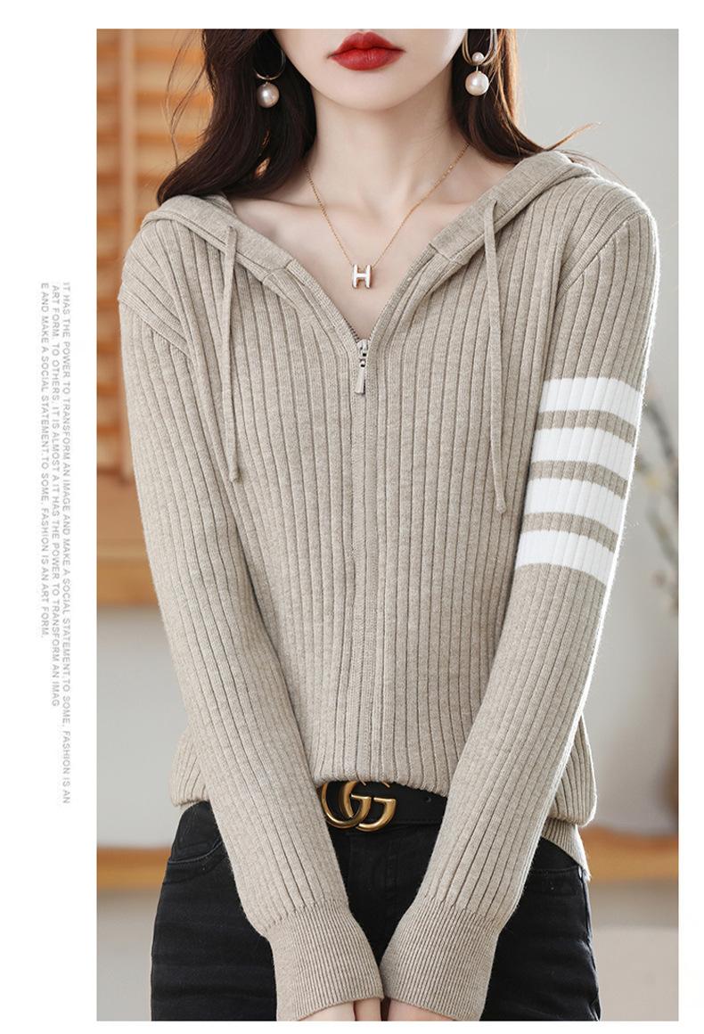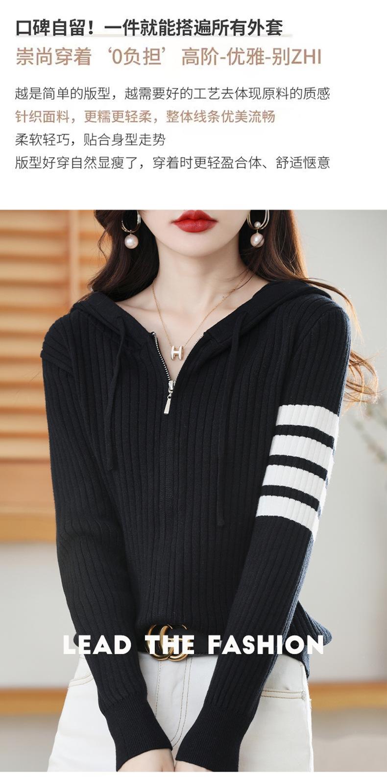 Cardigã Tricotado com Capuz TB Suéter Feminino Jaqueta Pequena Outono Inverno Moletom Zíper Solto com Capuz Casaco da Moda Outono Inverno