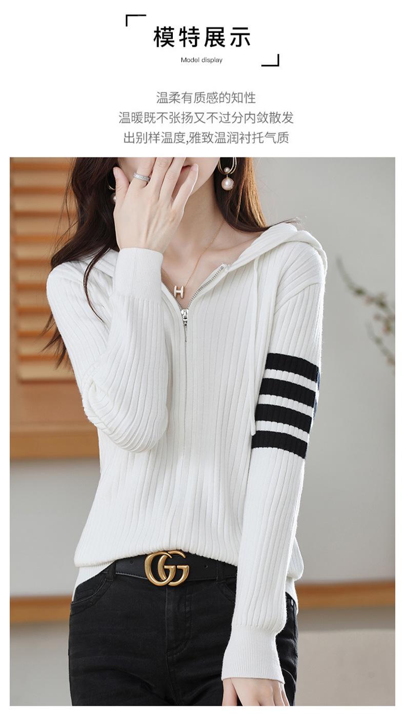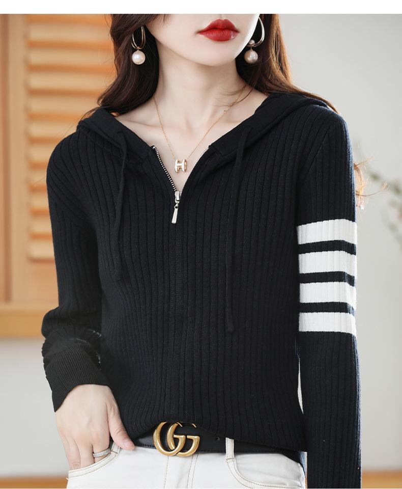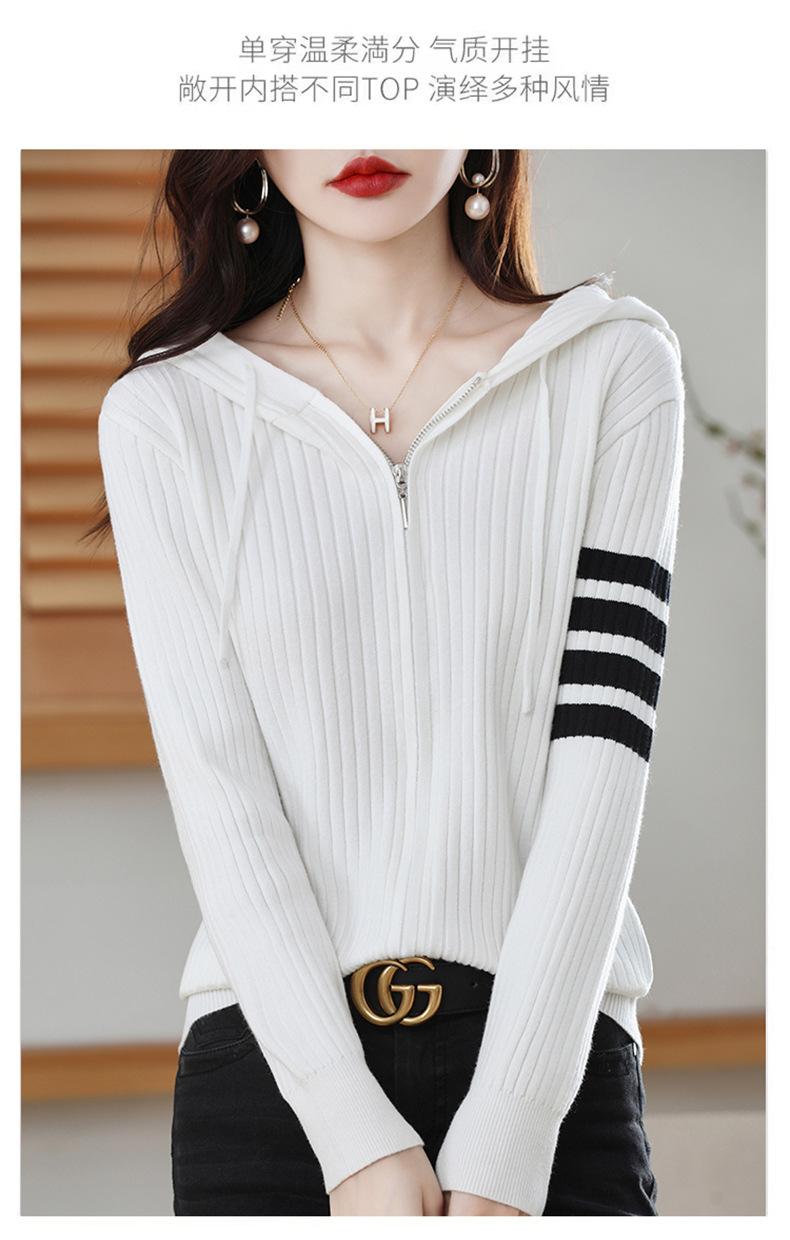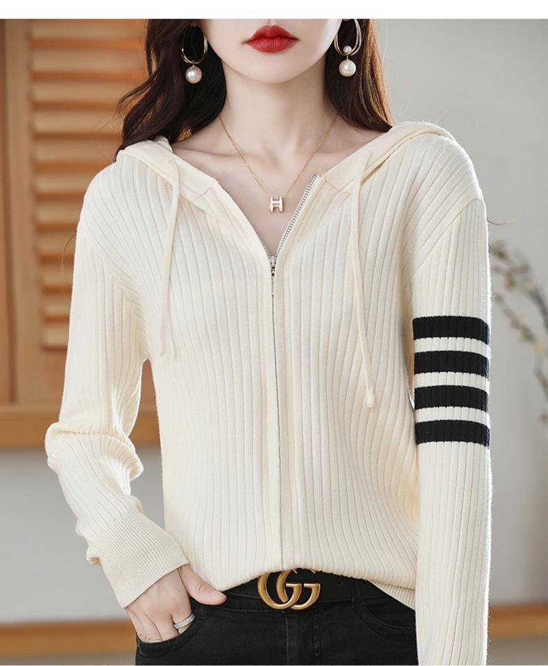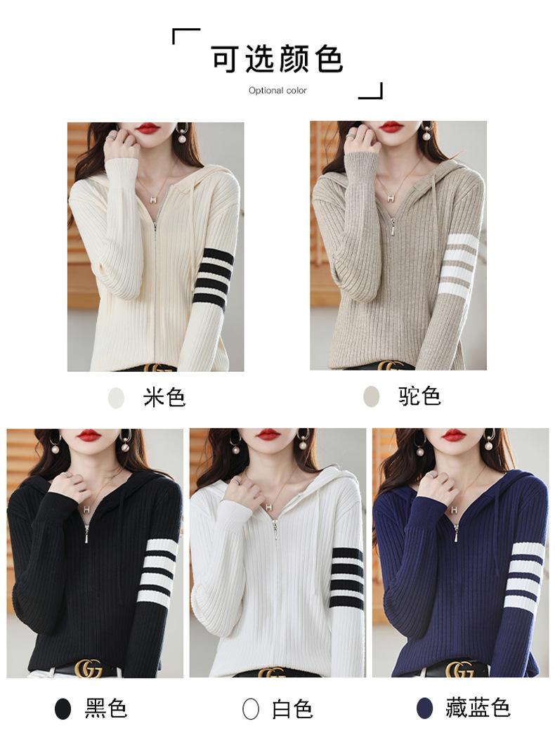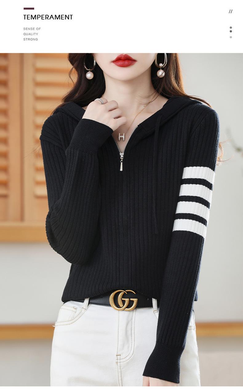 Cardigã Tricotado com Capuz TB Suéter Feminino Jaqueta Pequena Outono Inverno Moletom Zíper Solto com Capuz Casaco da Moda Outono Inverno