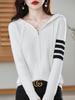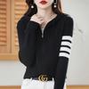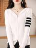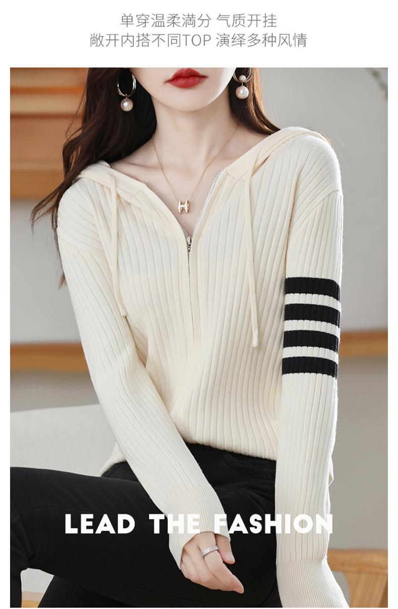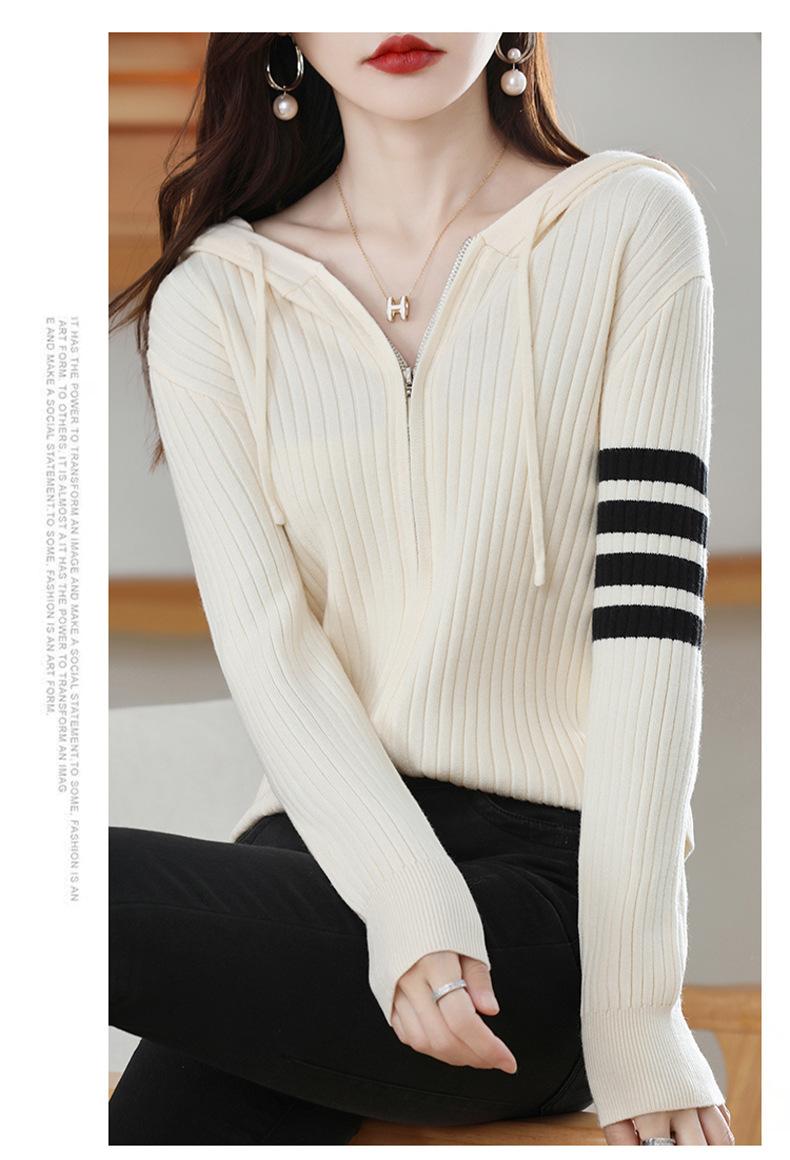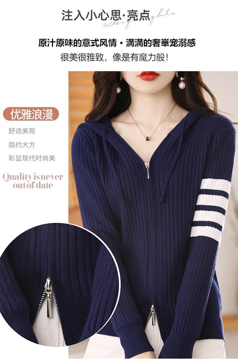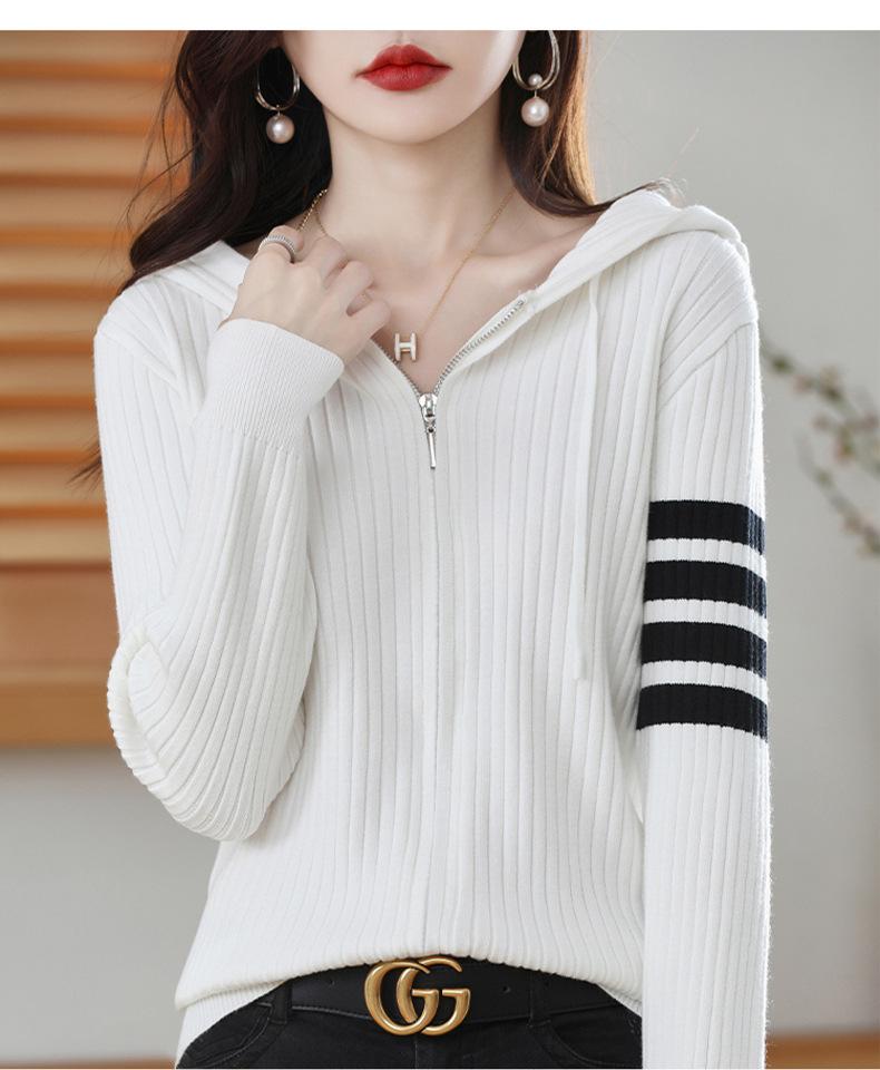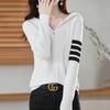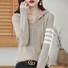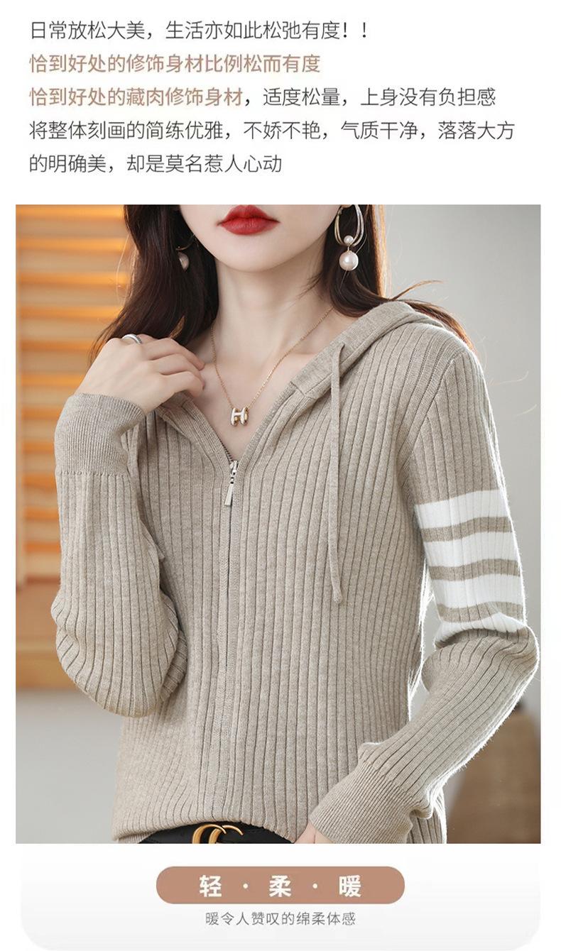 Cardigã Tricotado com Capuz TB Suéter Feminino Jaqueta Pequena Outono Inverno Moletom Zíper Solto com Capuz Casaco da Moda Outono Inverno