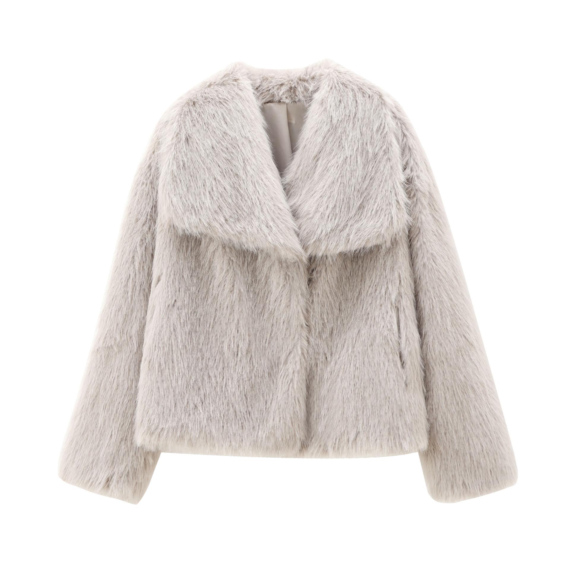 Roupa Europeia e Americana Transfronteiriça Aliexpress Moda Popular Efeito Pelo Sintético Jaqueta Curta