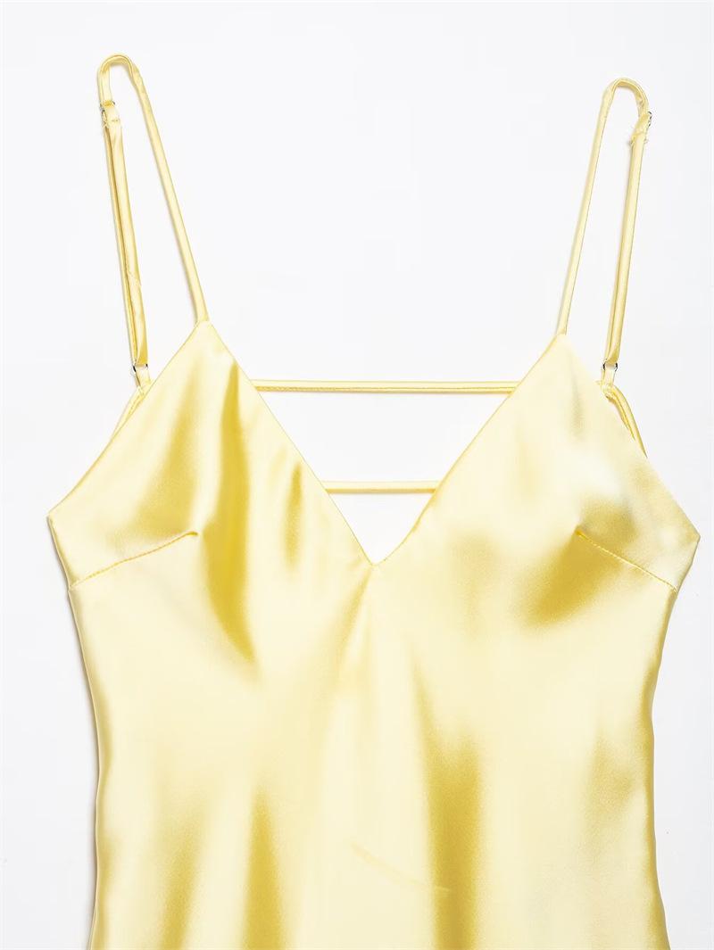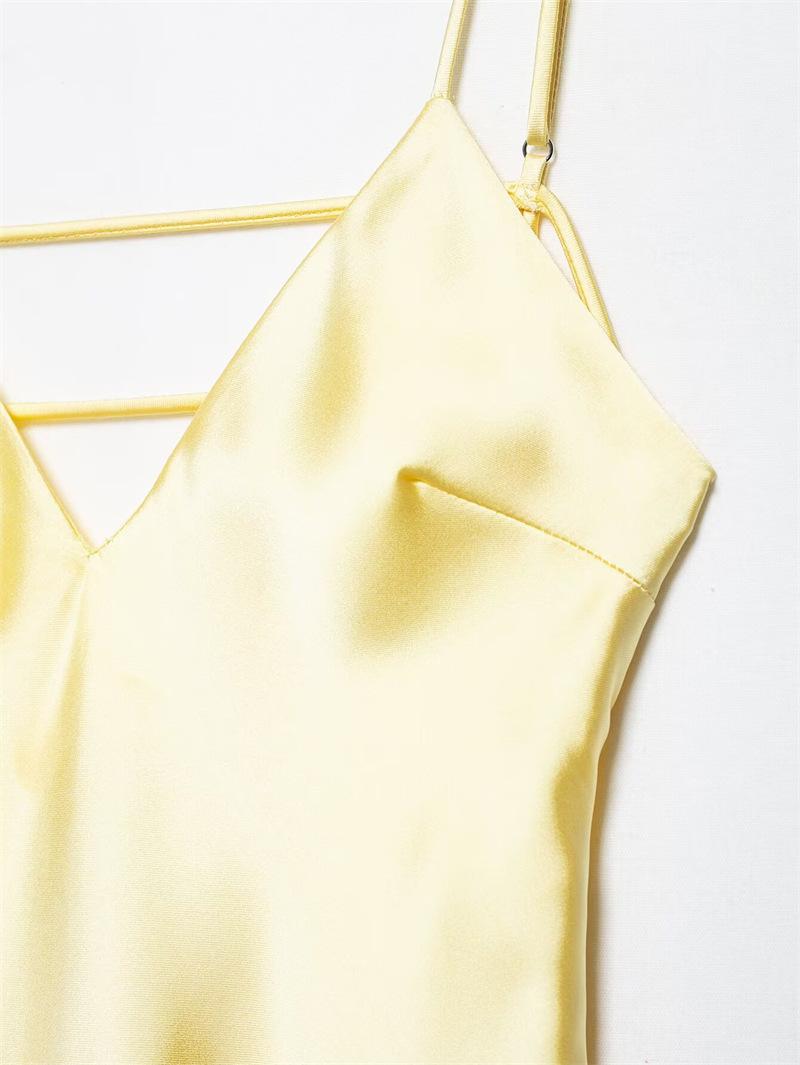 Aliexpress Atacado de Roupas Transfronteiriças Europeias e Americanas 2025 Início da Primavera Novo Vestido Midi Bicolor com Textura de Cetim de Seda