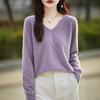 2025 Outono/Inverno Novo Suéter de Caxemira Feminino Solto Simples Pulôver Base Manga Longa Top Decote V Renda Manga Ombro Caído