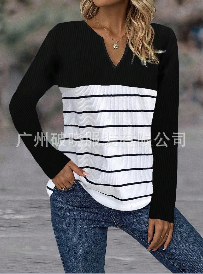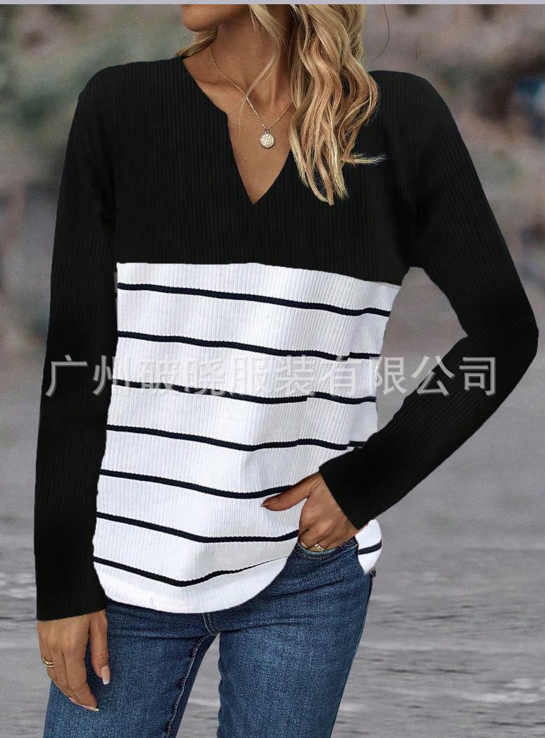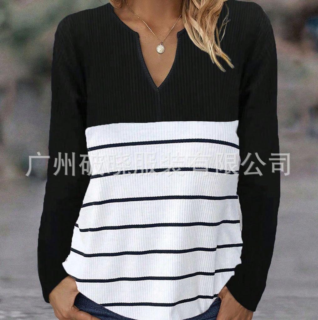 2025 Novo Amazon Manga Longa Europeu e Americano Transfronteiriço Outono Casual Roupas Femininas Temperamento Combinação de Cores