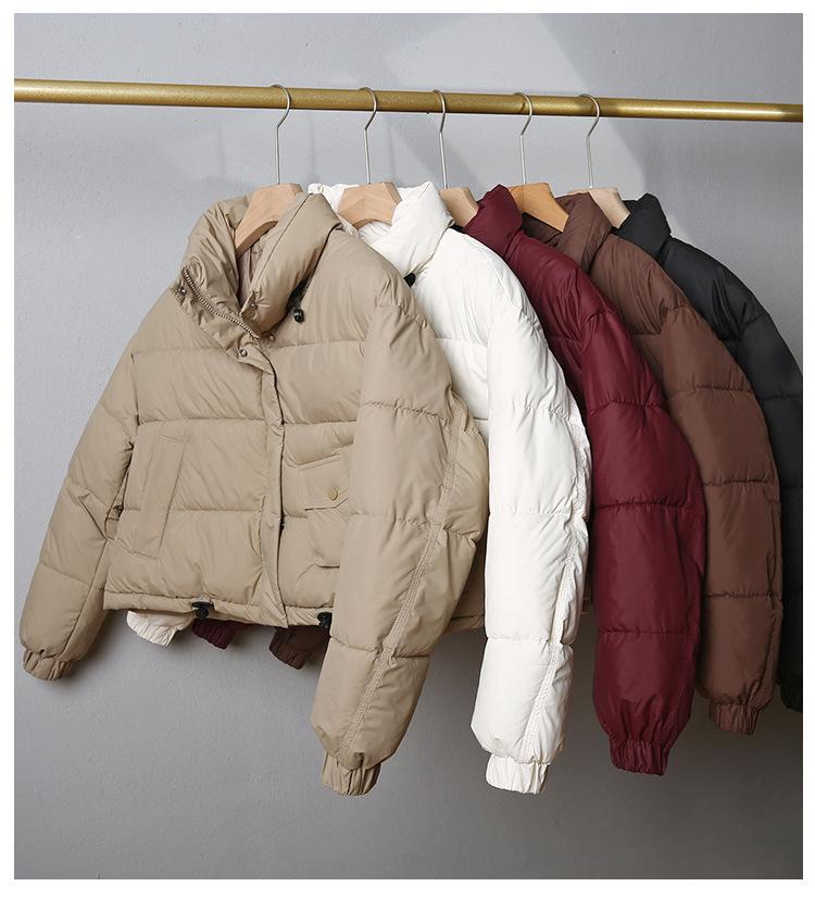 Casaco curto de algodão com penugem para mulheres inverno 2024 novo estilo coreano moda solto engrossado quente casaco pão