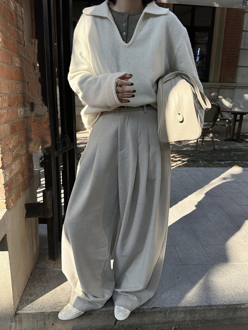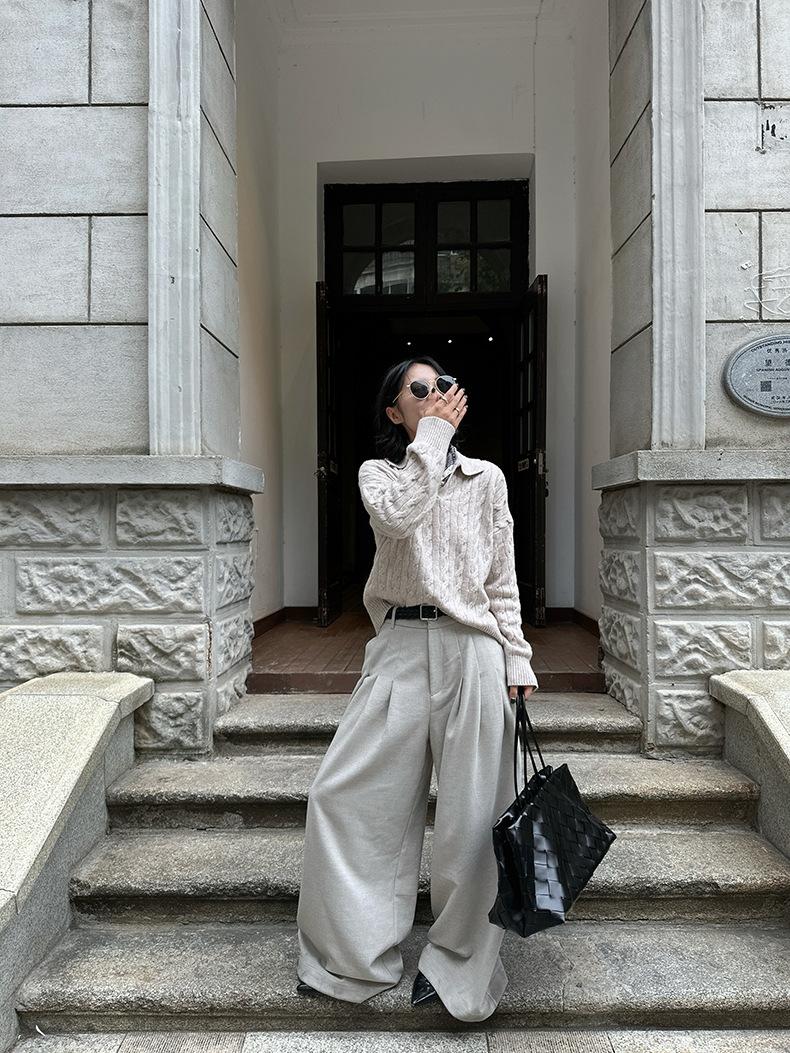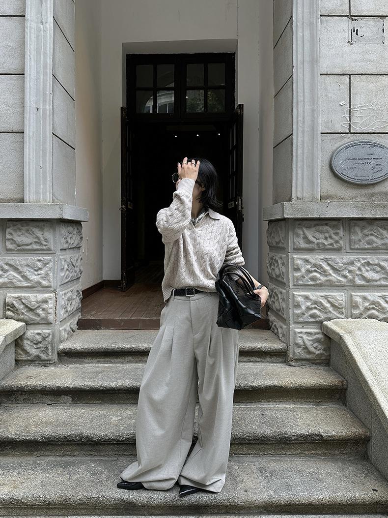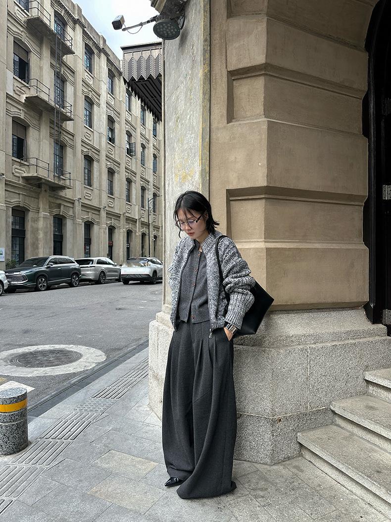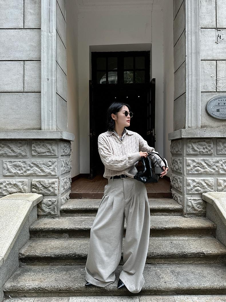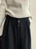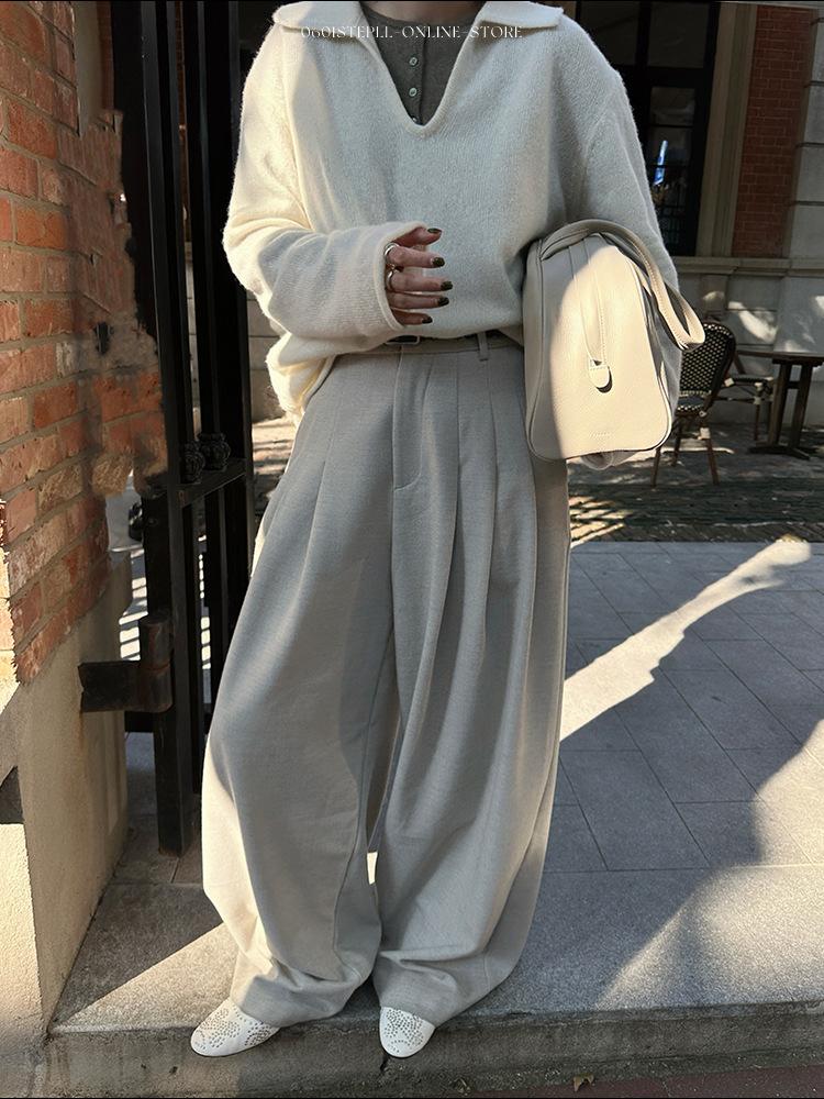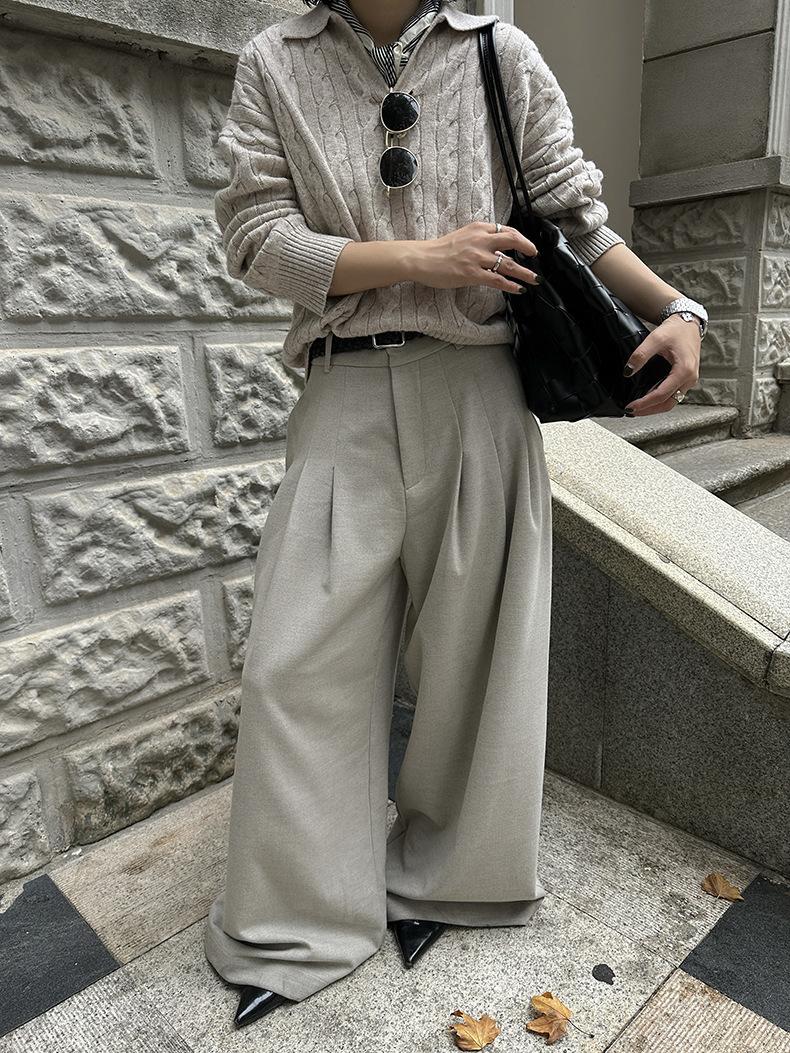 Calças de Alfaiataria TENSO Retro Drapey Moda Calças Soltas de Perna Reta Calças Casuais Design Plissado Senso de Outono Calças de Perna Larga