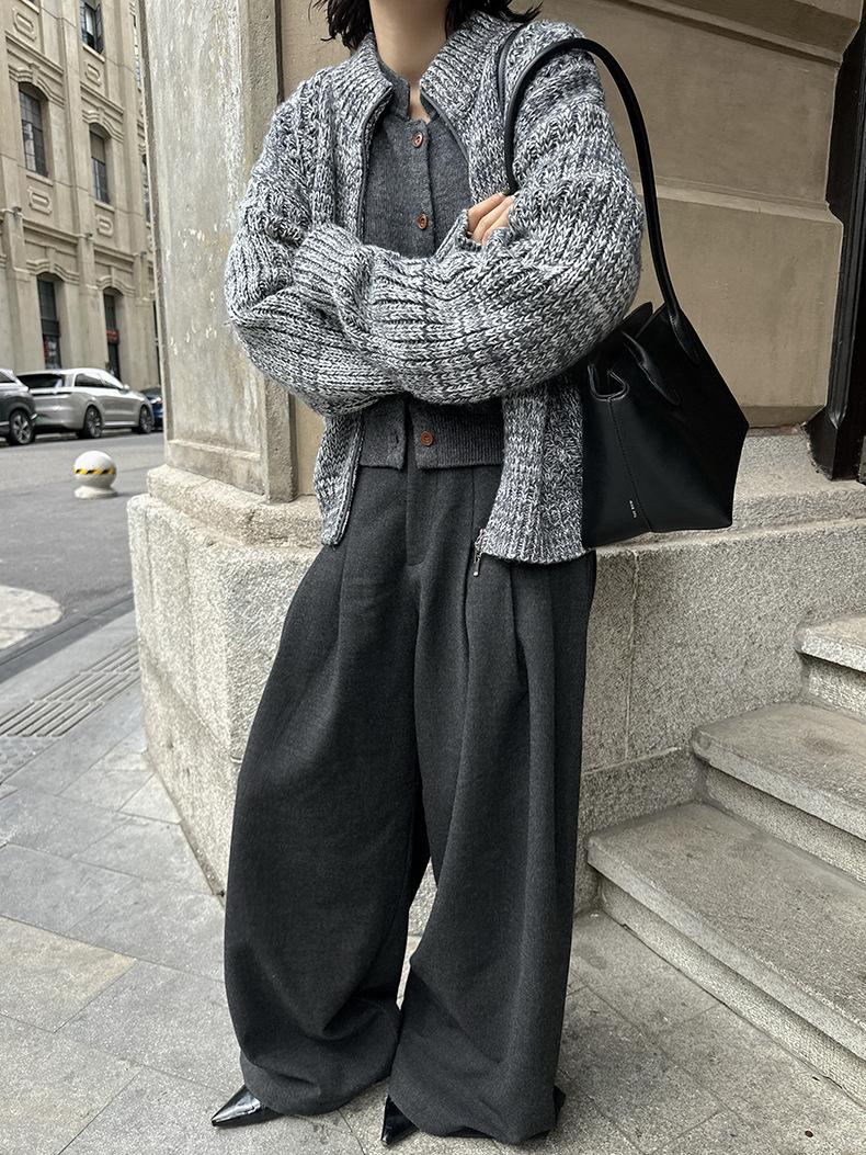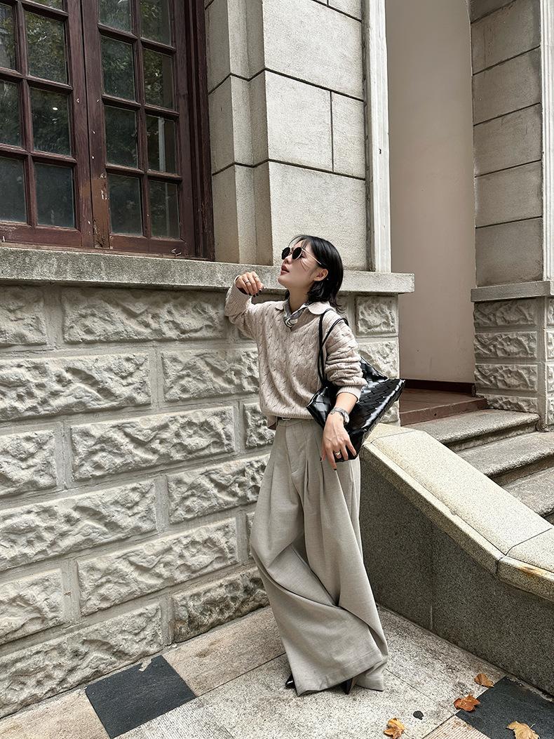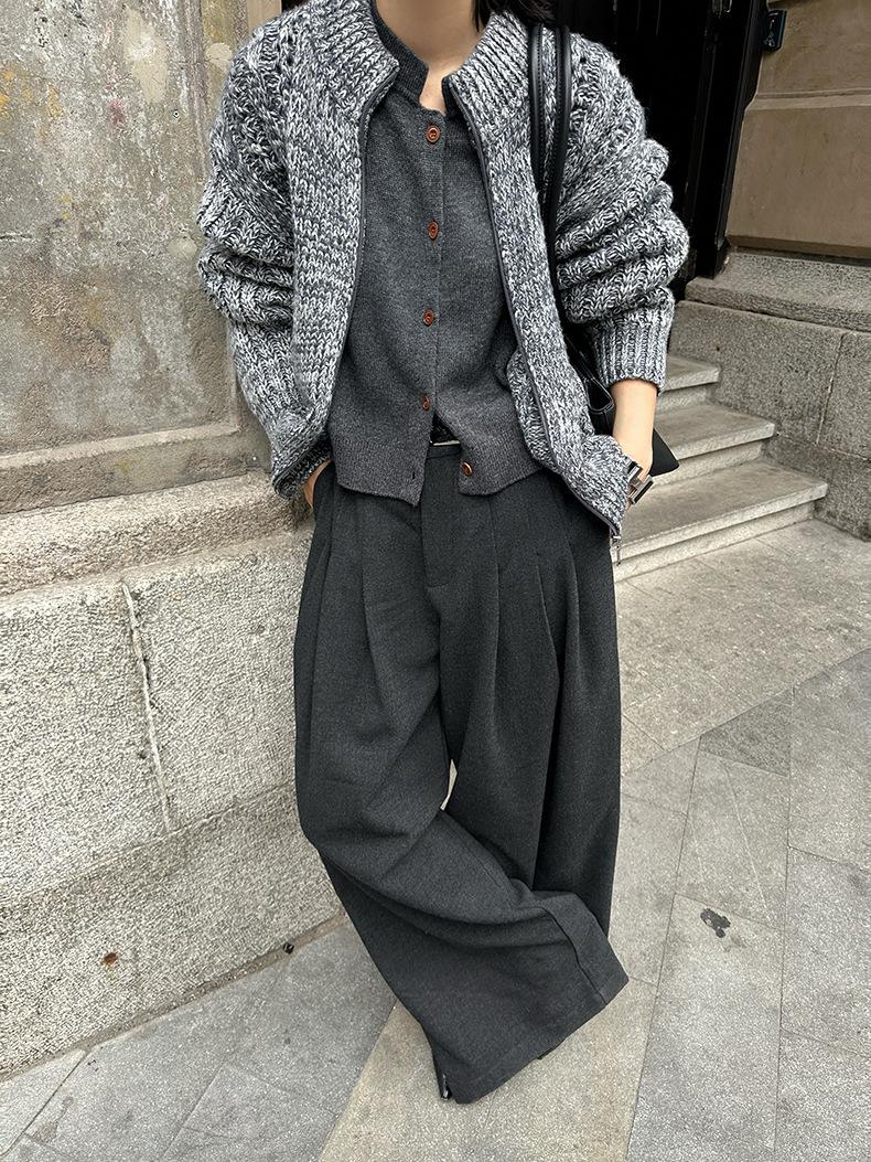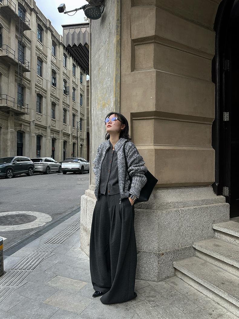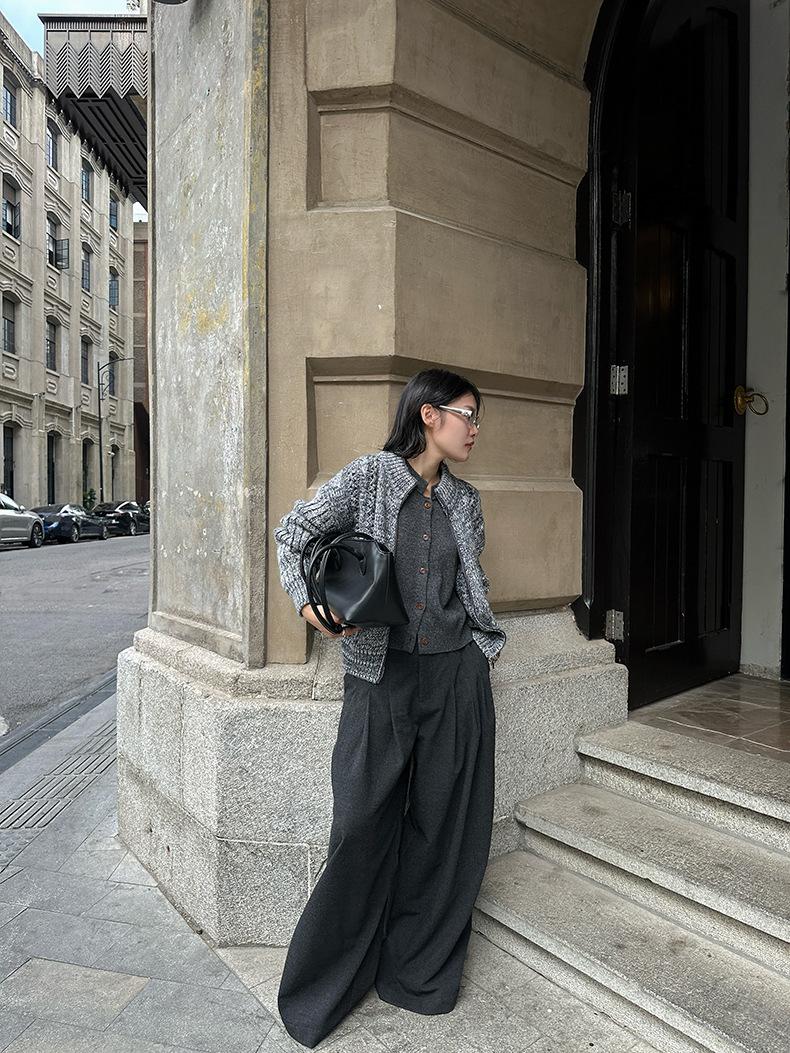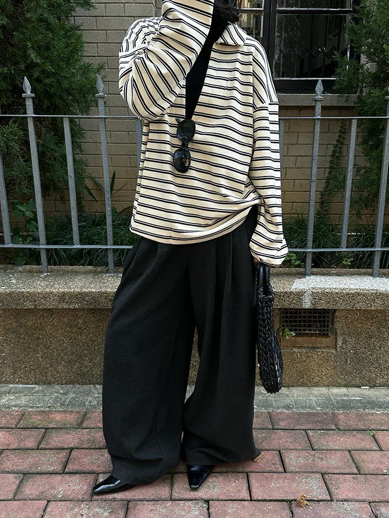 Calças de Alfaiataria TENSO Retro Drapey Moda Calças Soltas de Perna Reta Calças Casuais Design Plissado Senso de Outono Calças de Perna Larga