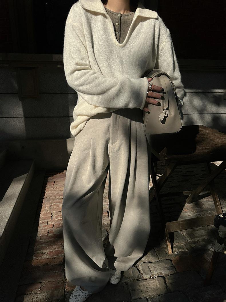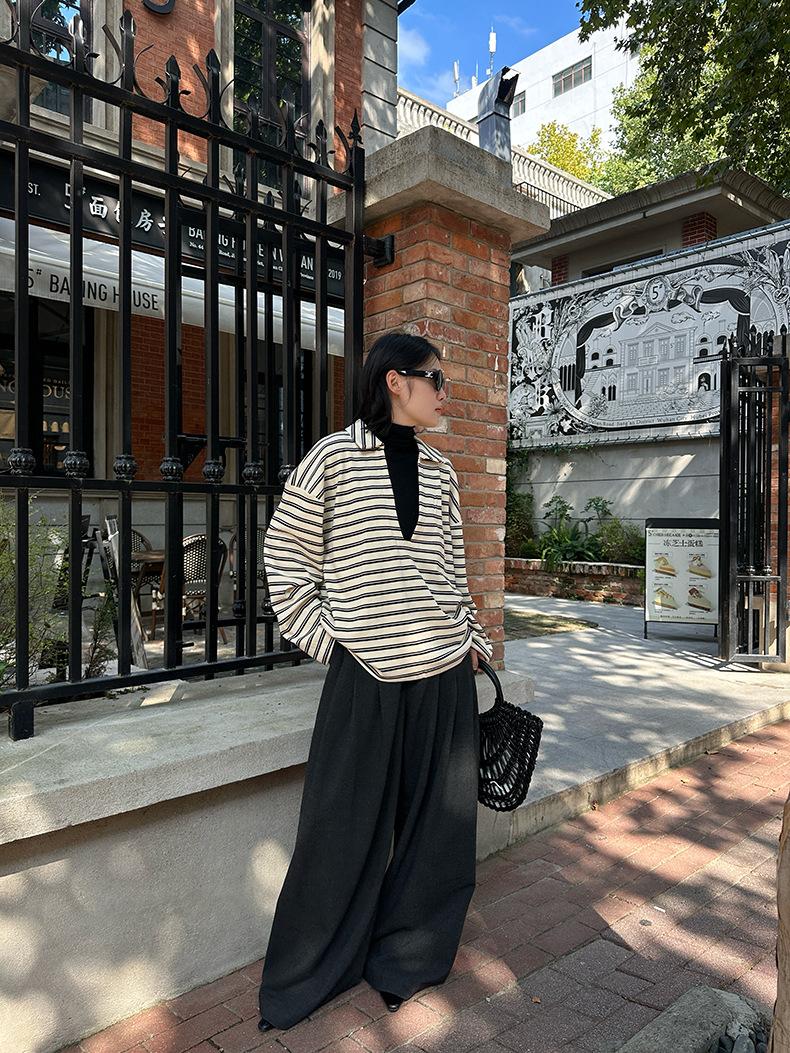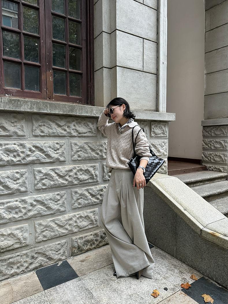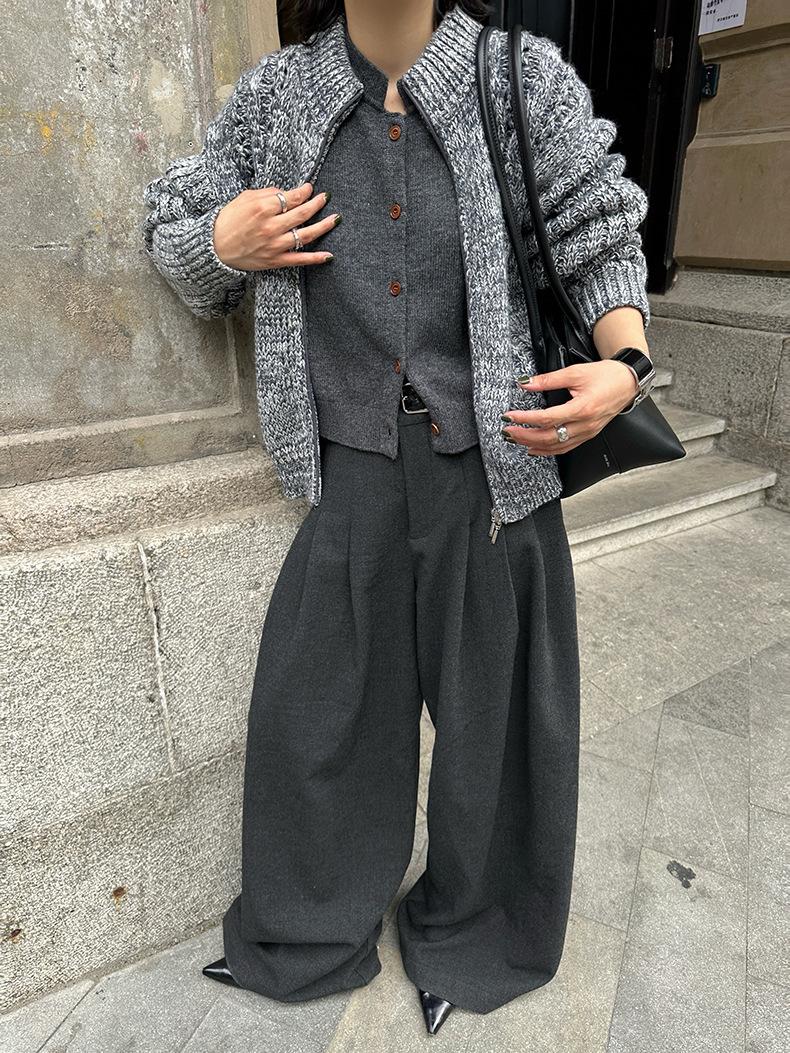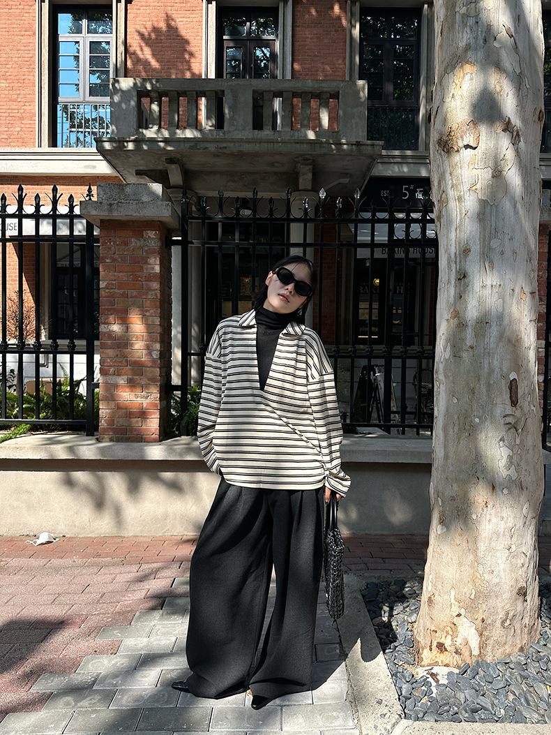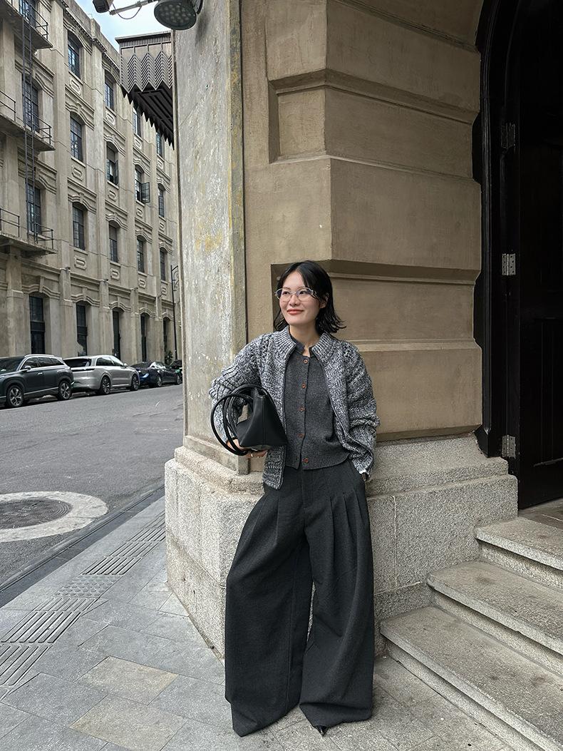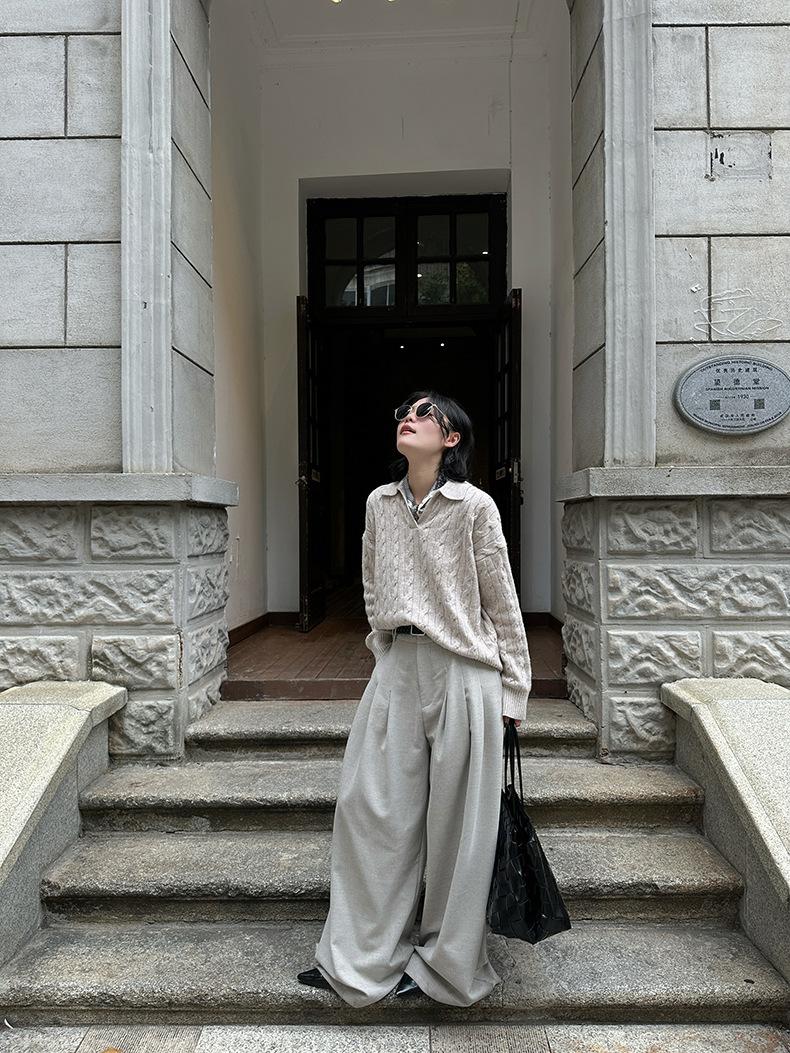 Calças de Alfaiataria TENSO Retro Drapey Moda Calças Soltas de Perna Reta Calças Casuais Design Plissado Senso de Outono Calças de Perna Larga