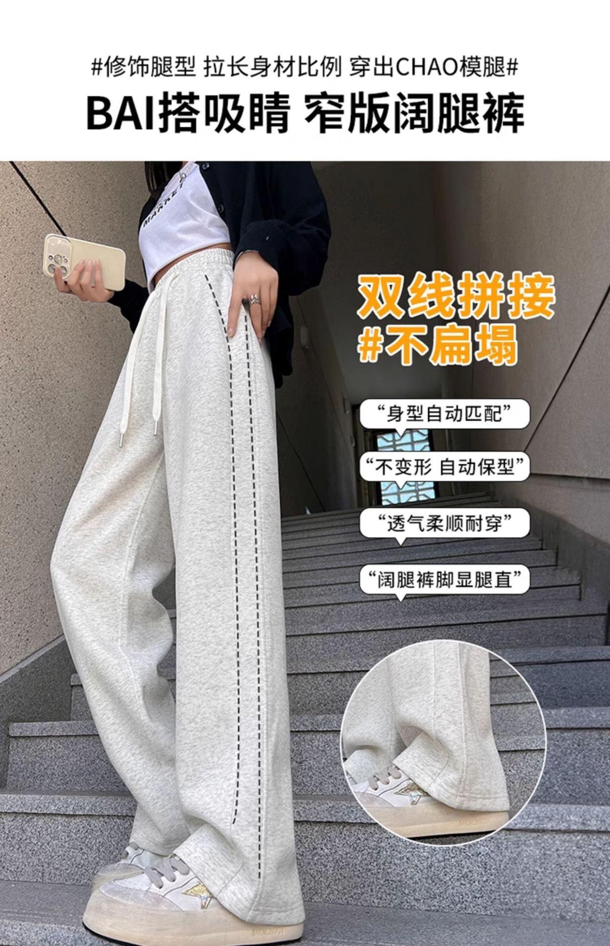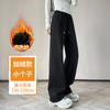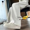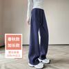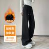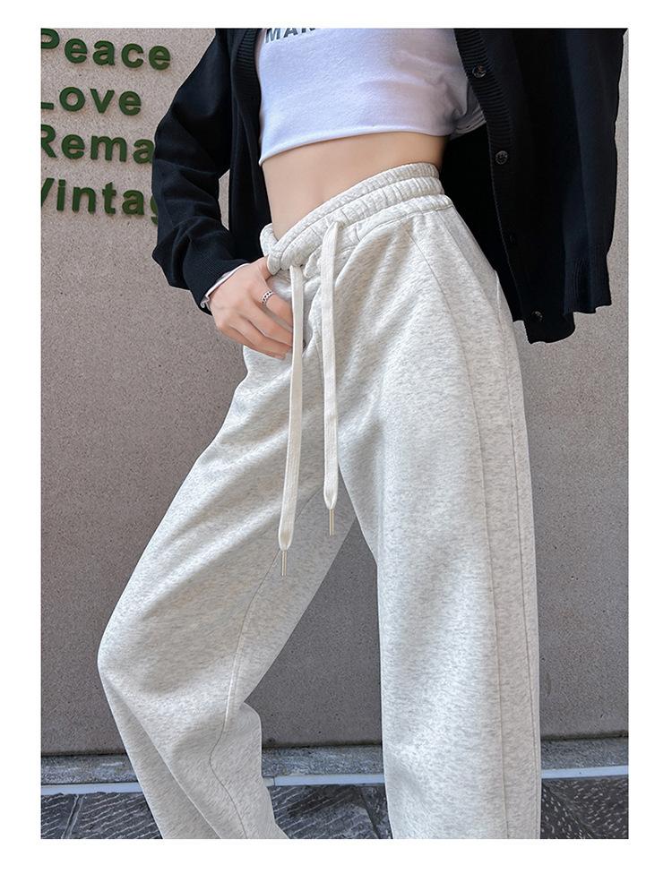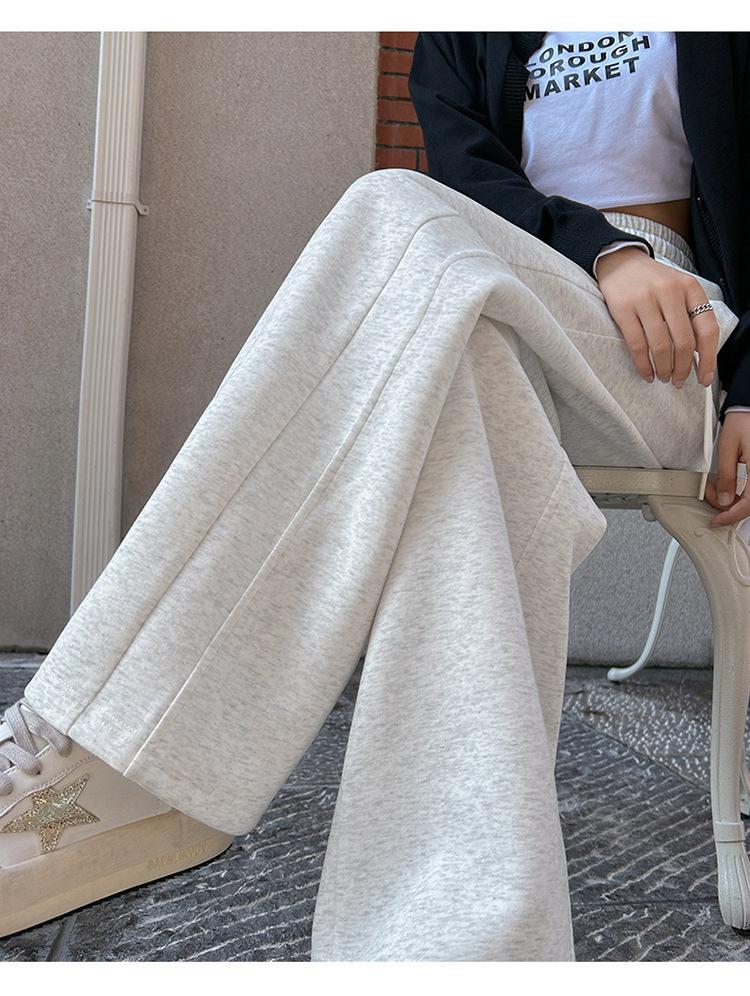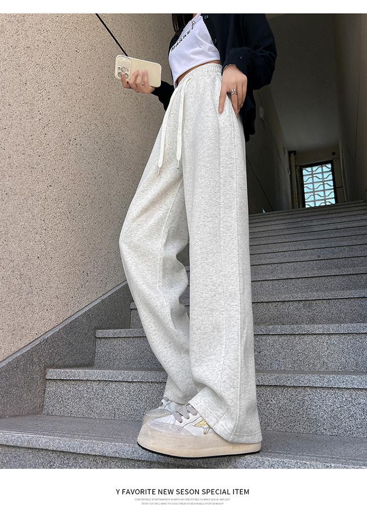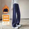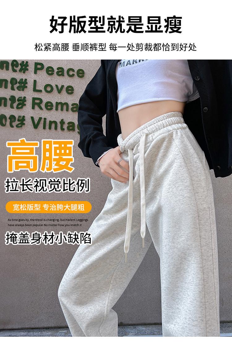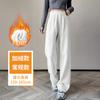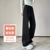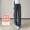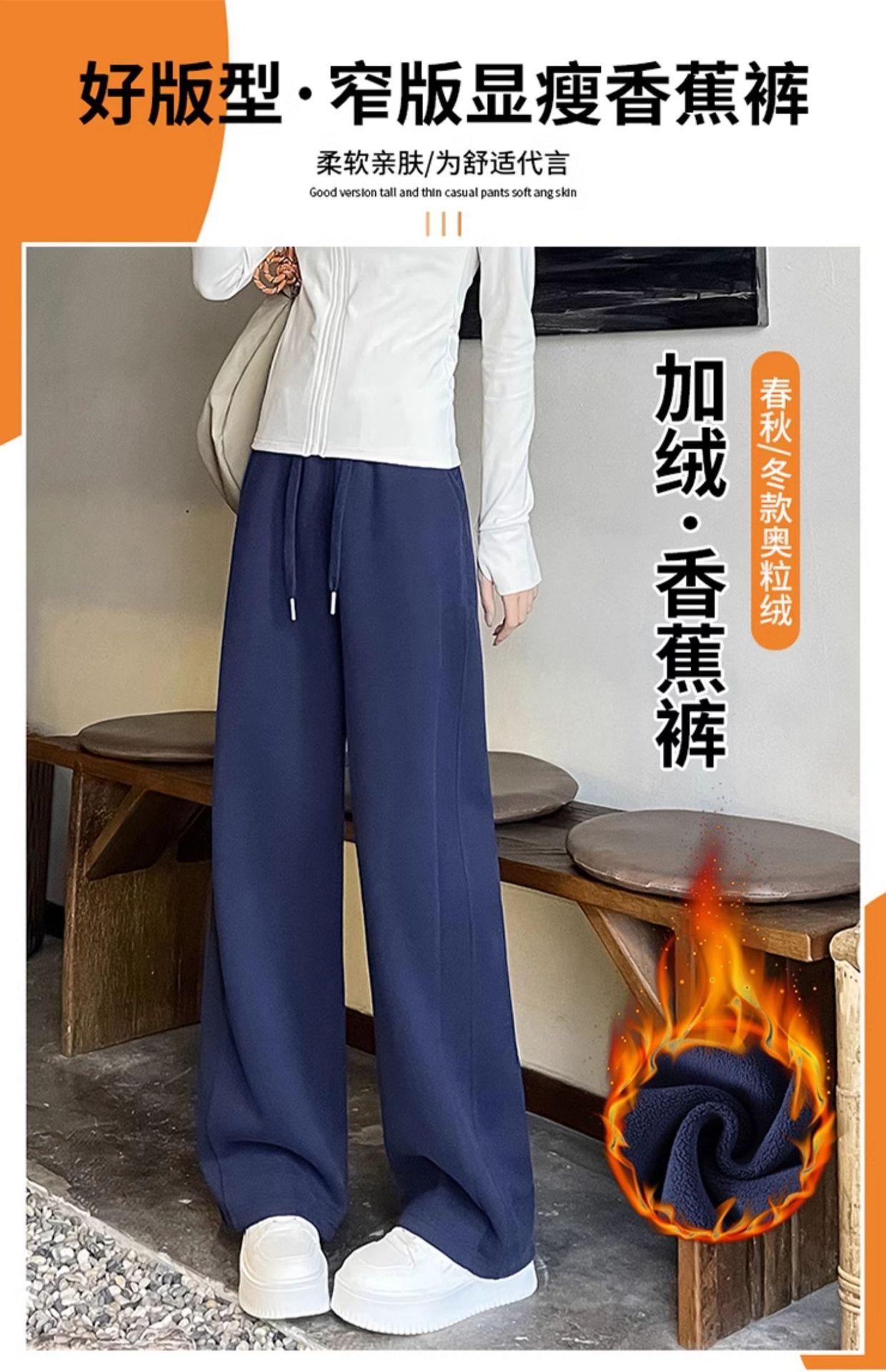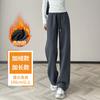 Calças Esportivas Femininas de Perna Larga 2025 Outono/Inverno Novo Produto Quentes Forradas com Lã Tamanho Pequeno Caimento Banana Casual Calças de Moletom Longas