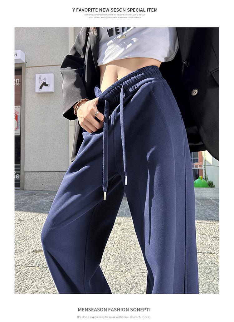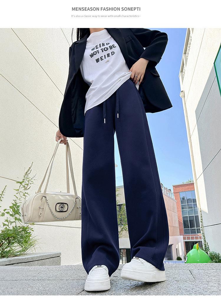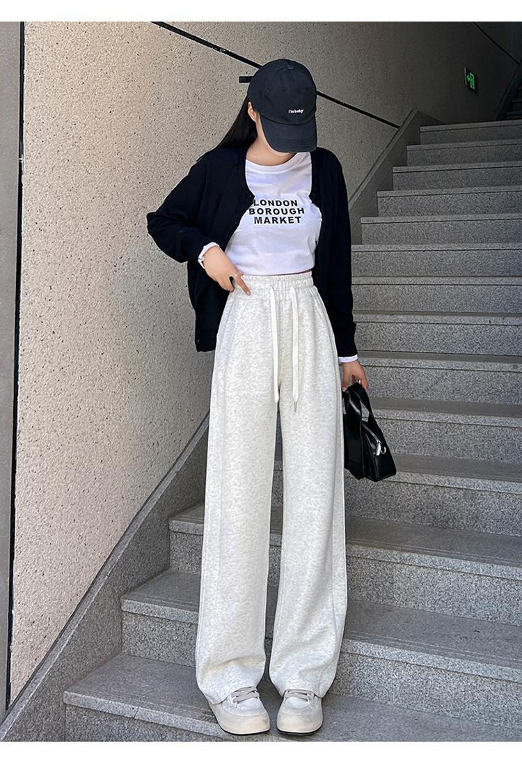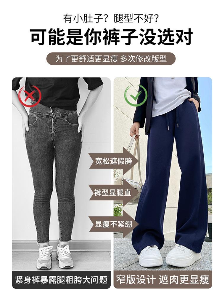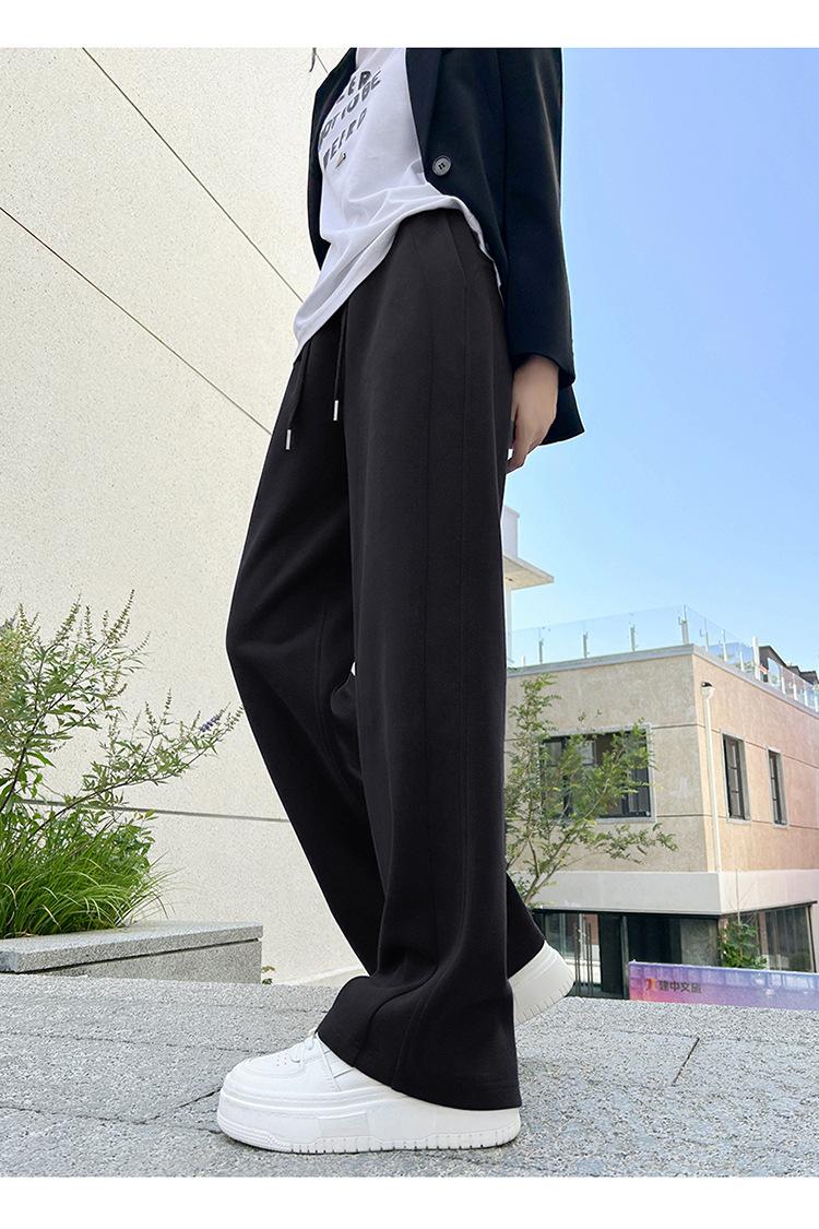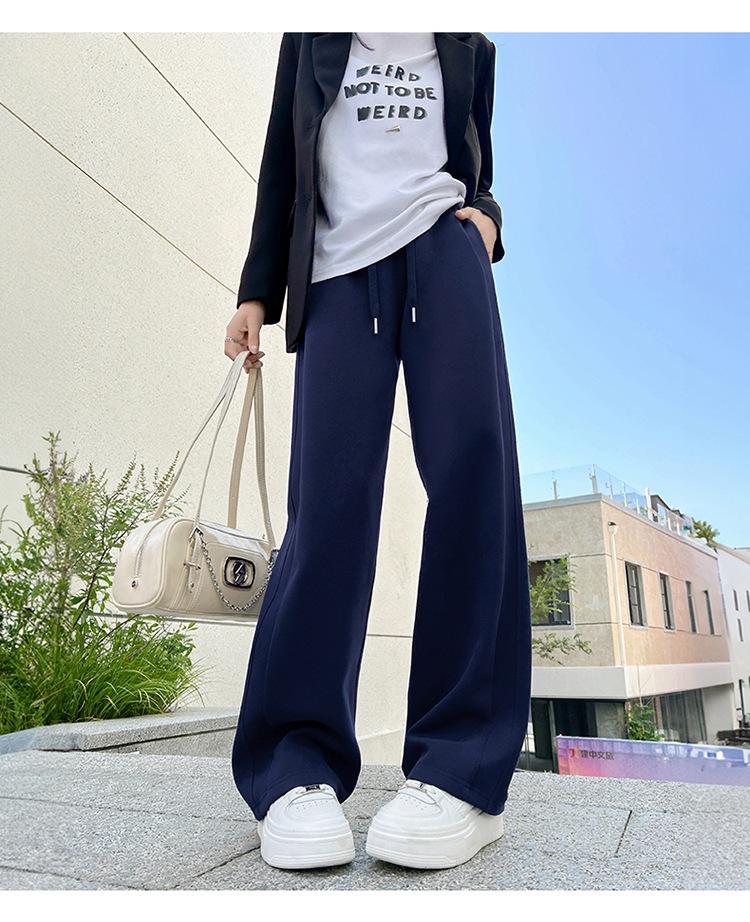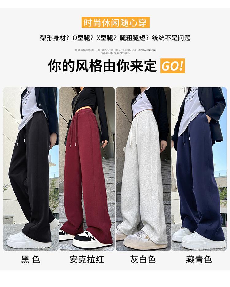 Calças Esportivas Femininas de Perna Larga 2025 Outono/Inverno Novo Produto Quentes Forradas com Lã Tamanho Pequeno Caimento Banana Casual Calças de Moletom Longas