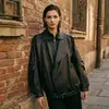 2026 Nova Jaqueta de Couro Biker Retro Resistente de Pele de Ovelha Unissex com Gola Alta Jaqueta de Couro Genuíno Roupa Externa para Mulheres
