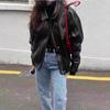 Jaqueta de Couro Biker Retrô com Bolso Duplo Casaco 2025 Outono Novo Solto Versátil Couro PU Lapela Jaqueta Top
