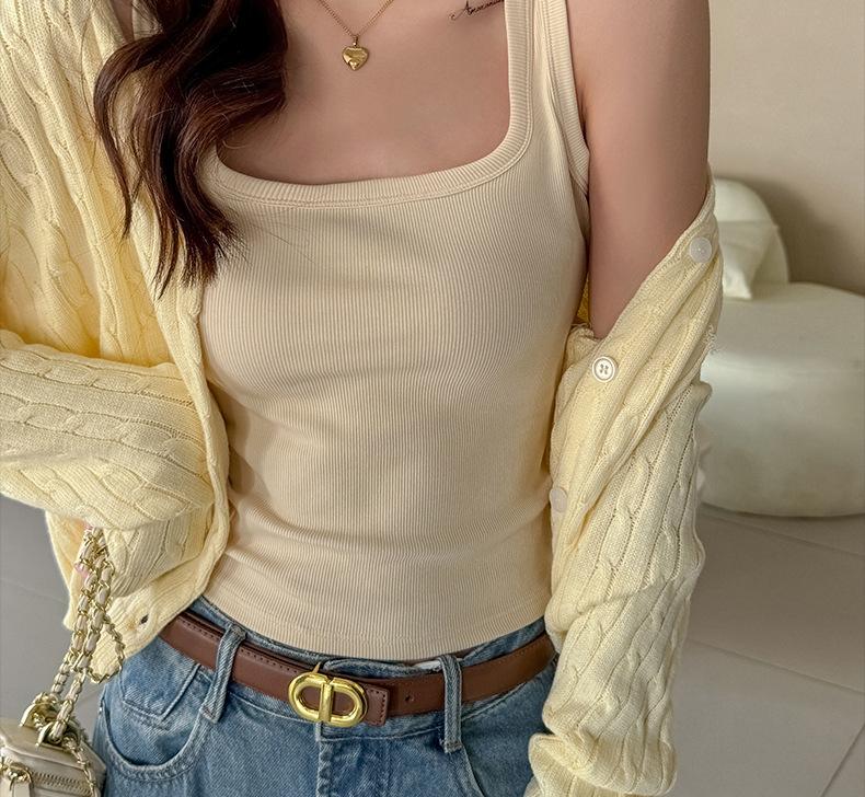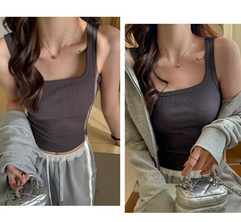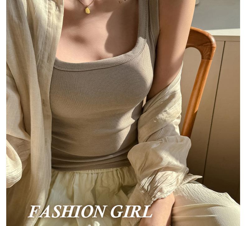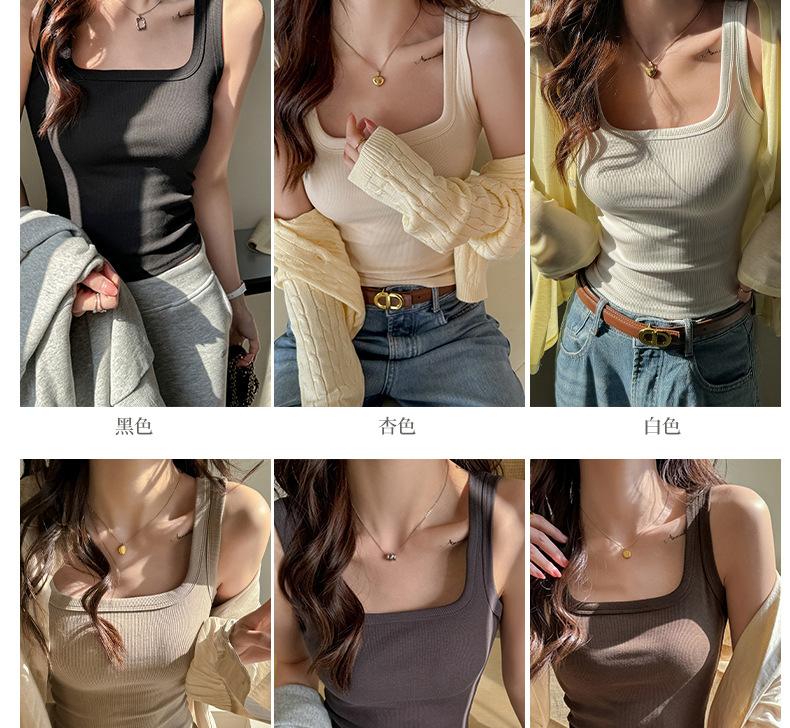 Regata Sexy de Cor Sólida com Decote Quadrado para Mulheres, Regata Interna Versátil Básica para Primavera e Verão, Top para Usar como Roupa Externa