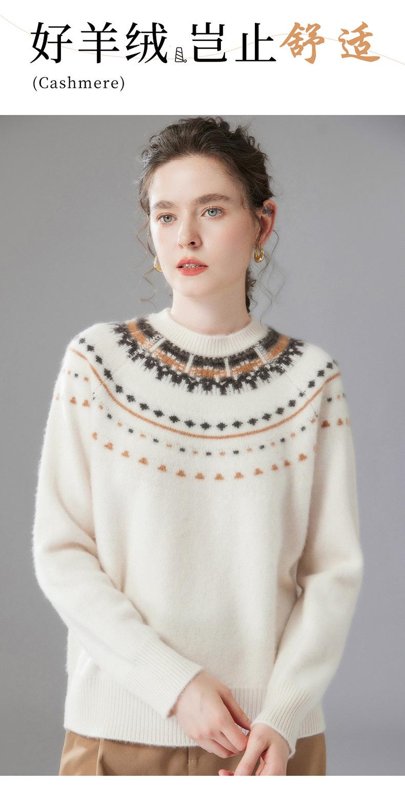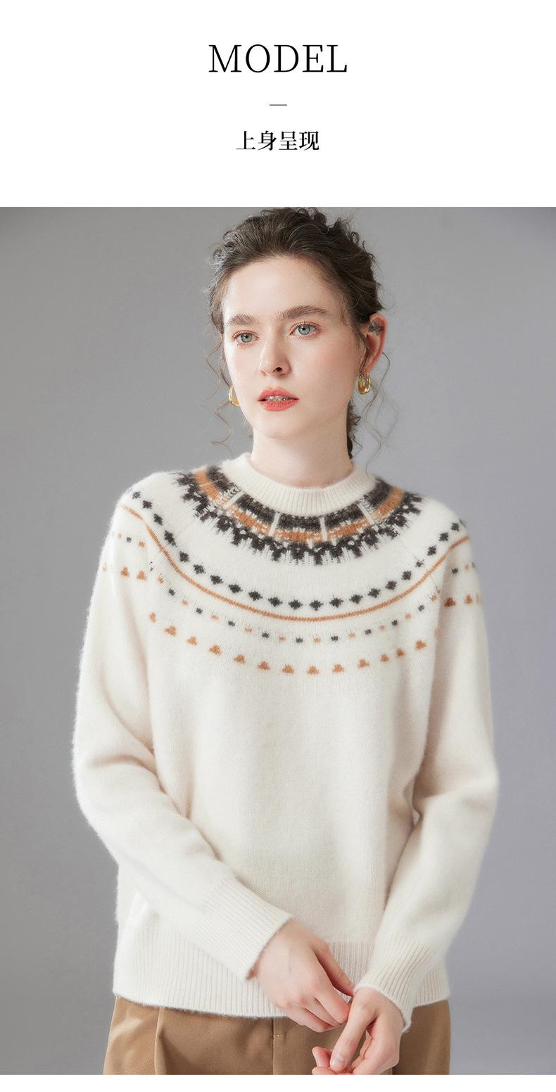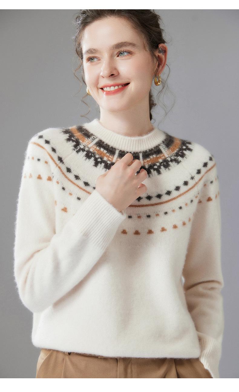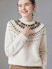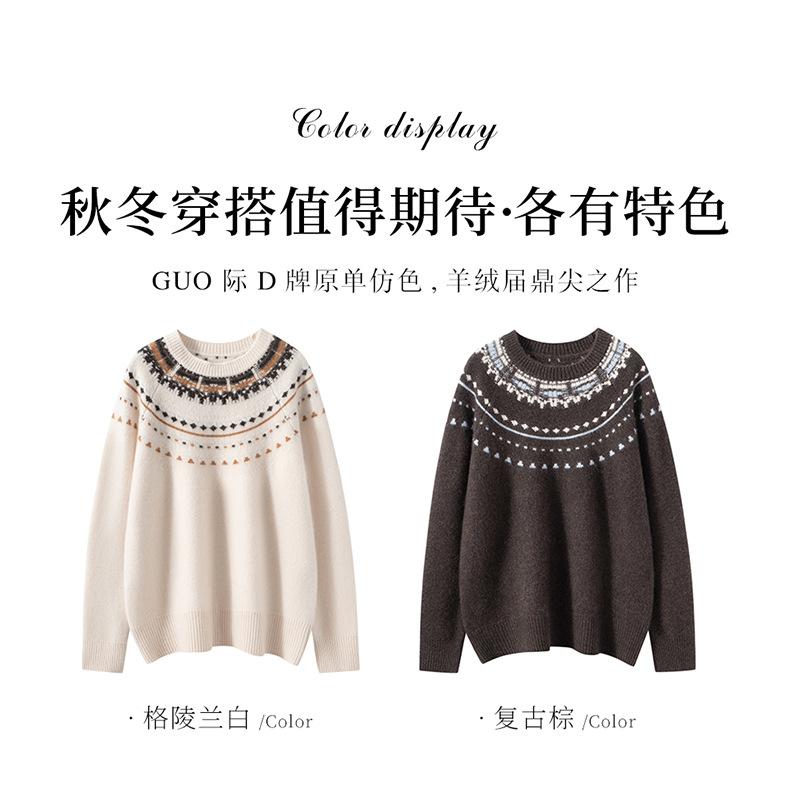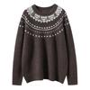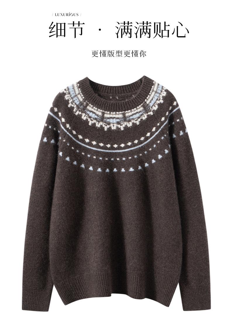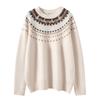 Nova Camisa Básica Tricotada de Caxemira Jacquard Feminina de Outono e Inverno Pulôver Solto Emagrecedor Gola Redonda Suéter Camada Interna Grosso
