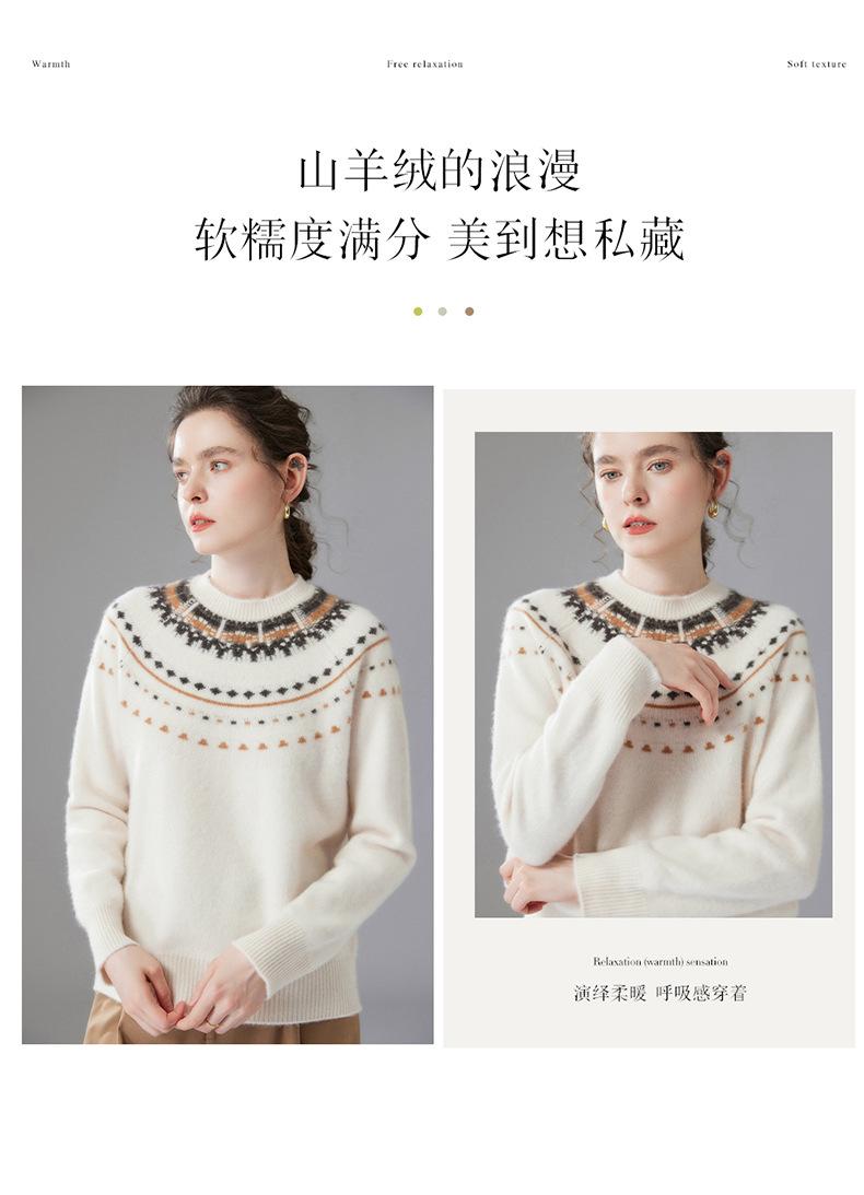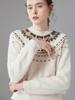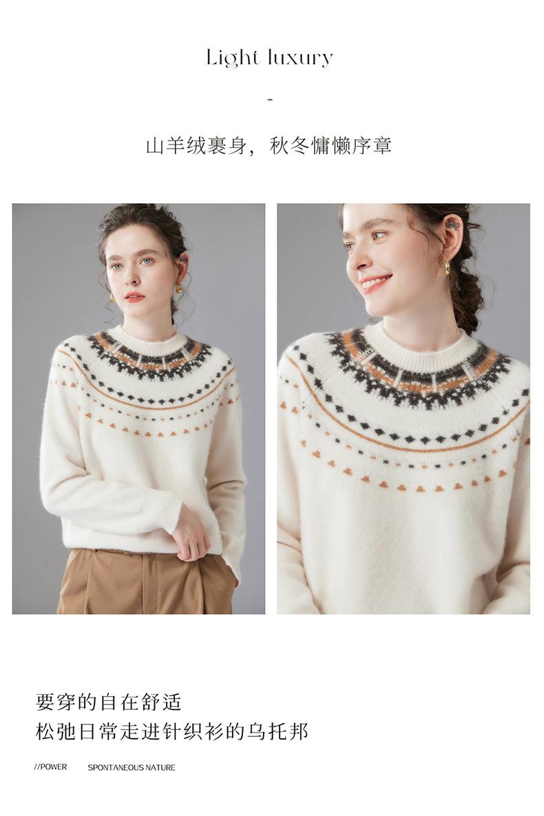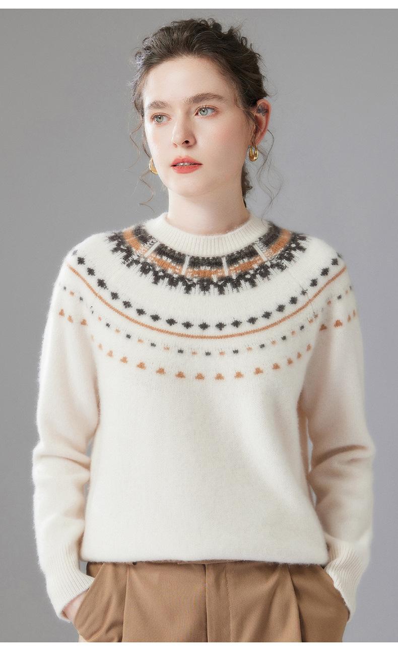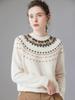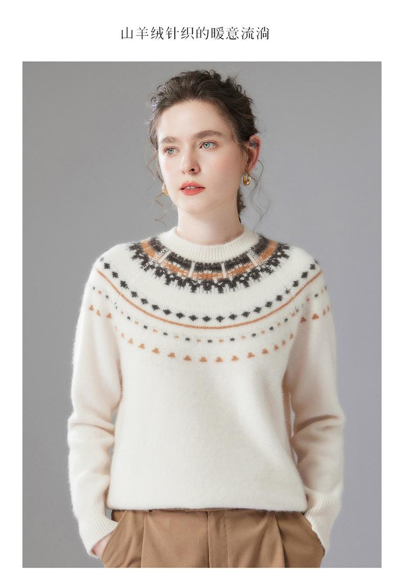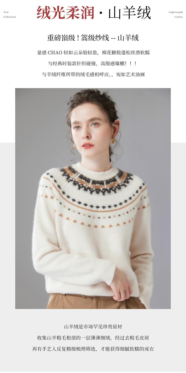 Nova Camisa Básica Tricotada de Caxemira Jacquard Feminina de Outono e Inverno Pulôver Solto Emagrecedor Gola Redonda Suéter Camada Interna Grosso