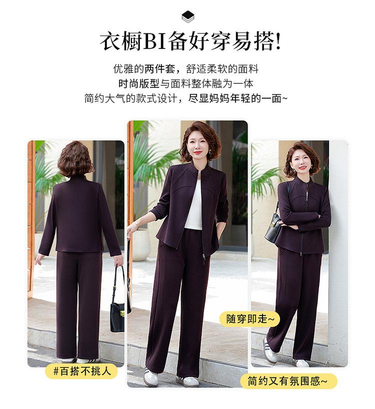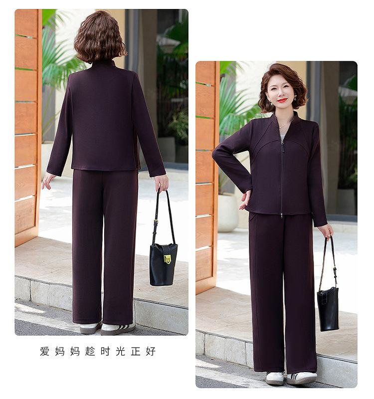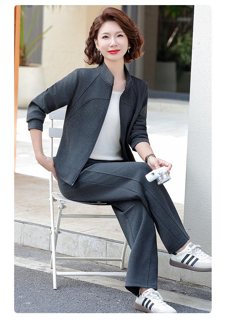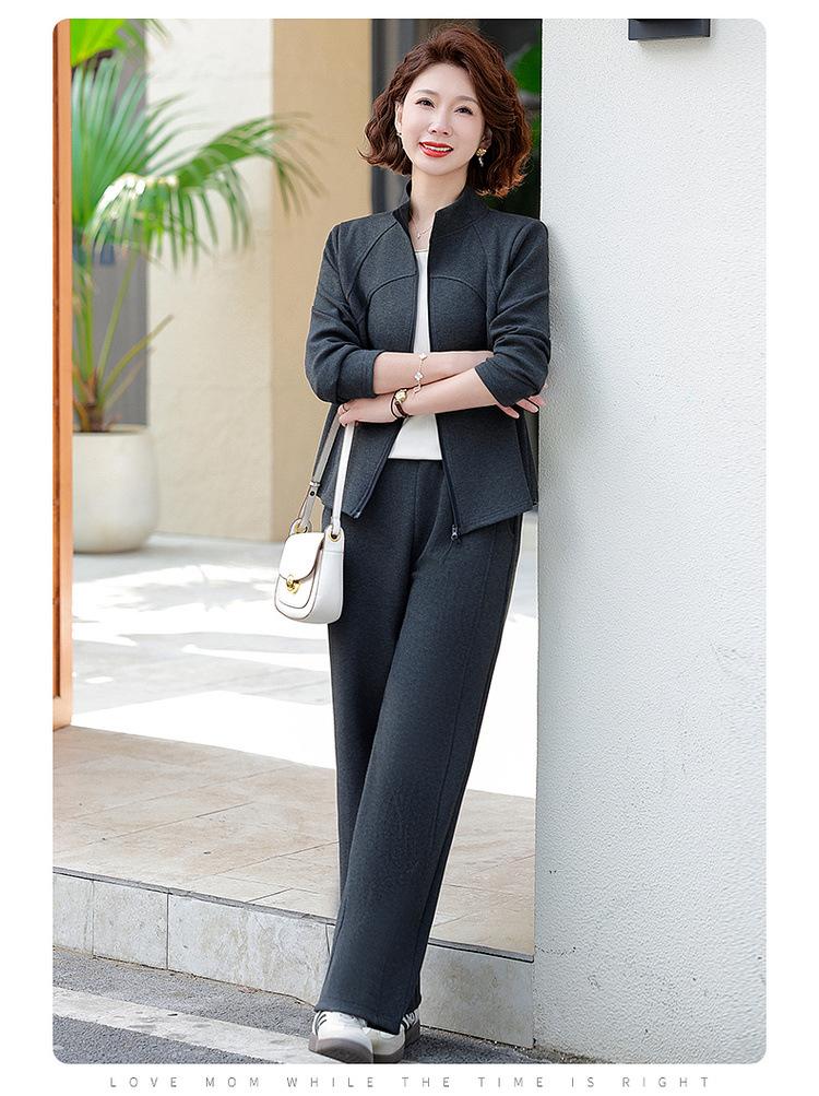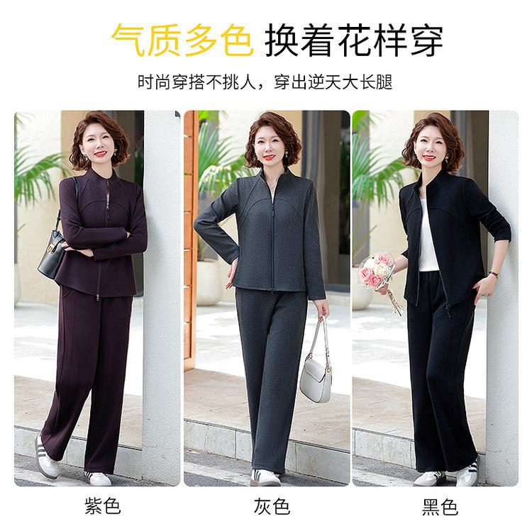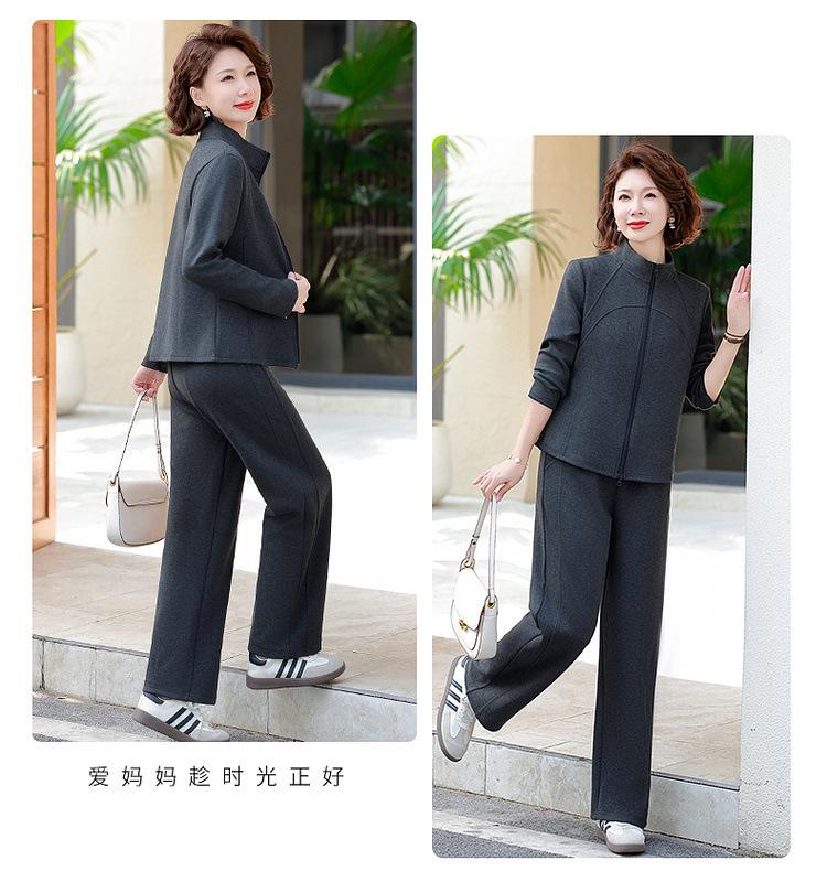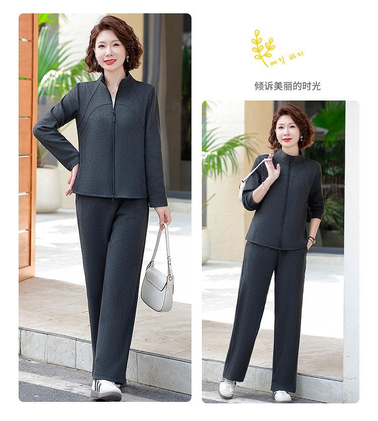Conjunto de Duas Peças Primavera e Outono para Mulheres de Meia-Idade e Idosas 2025 Roupa de Primavera para Mães Fato Esportivo Cor Sólida Casaco Amplo Emagrecimento para Senhoras