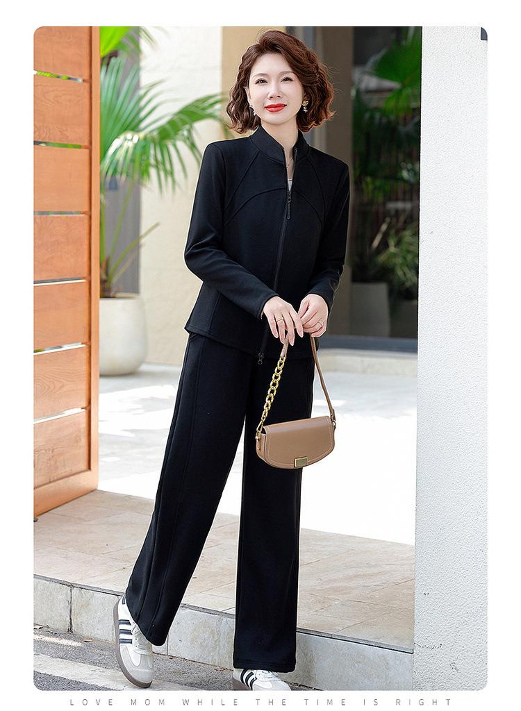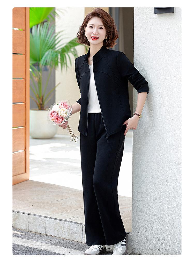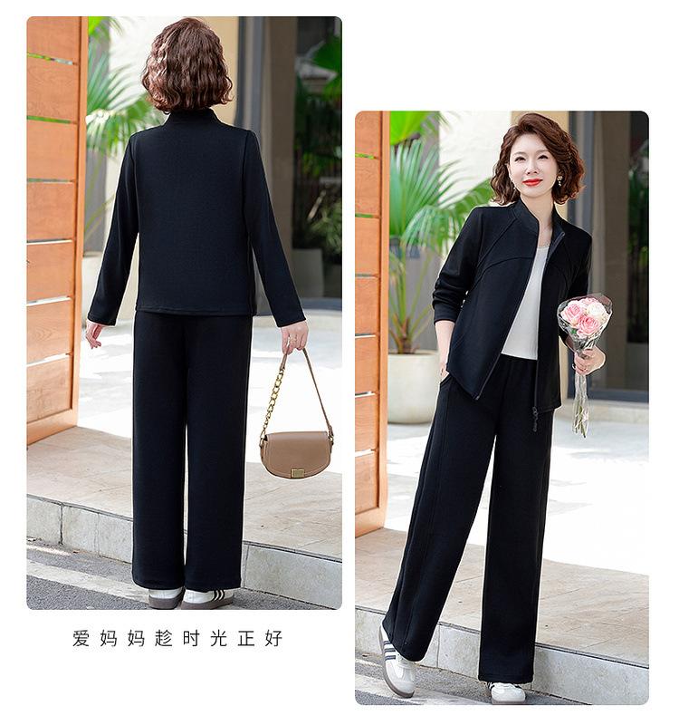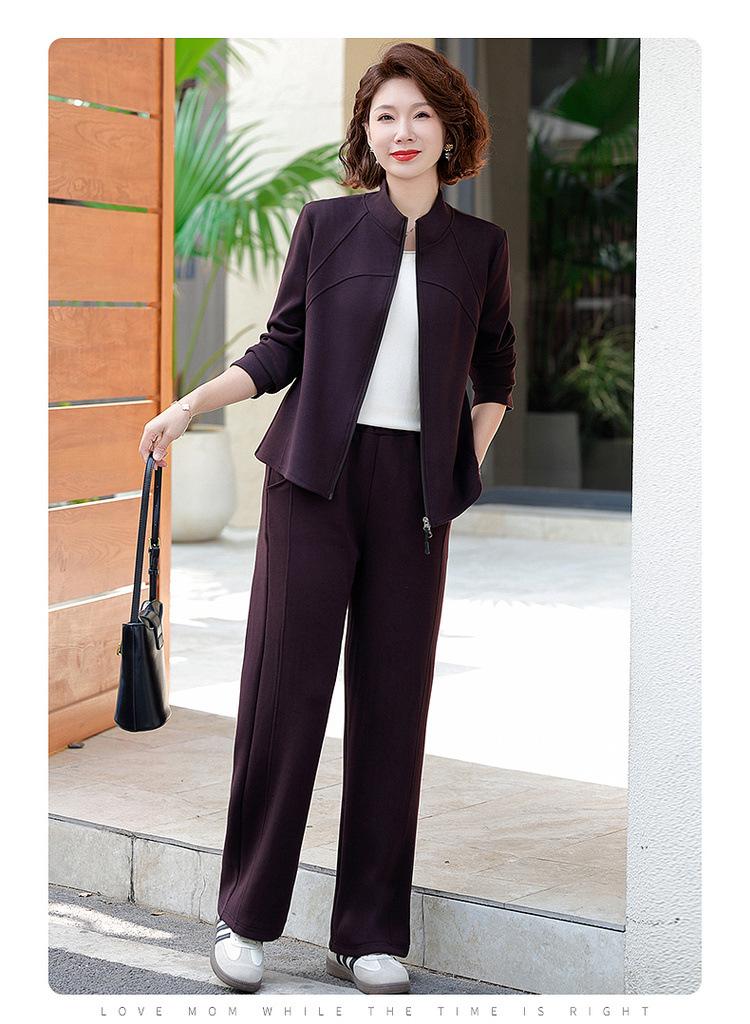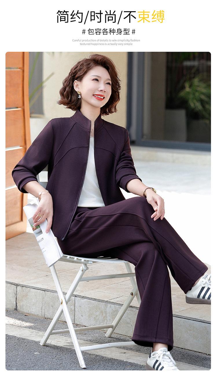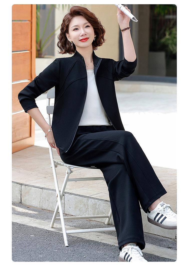 Conjunto de Duas Peças Primavera e Outono para Mulheres de Meia-Idade e Idosas 2025 Roupa de Primavera para Mães Fato Esportivo Cor Sólida Casaco Amplo Emagrecimento para Senhoras