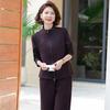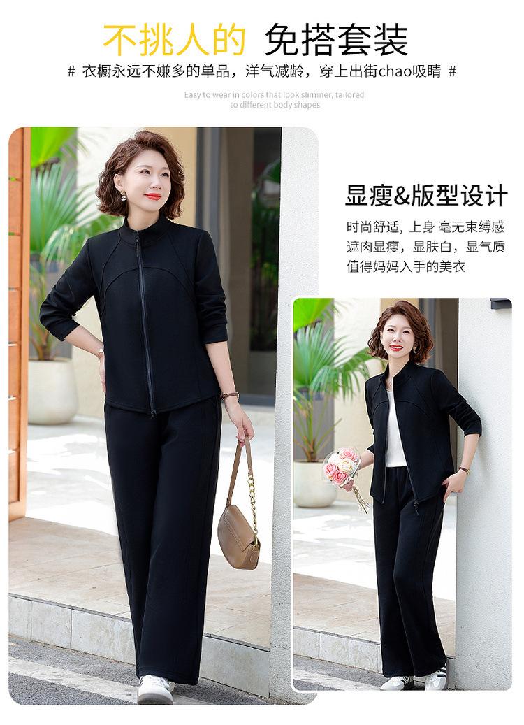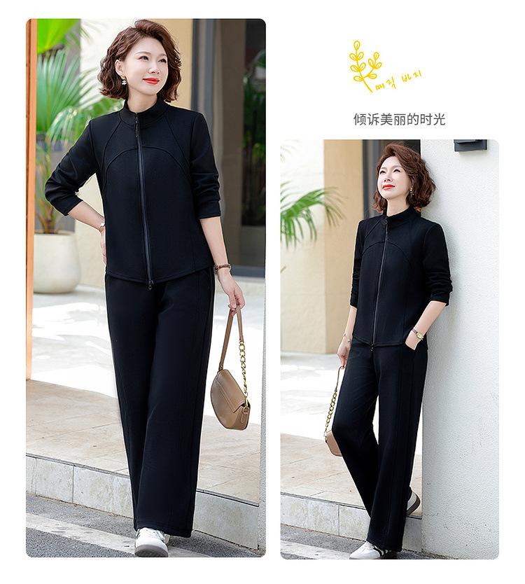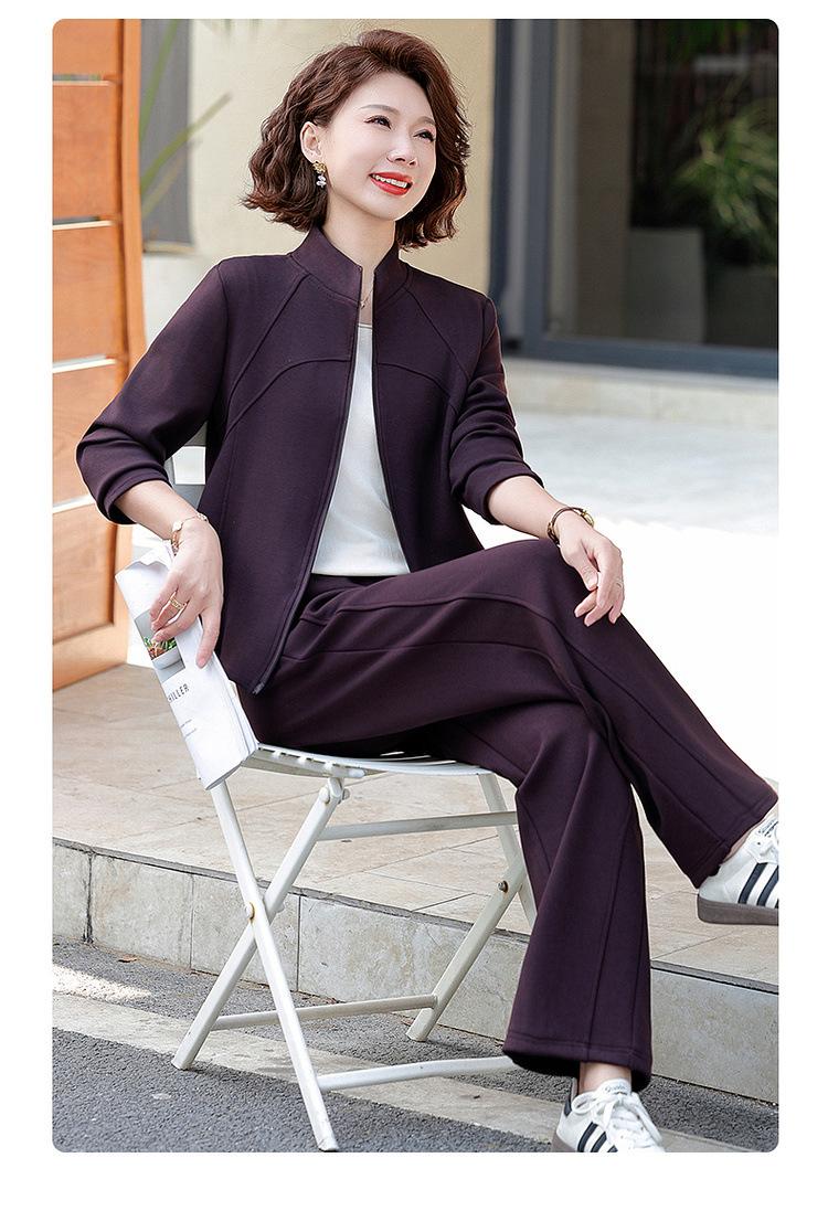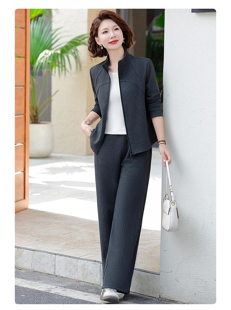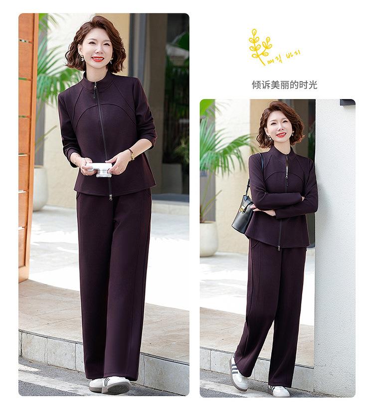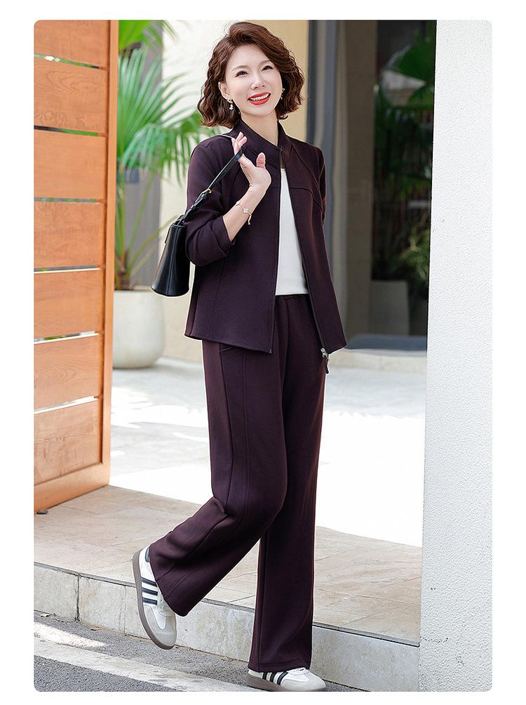 Conjunto de Duas Peças Primavera e Outono para Mulheres de Meia-Idade e Idosas 2025 Roupa de Primavera para Mães Fato Esportivo Cor Sólida Casaco Amplo Emagrecimento para Senhoras