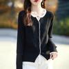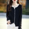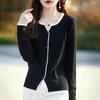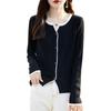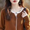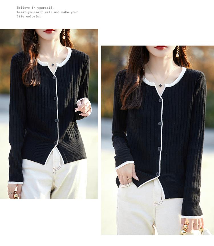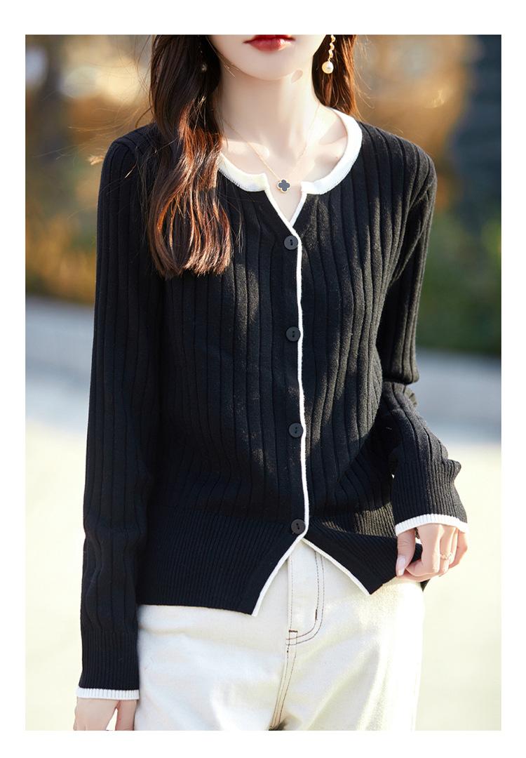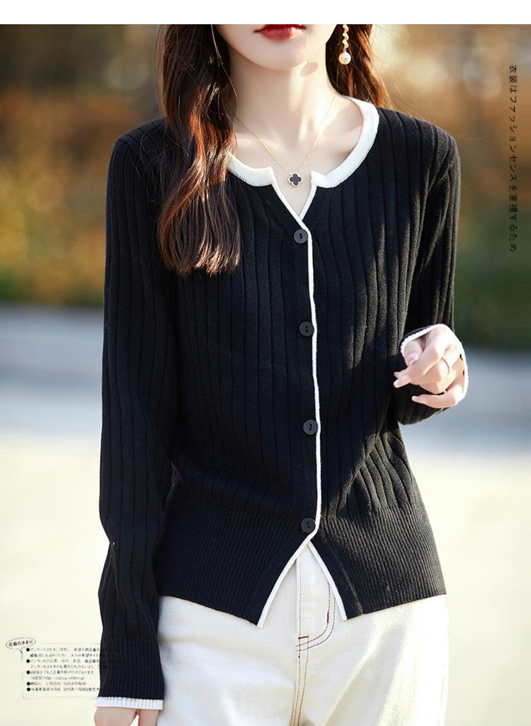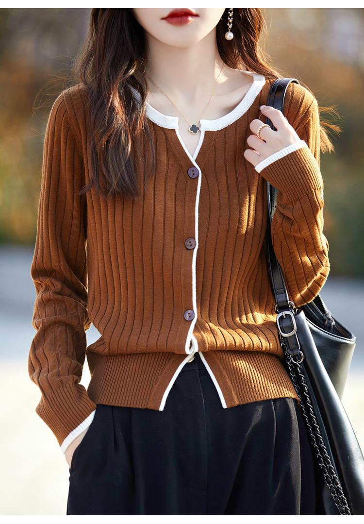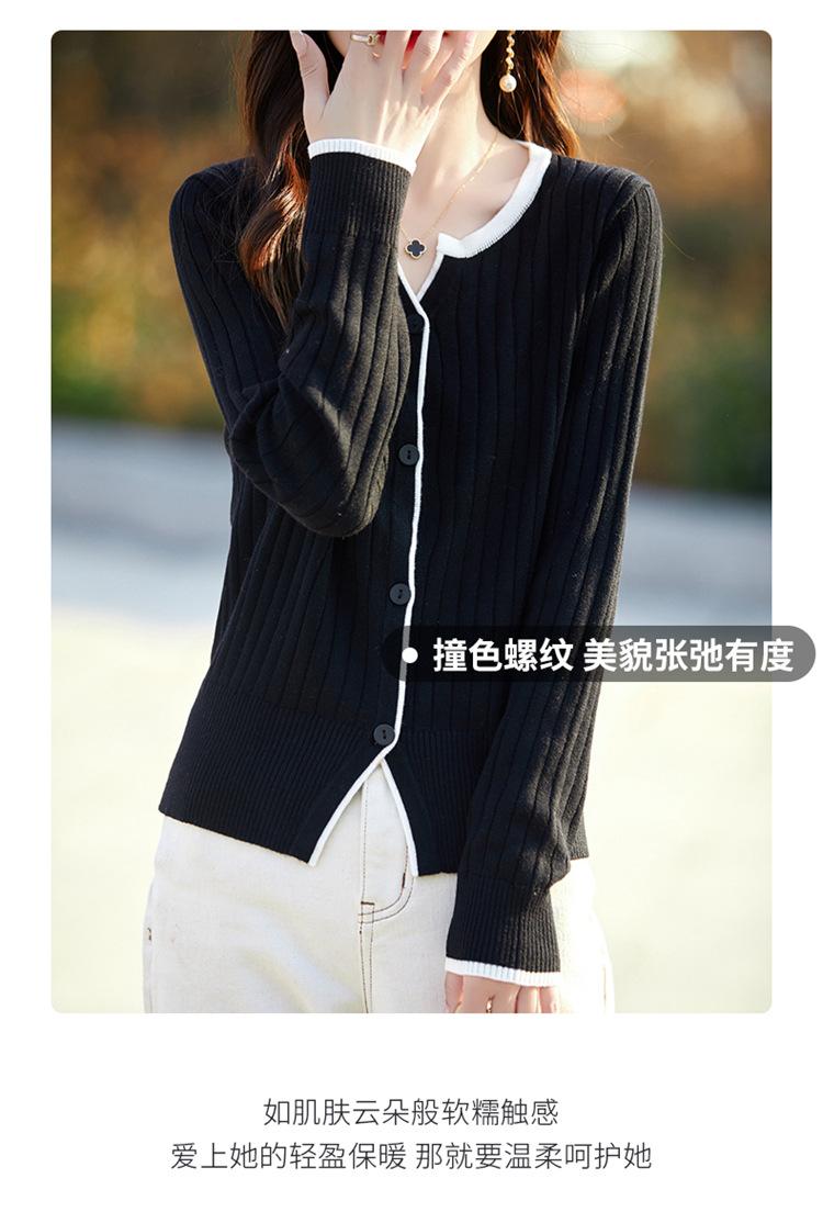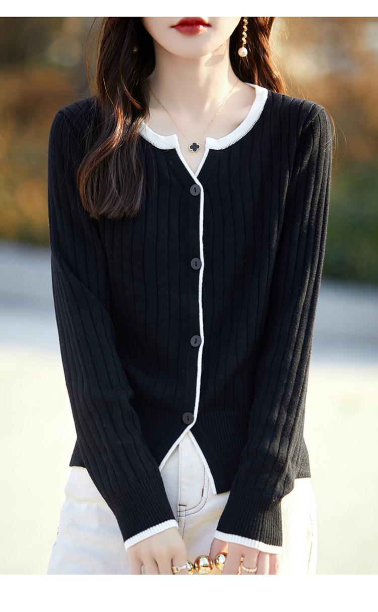 Tricô de Lã Penteada Decote V para Mulheres 2025 Início do Outono Novo Cardigan Casaco Versátil Manga Longa Decote Redondo Tricô Cor Contrastante
