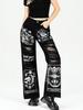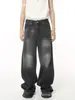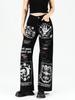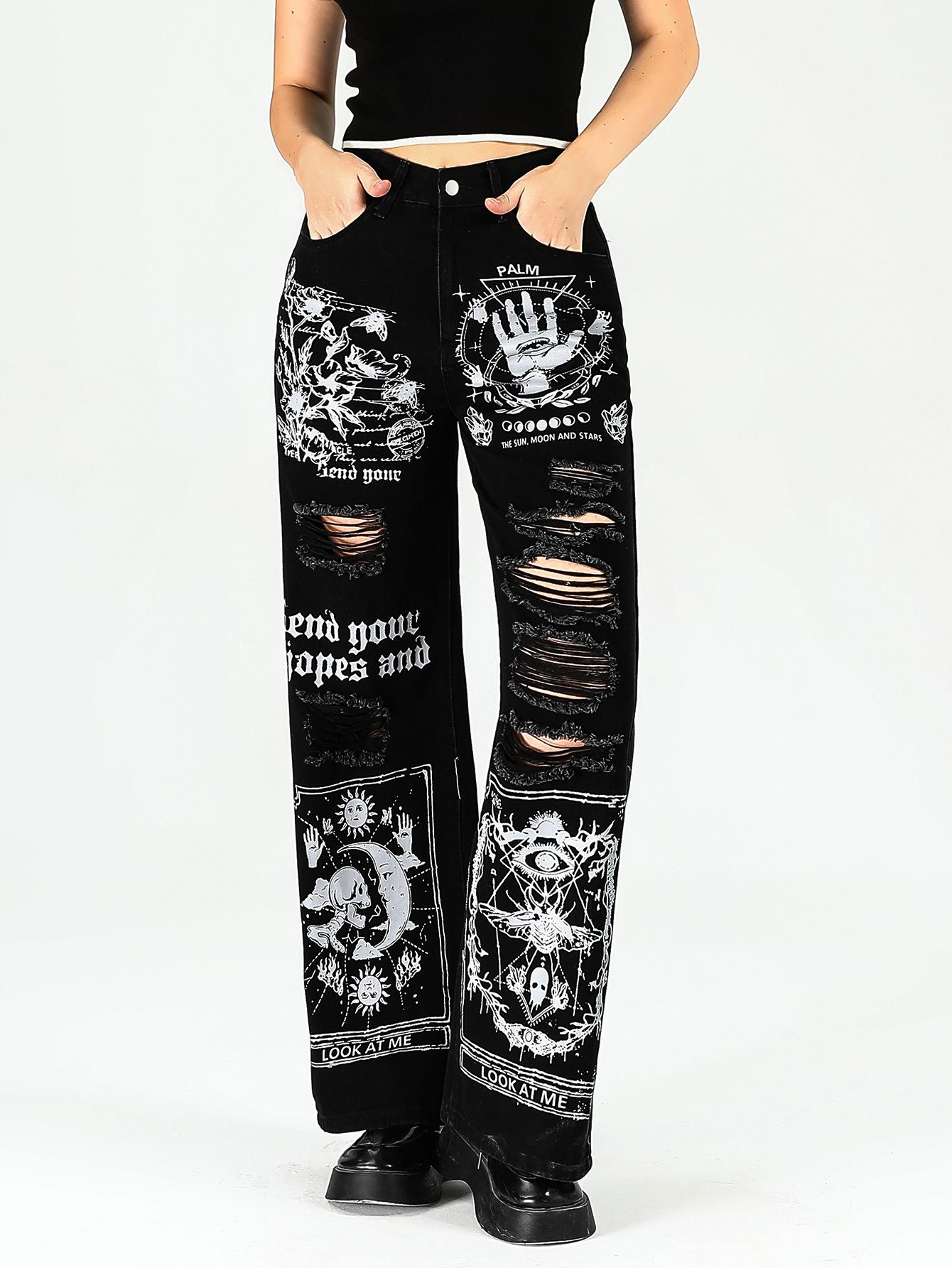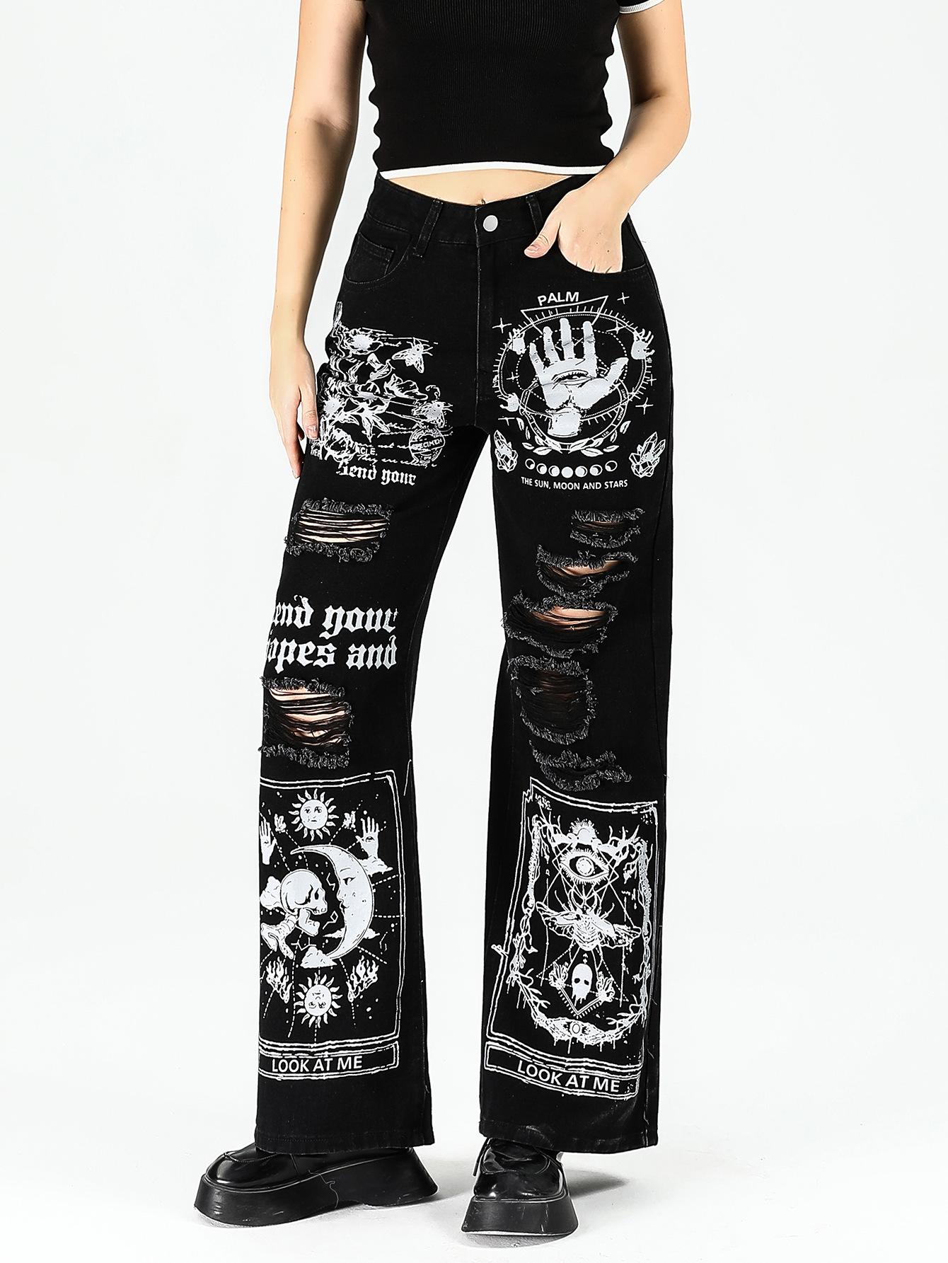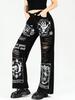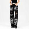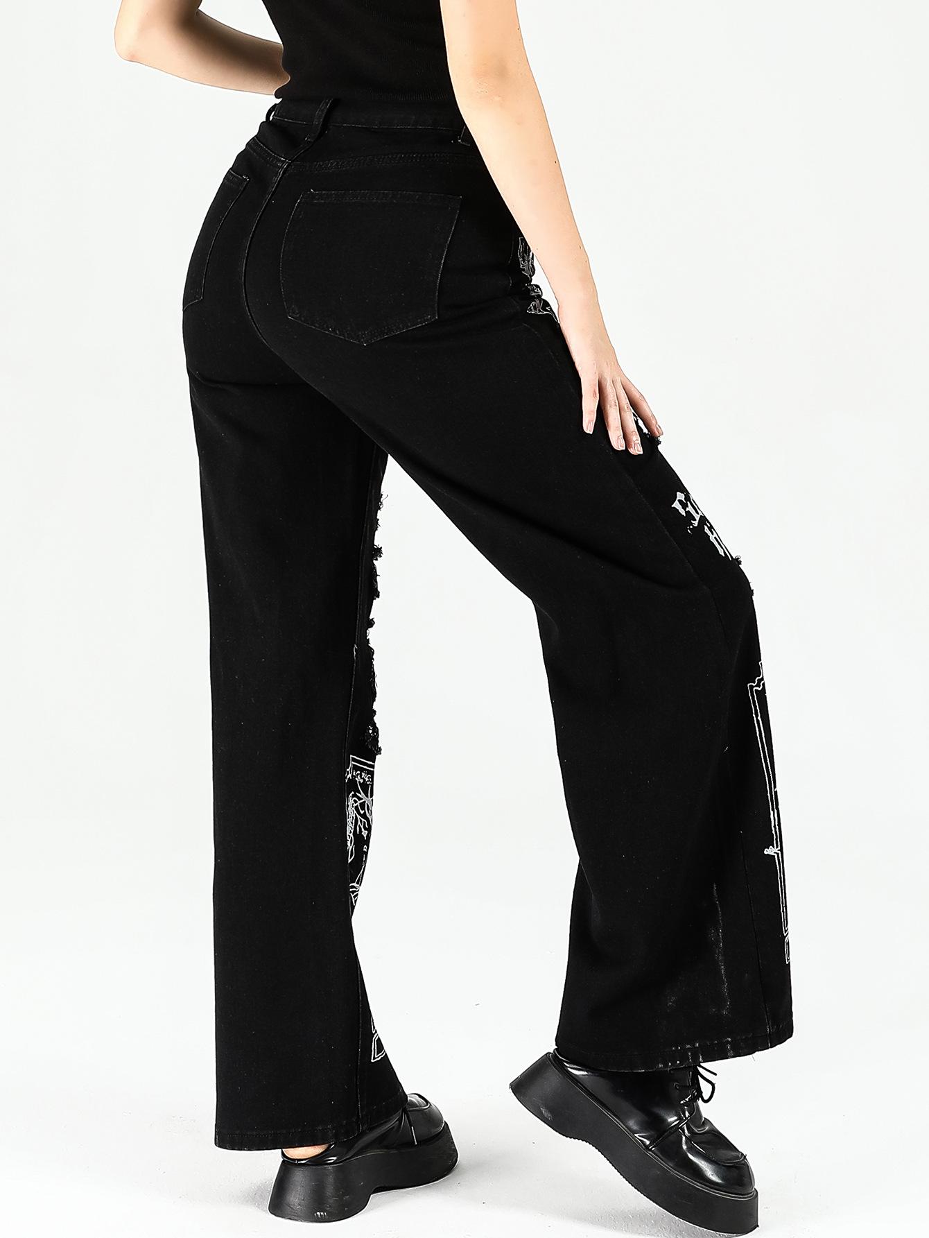 Amazon Aliexpress Transfronteiriço Comércio Exterior Russo Jeans Preto Rasgado Estampado Reto Solto Perna Larga Lavado