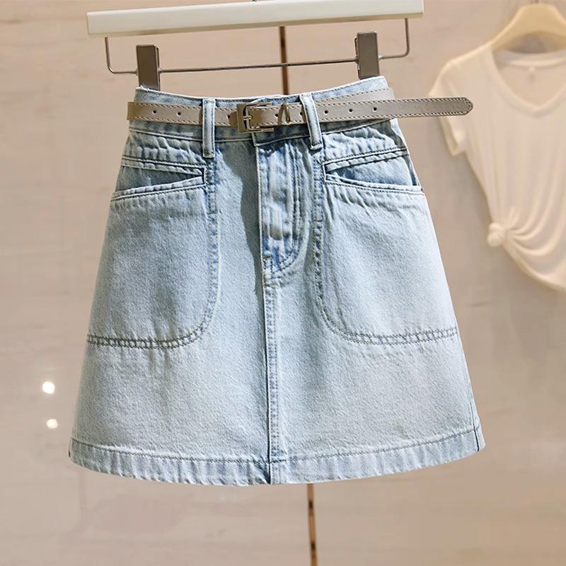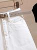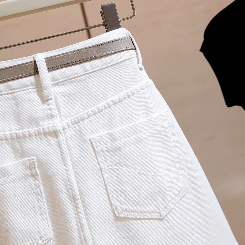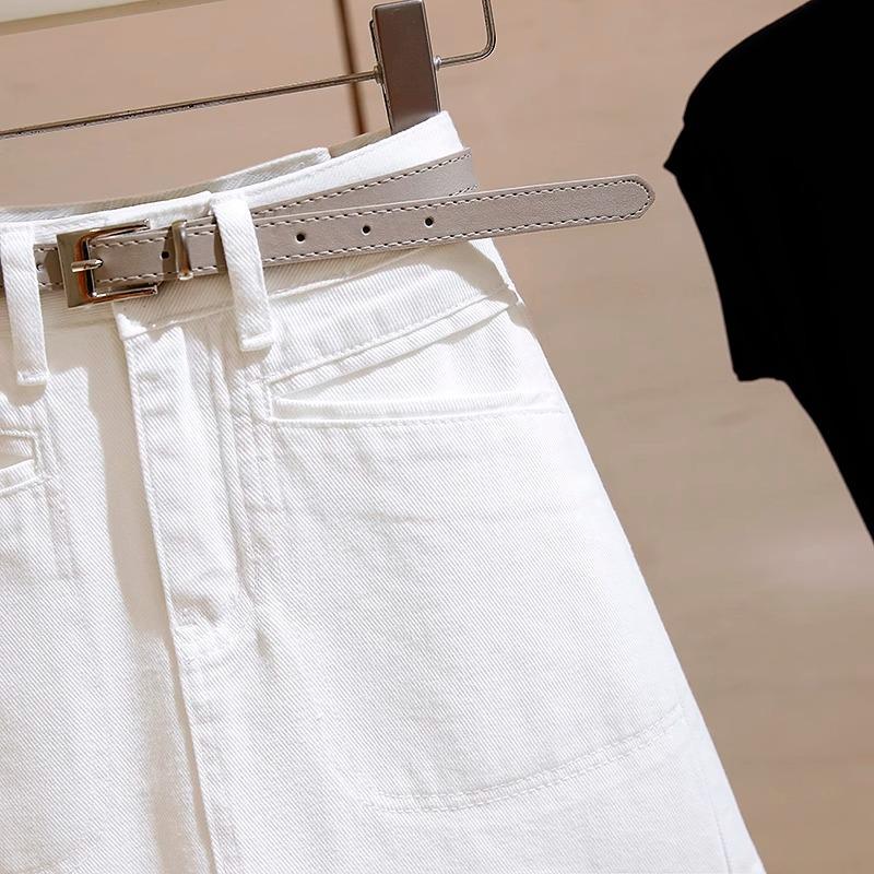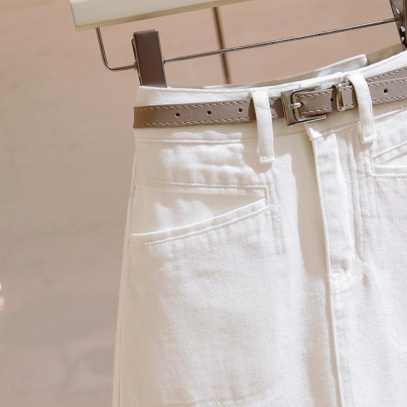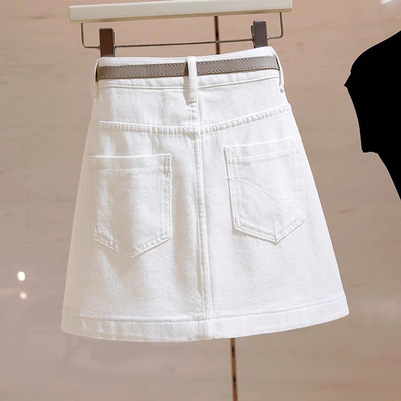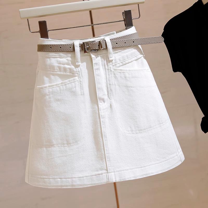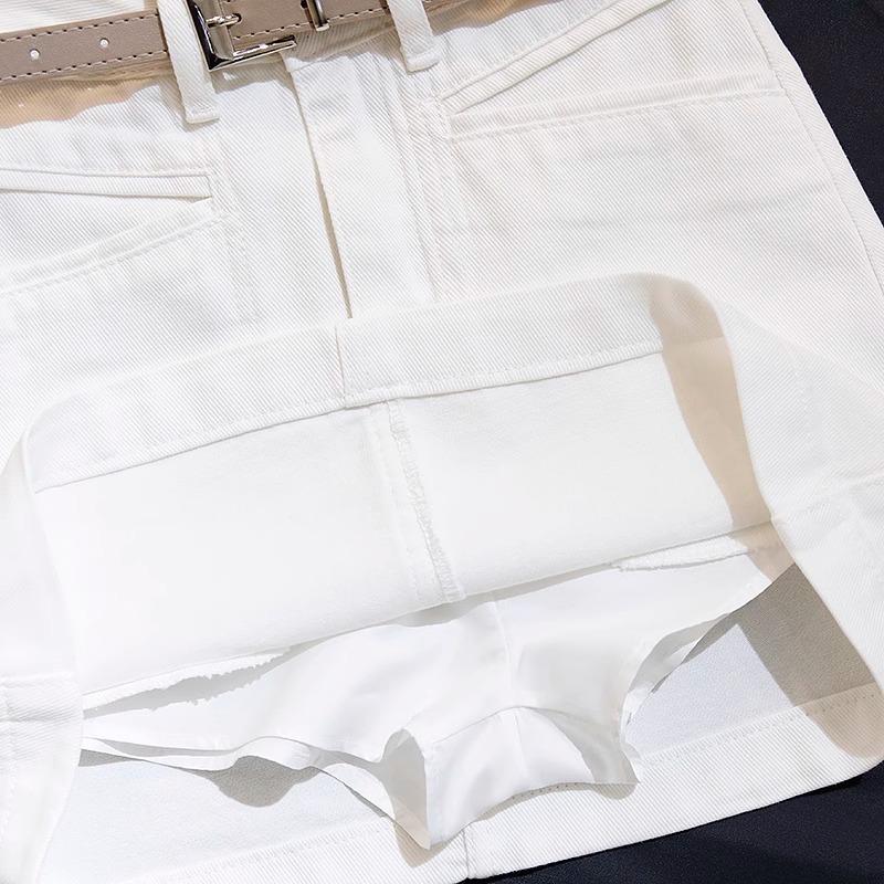 Saia Branca de Cintura Alta Saia Curta Feminina 2025 Verão Novo Estilo Versátil Anti-Exposição Saia Linha A para Pessoas Baixas