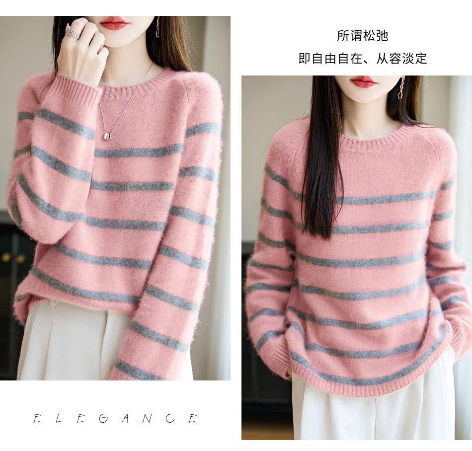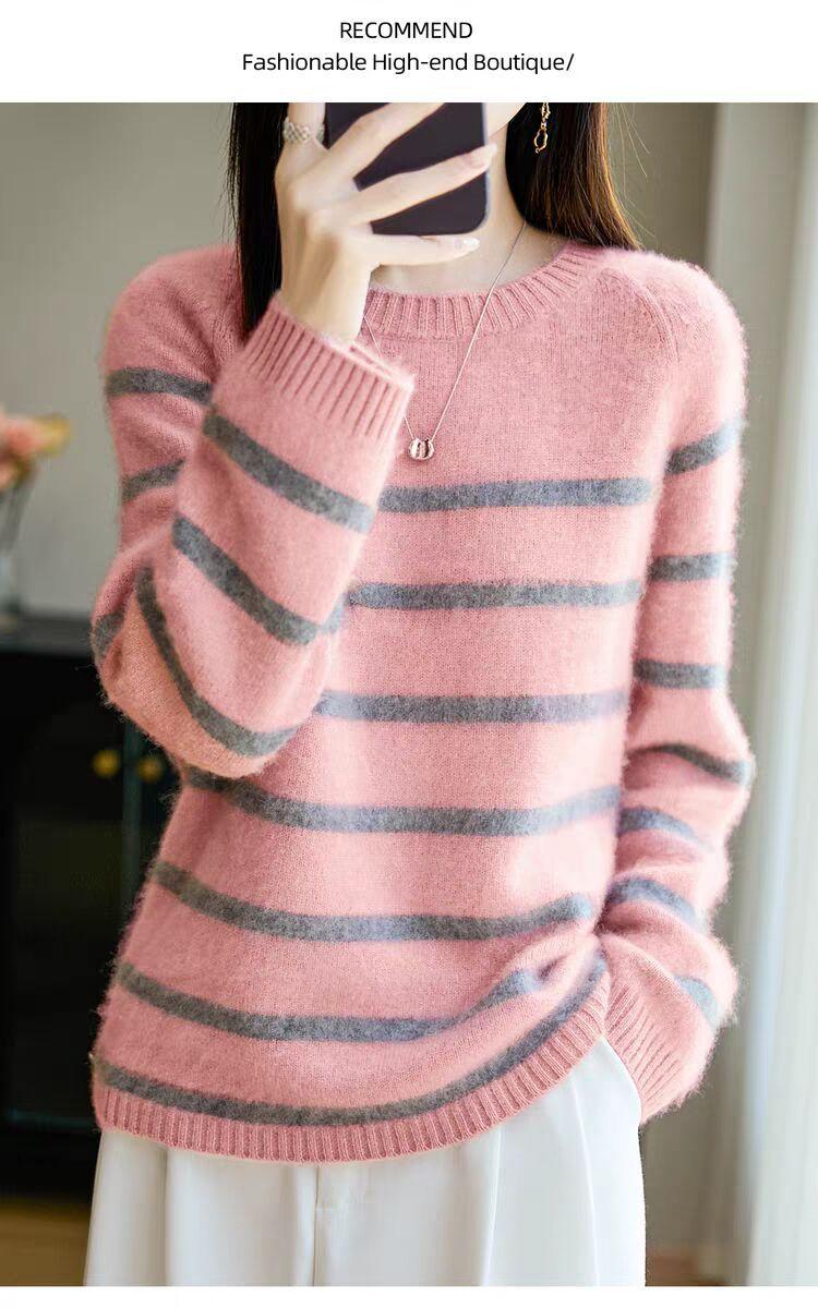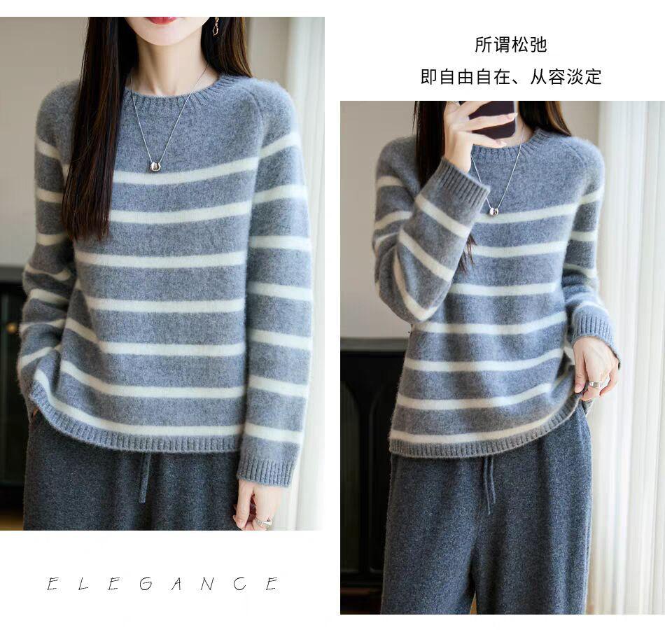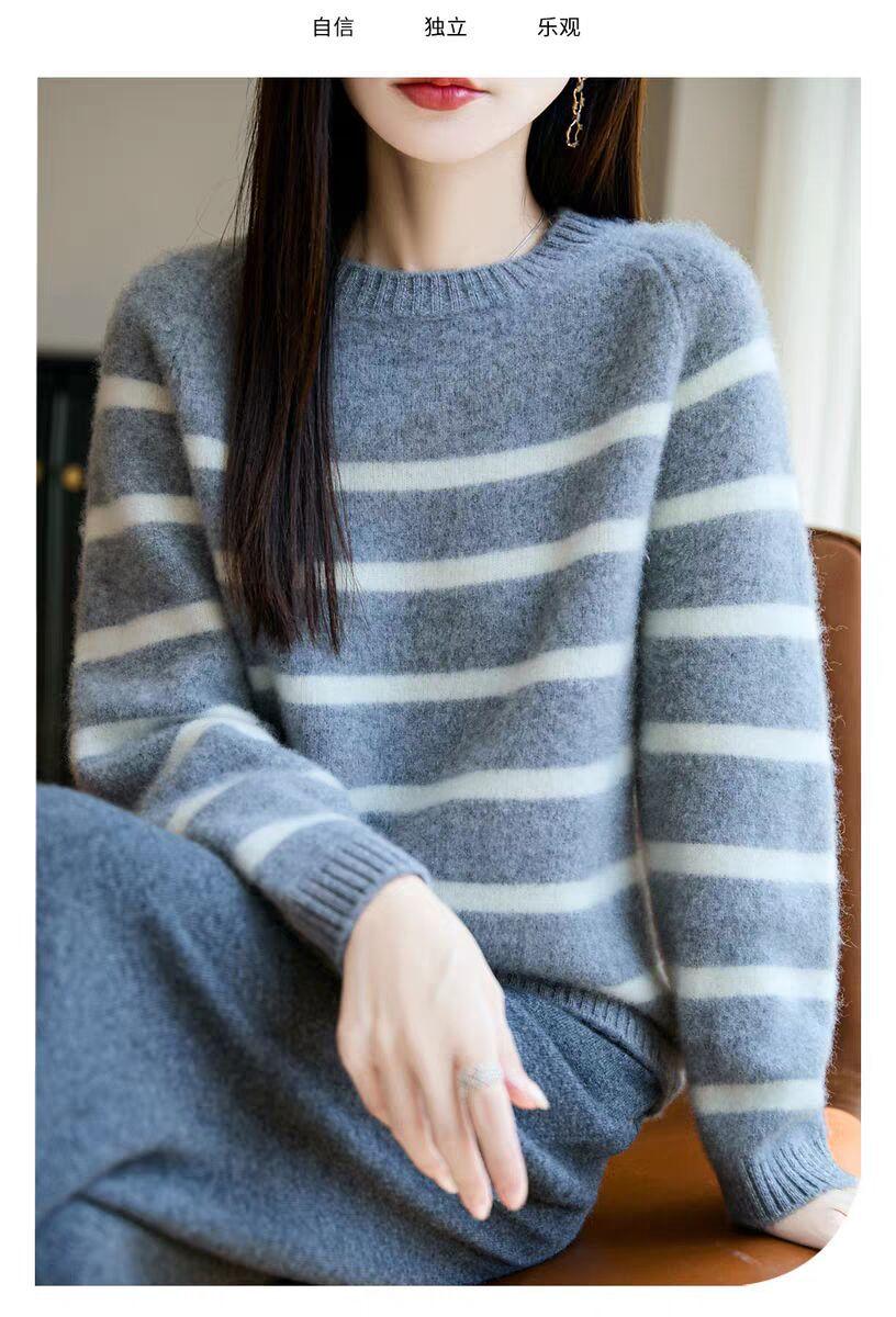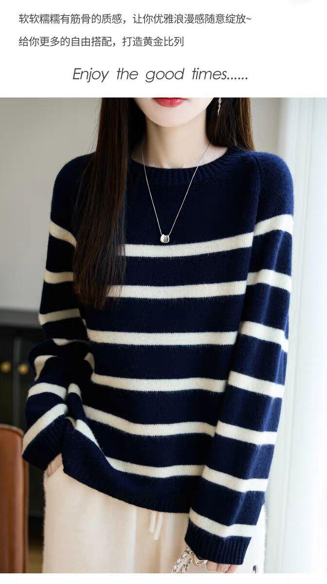 Suéter Tricotado Feminino Outono/Inverno 2025 Novo Moderno e Estiloso Gola Redonda Listrado Colorblock Versátil Manga Longa