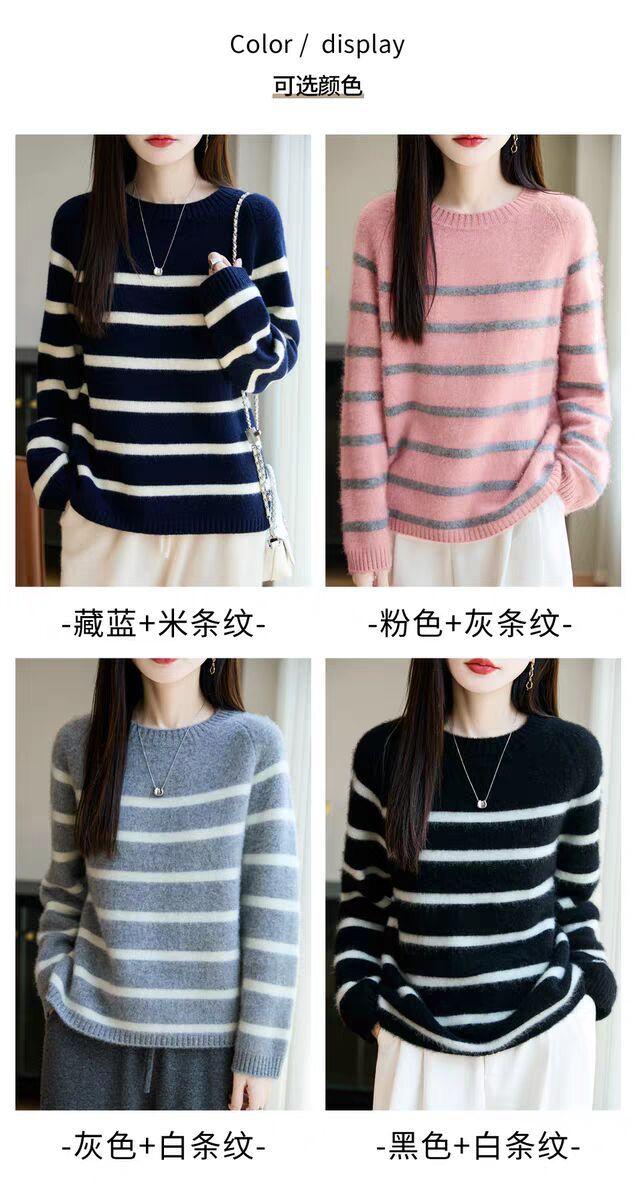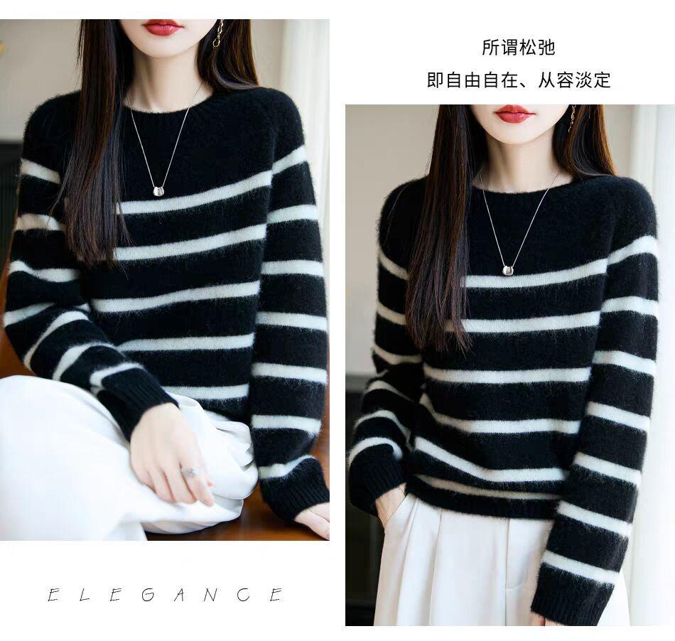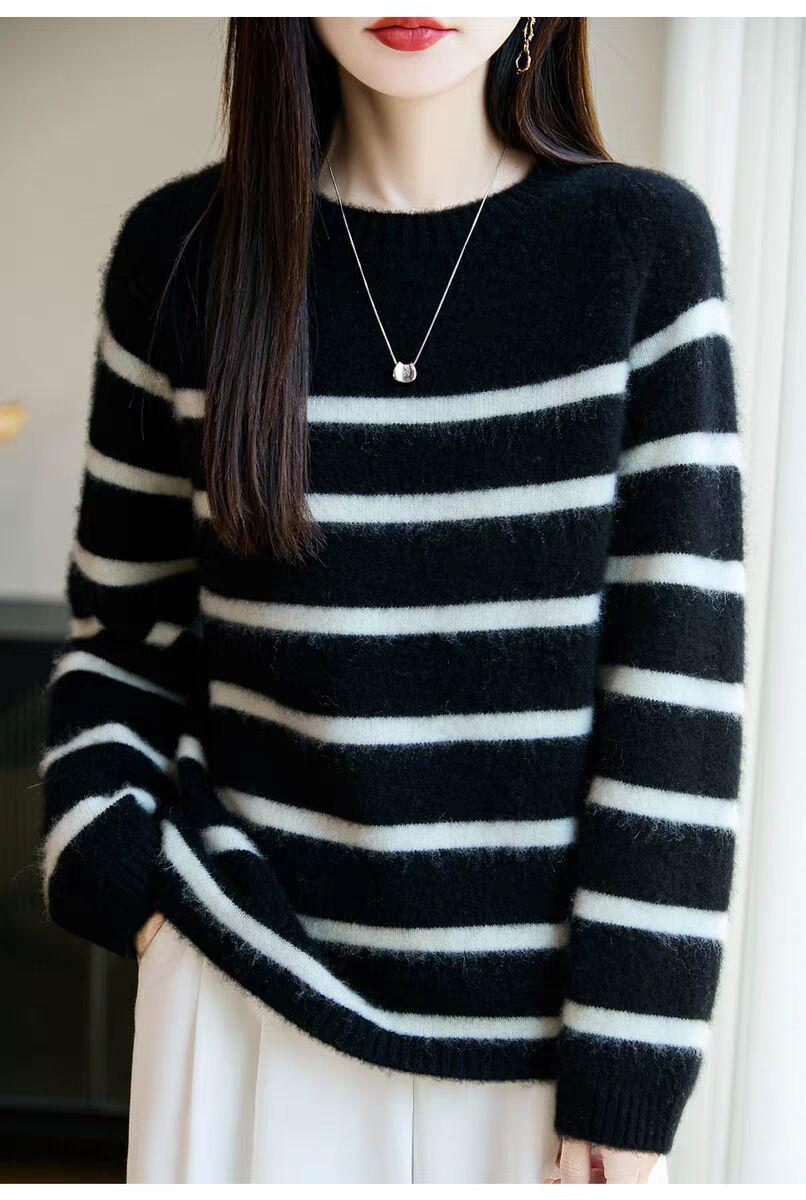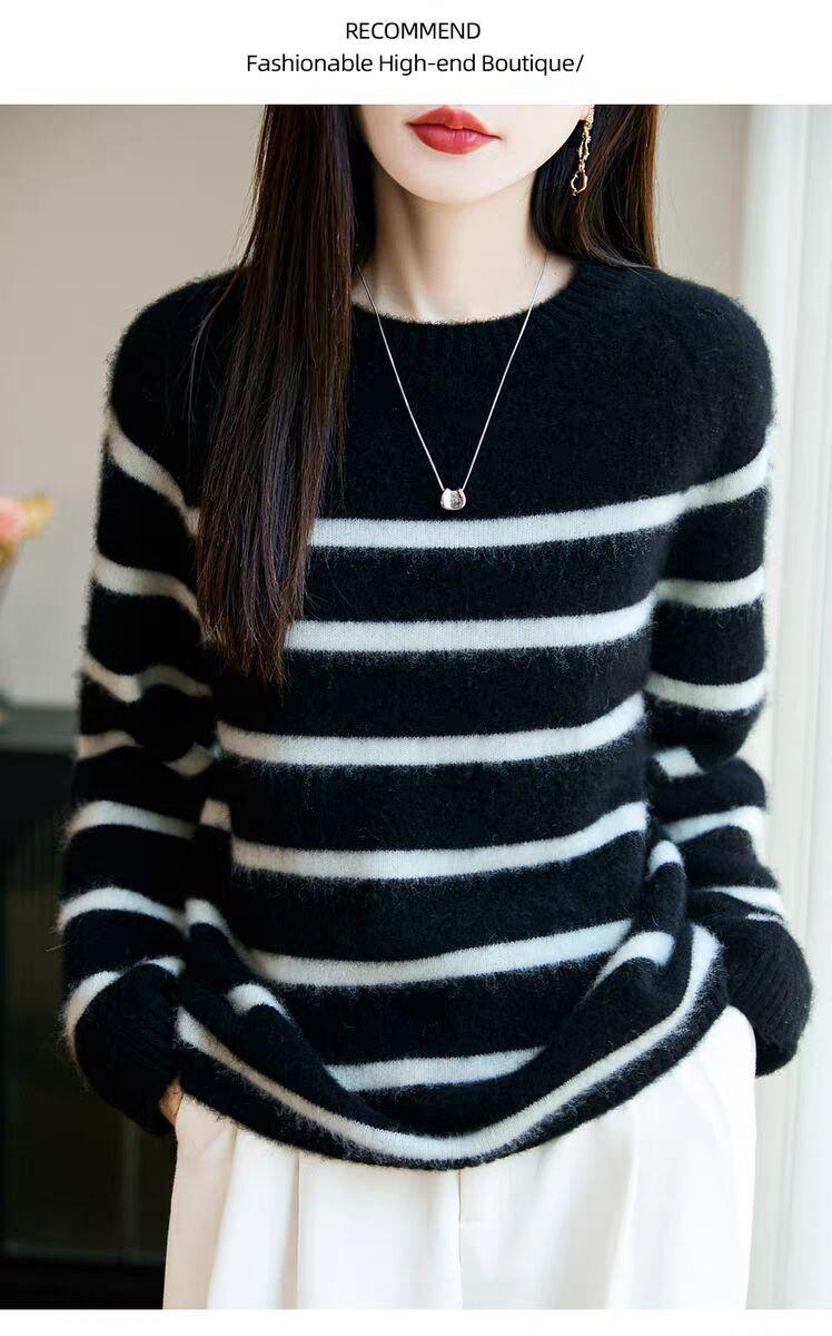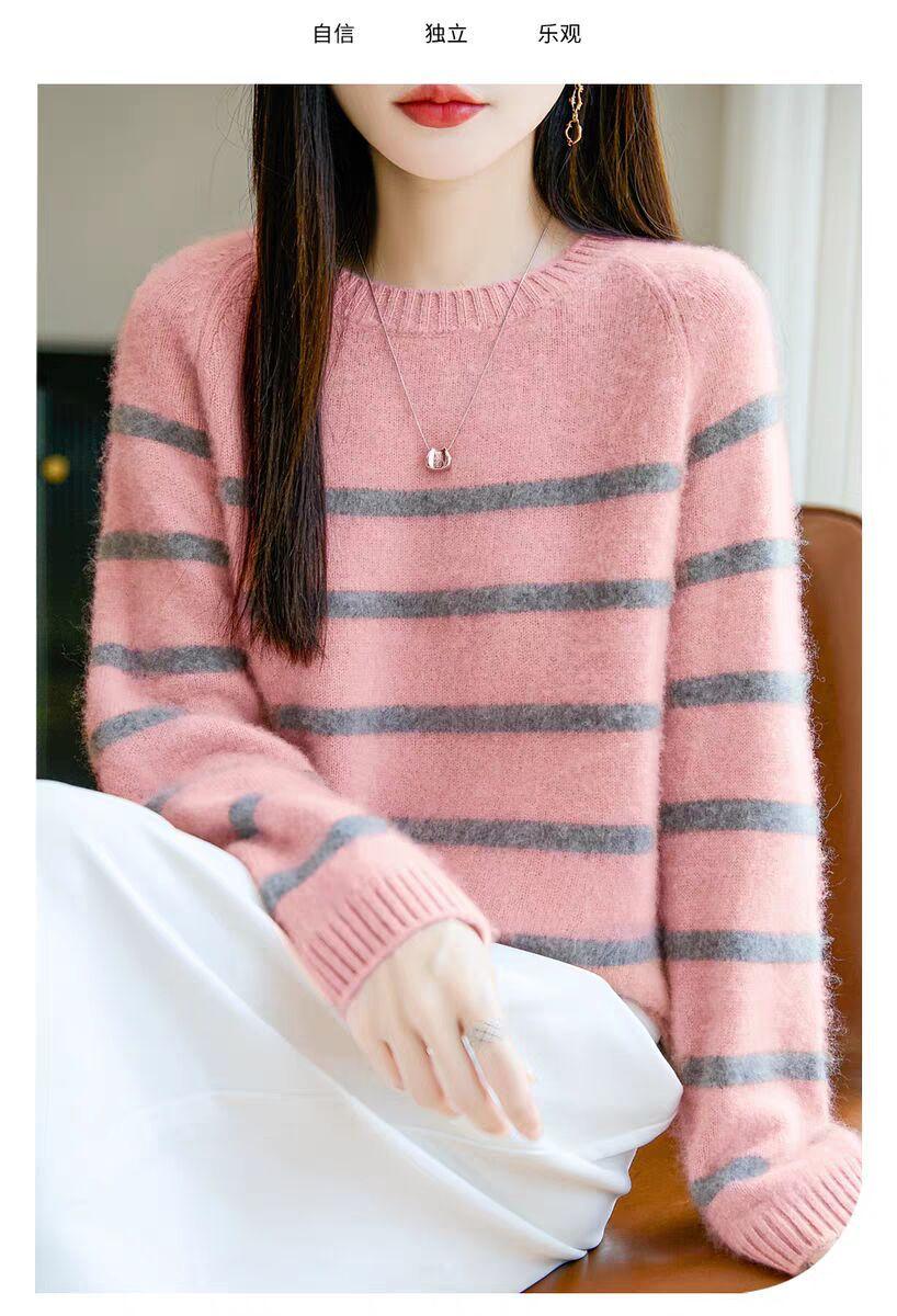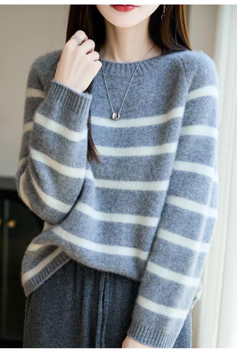 Suéter Tricotado Feminino Outono/Inverno 2025 Novo Moderno e Estiloso Gola Redonda Listrado Colorblock Versátil Manga Longa