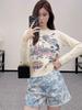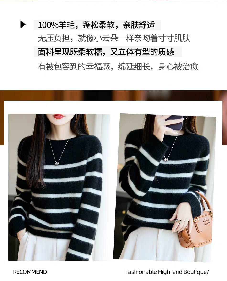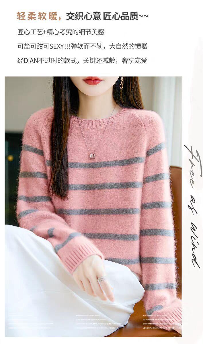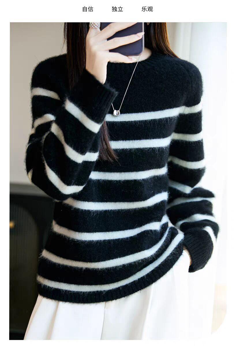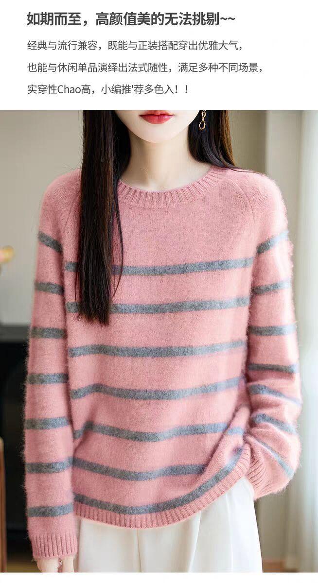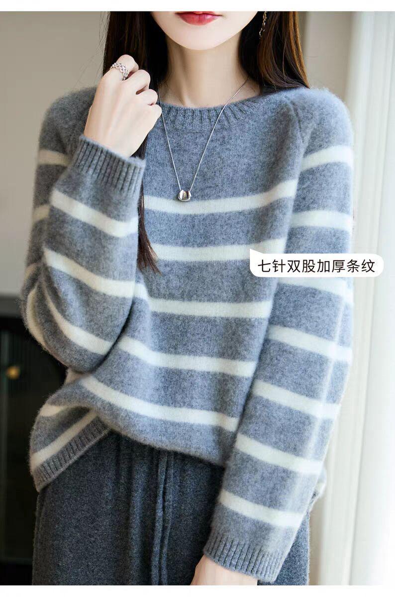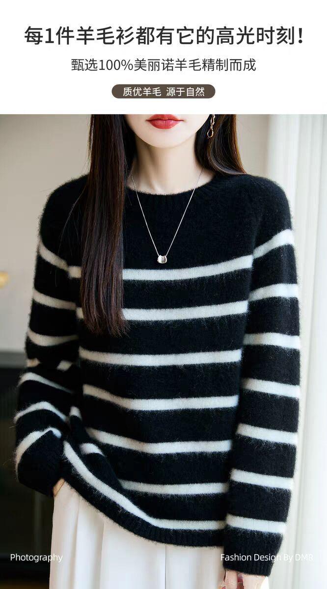 Suéter Tricotado Feminino Outono/Inverno 2025 Novo Moderno e Estiloso Gola Redonda Listrado Colorblock Versátil Manga Longa