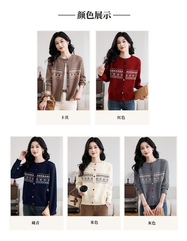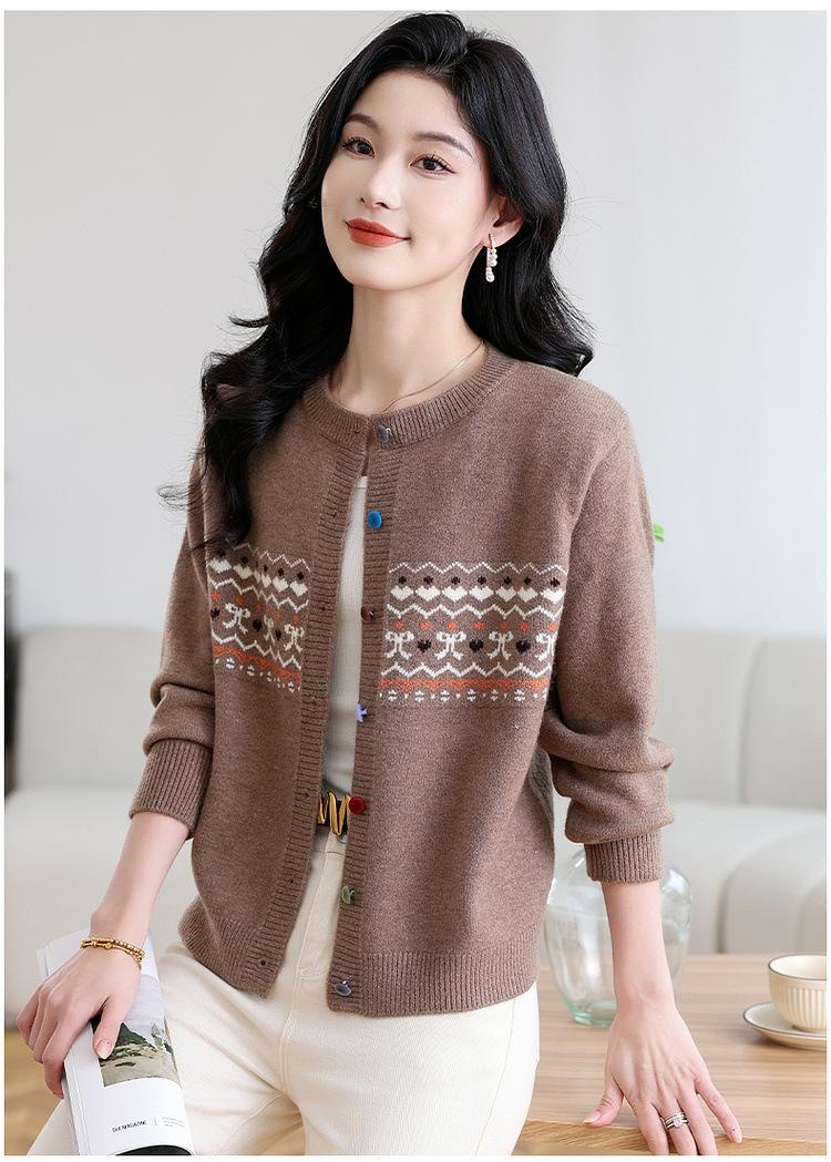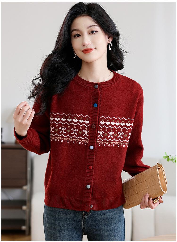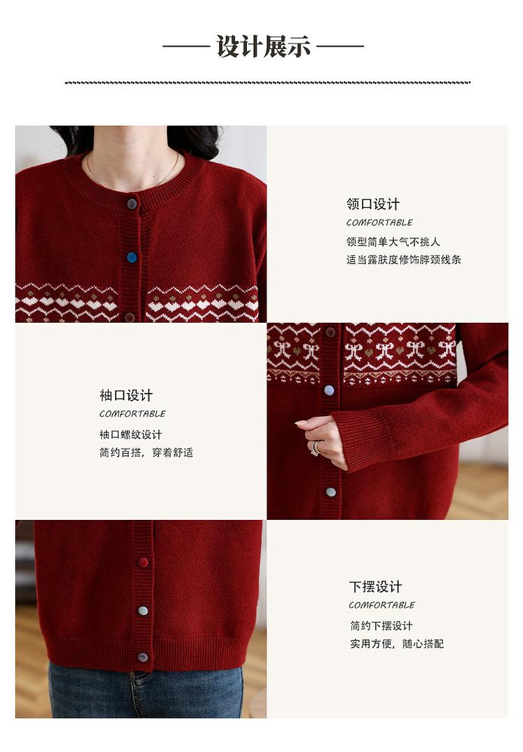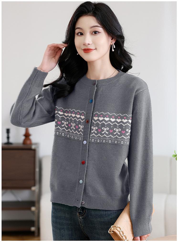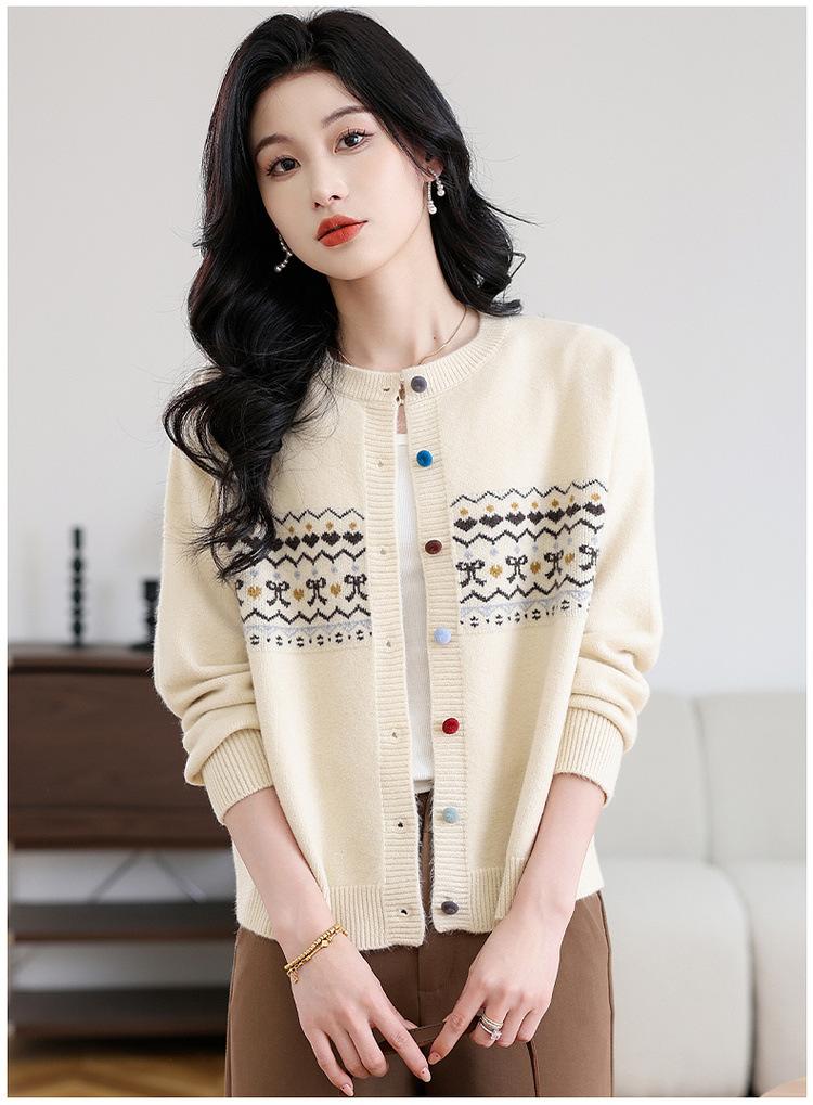 Novo Suéter Solto Casual Macio Feminino Outono/Inverno 2025 Cardigã Feminino Tricot Jacquard Bloco de Cores Retrô