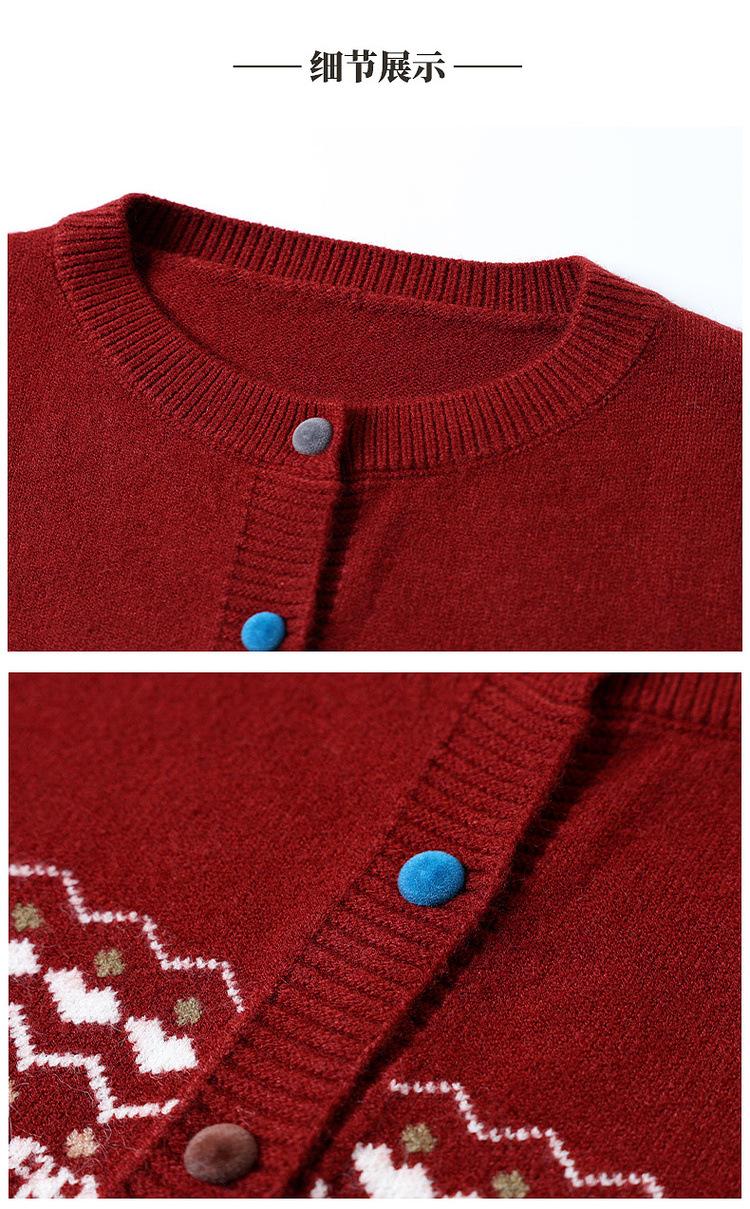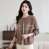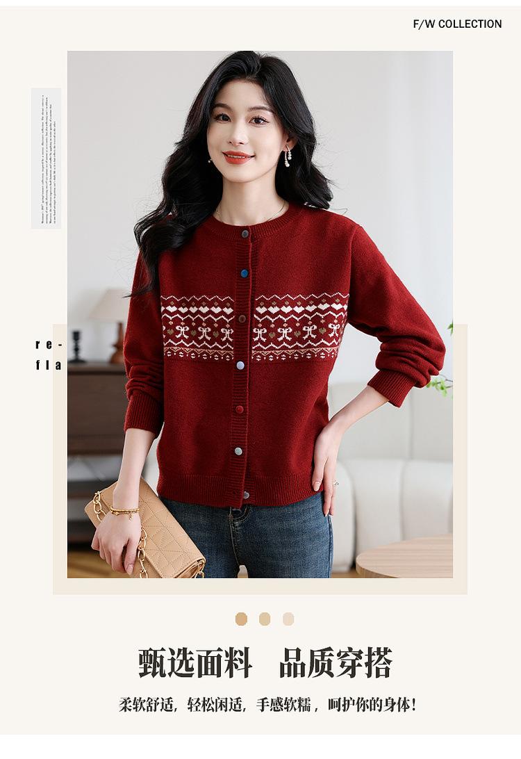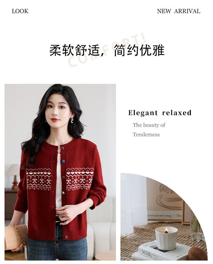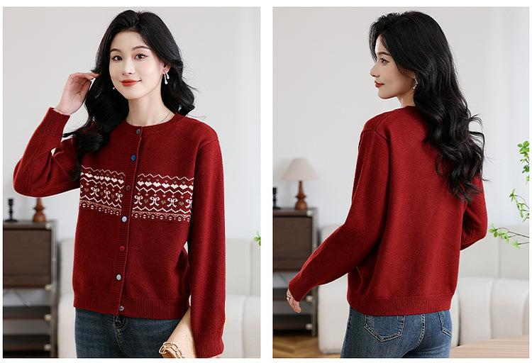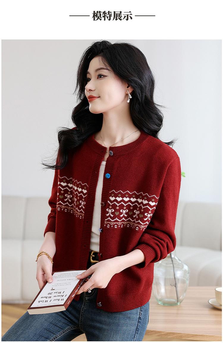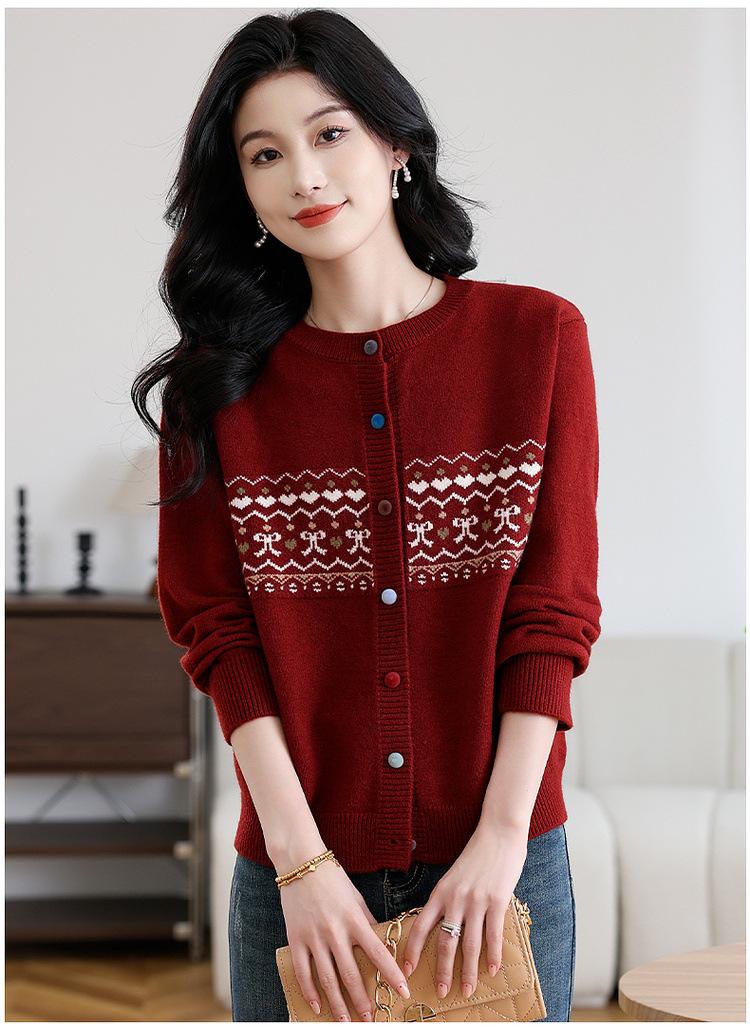 Novo Suéter Solto Casual Macio Feminino Outono/Inverno 2025 Cardigã Feminino Tricot Jacquard Bloco de Cores Retrô