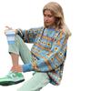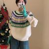 Suéter Retrô Coreano Listrado em Bloco de Cores Azul Feminino Outono Inverno Solto Preguiçoso Casual High-End Tricô Espesso