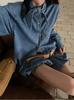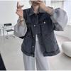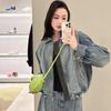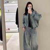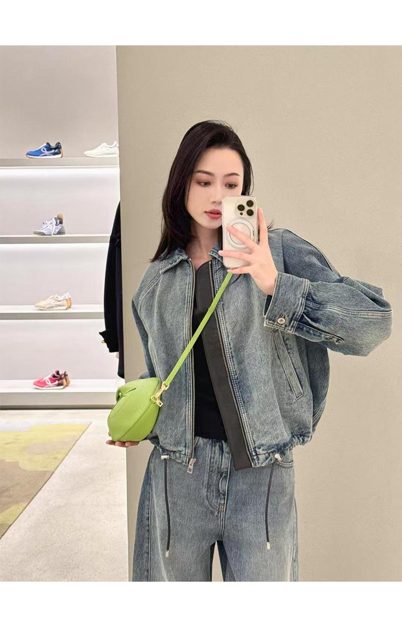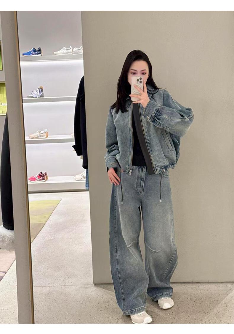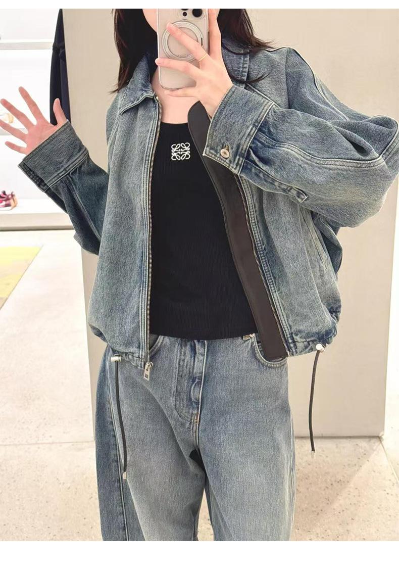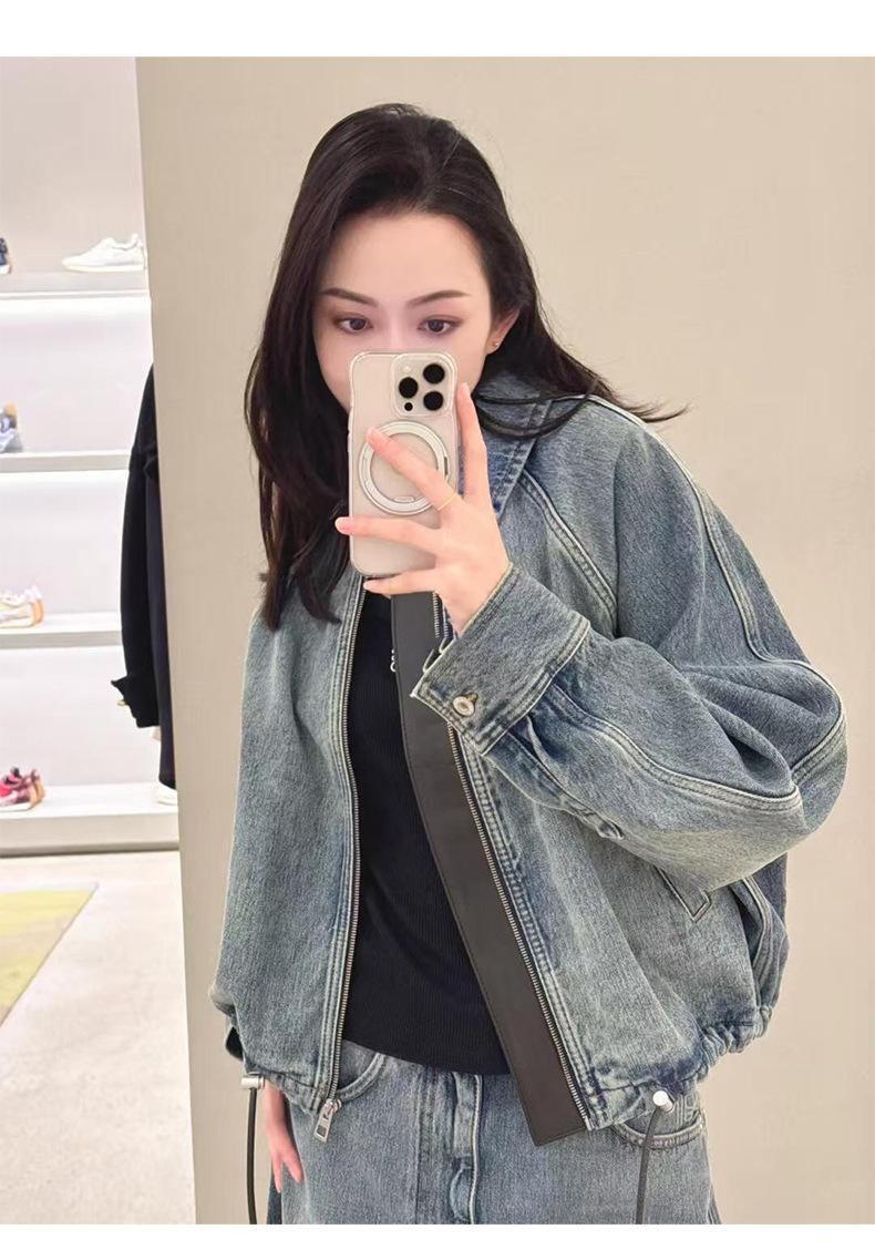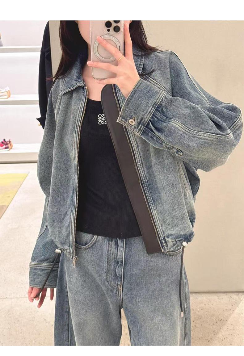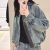 Coreano Dongdaemun 2025 Outono Novo Design Senso Casual Emagrecimento Lapela Desgastada Zíper Jaqueta Casaco Jeans Feminino