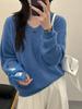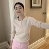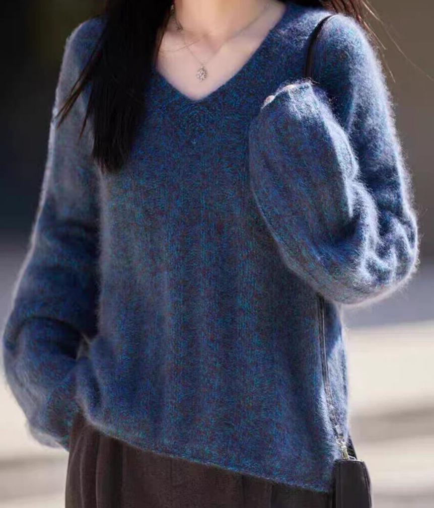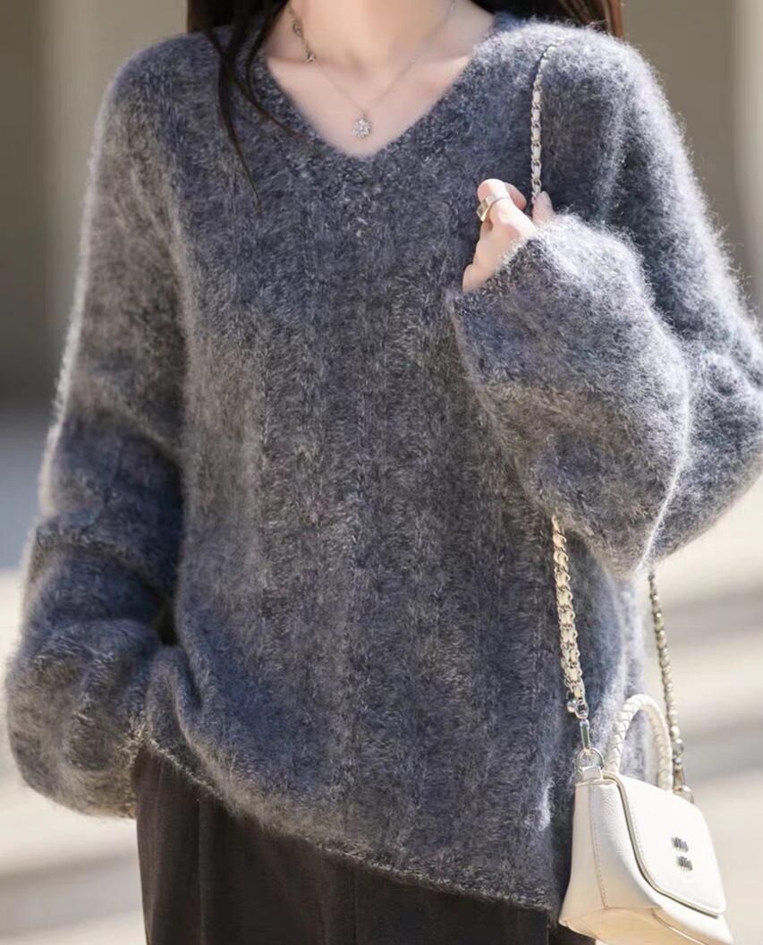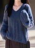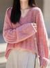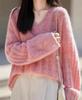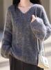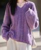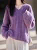 Suéter Tricotado Roxo Decote V Manga Longa Feminino Primavera e Outono 2025 Nova Moda Outono Suéter Solto Delicado Top Feminino