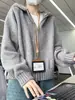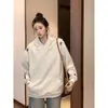 Suéter Moletom Feminino Outono Inverno Folgado Estilo Preguiçoso com Capuz e Cordão 2025 Top de Tricô Coreano Feminino