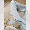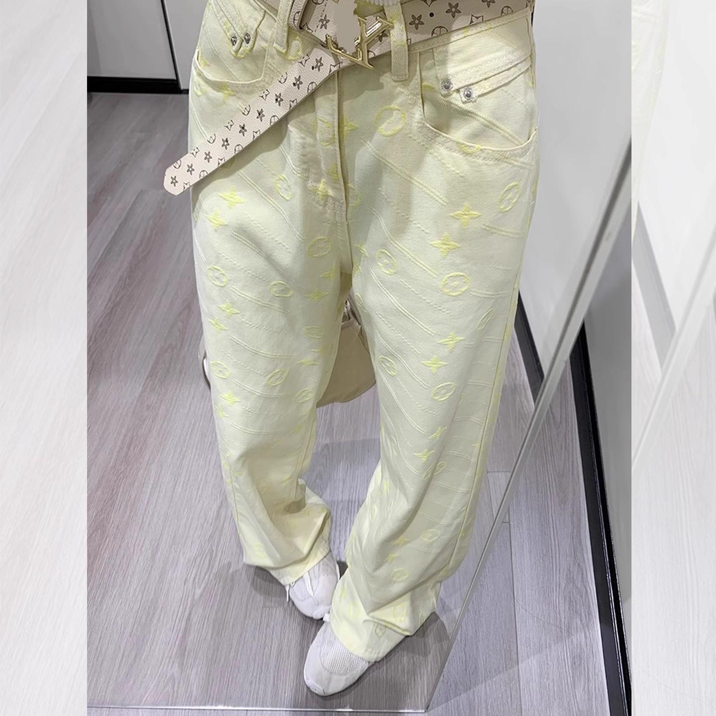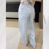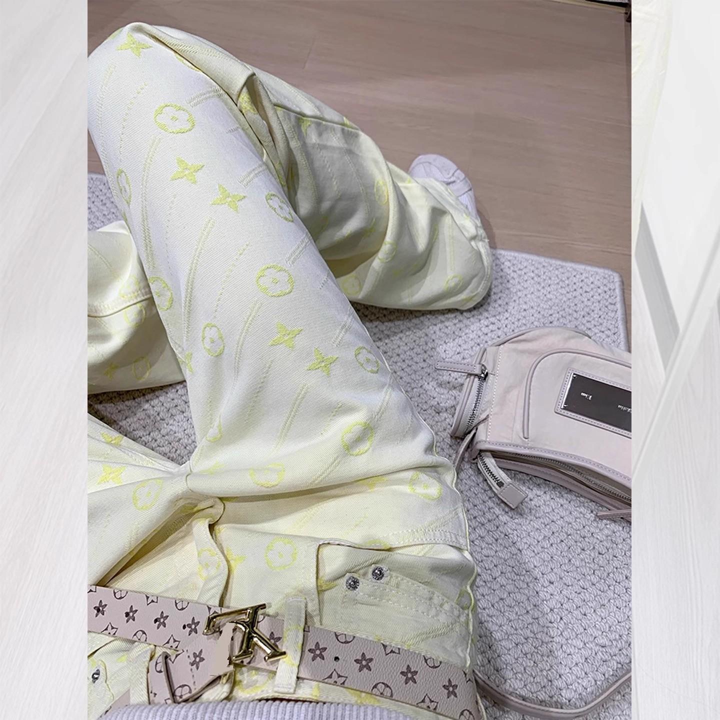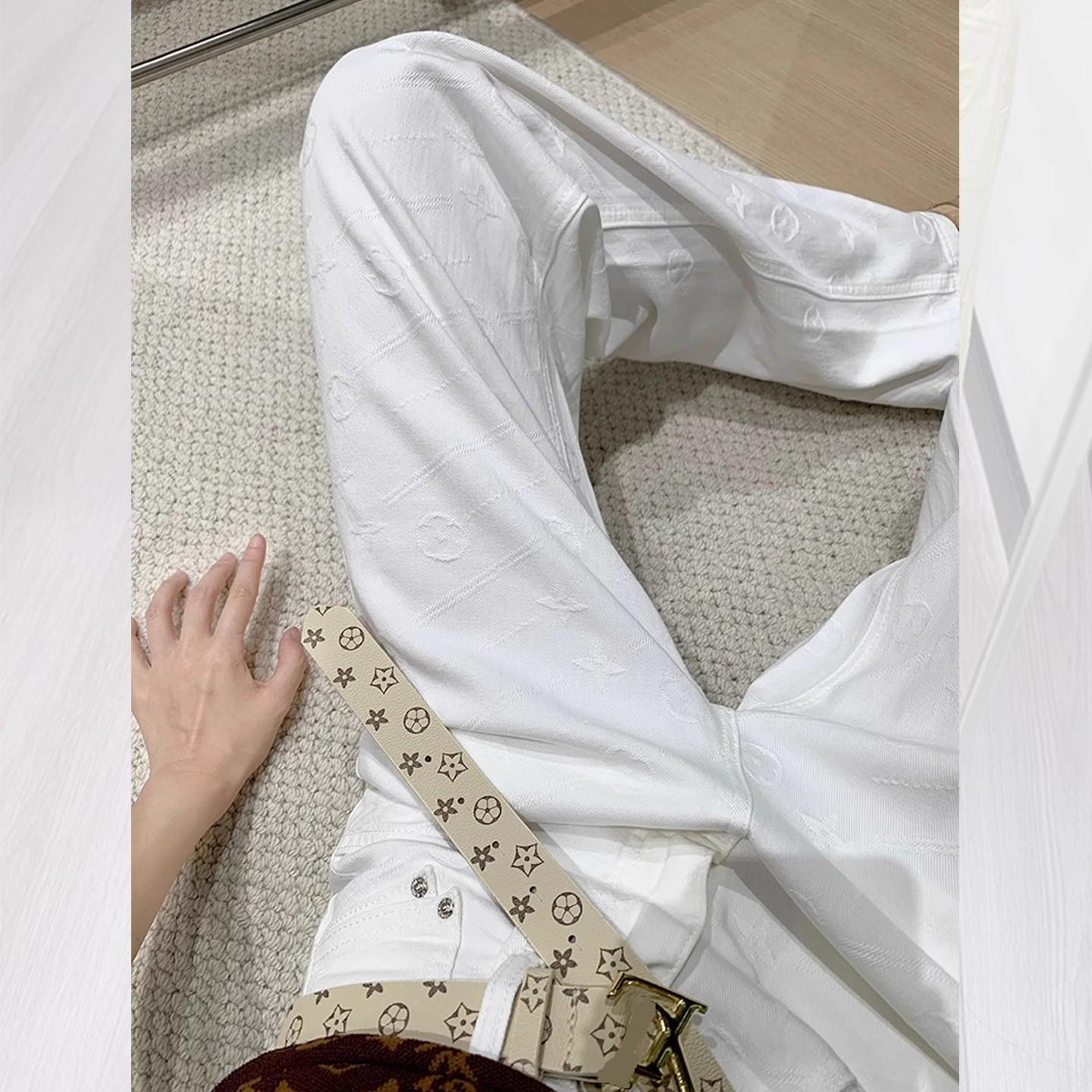 Calça jeans jacquard azul claro estilo Chanel feminina 2025 novo bordado design nicho cintura alta modeladora perna reta