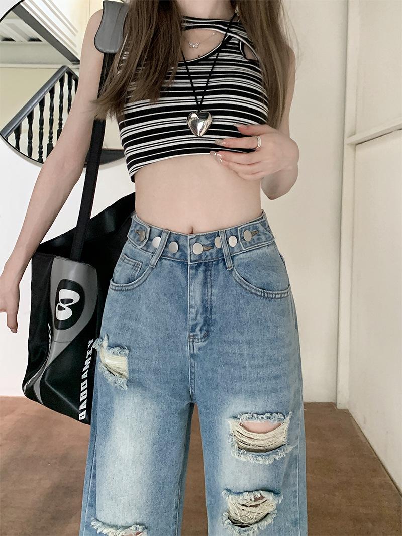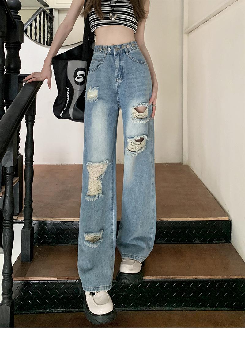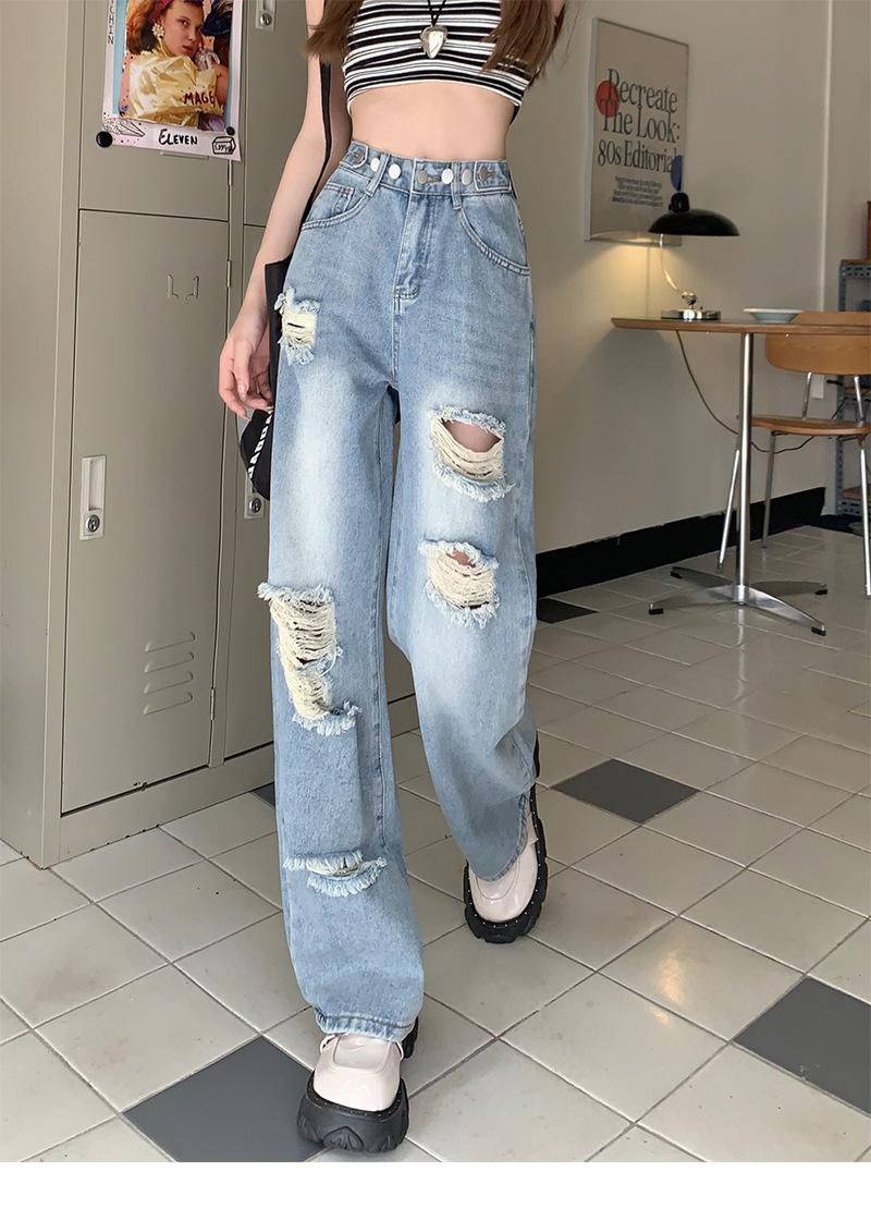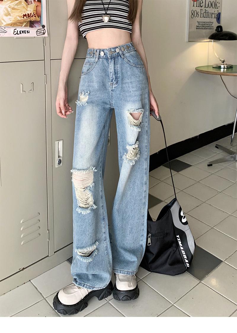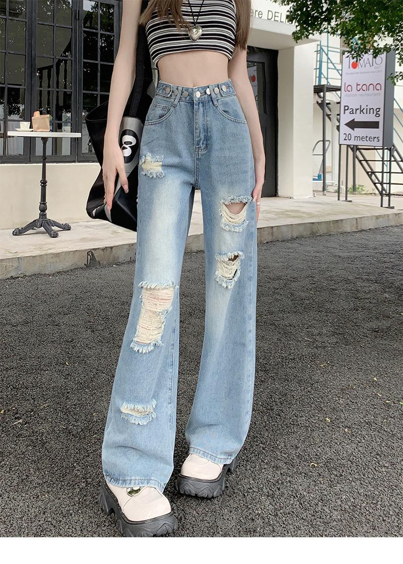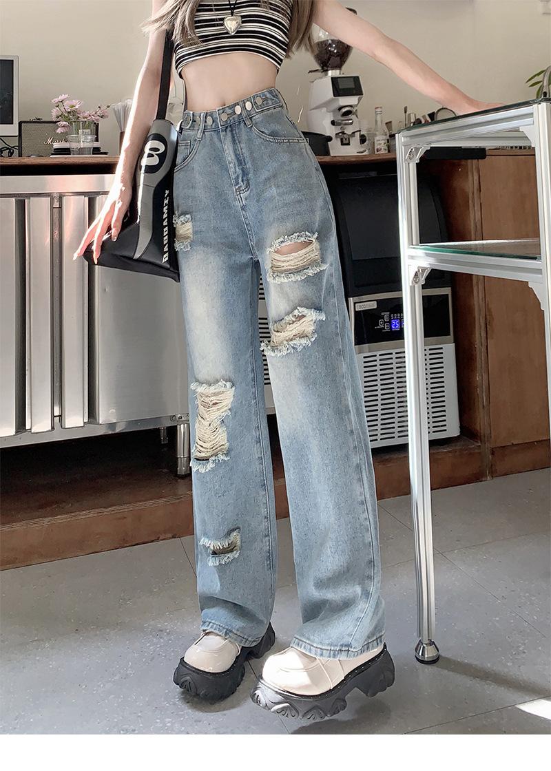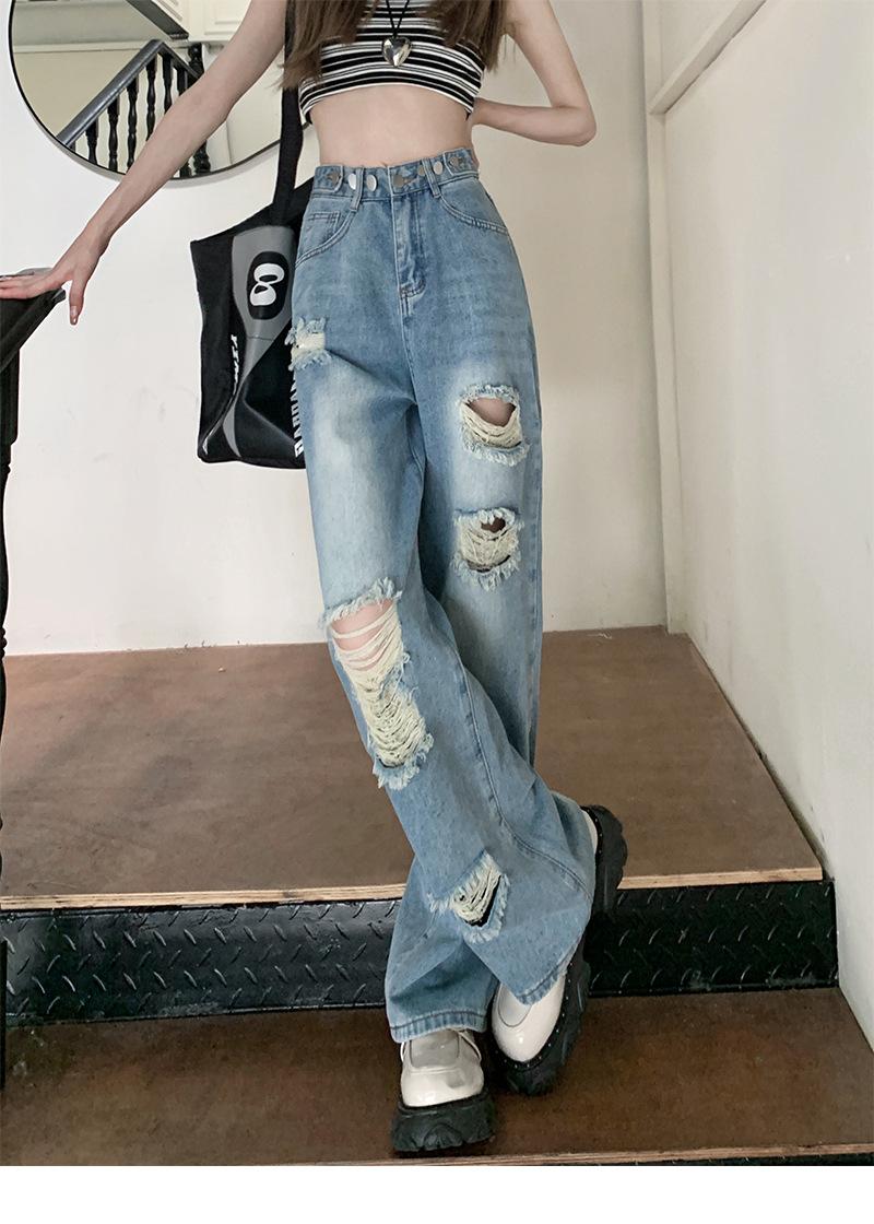 Sudeste Asiático comércio transfronteiriço jeans reto com buracos femininos mulheres uma geração de fornecimento de fábrica Guangzhou Xintang