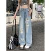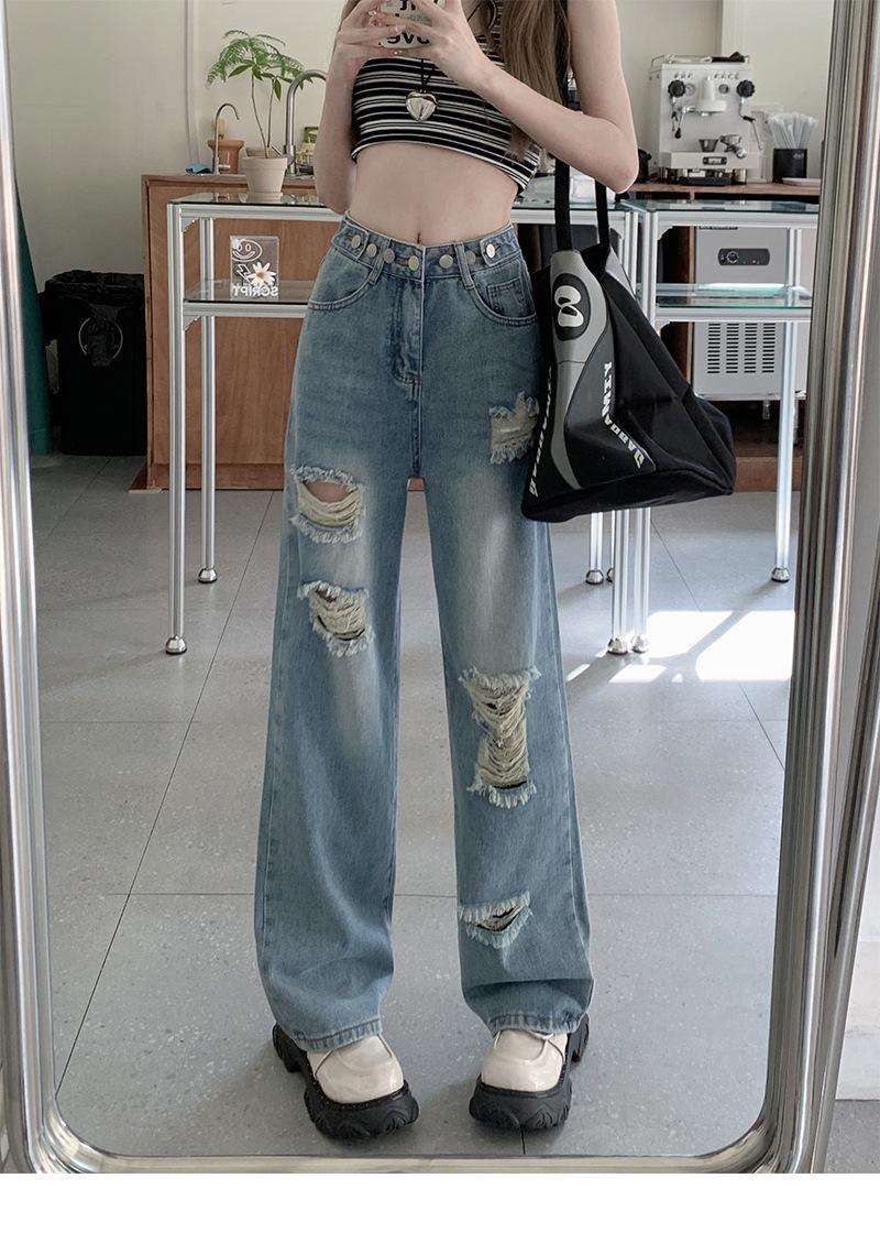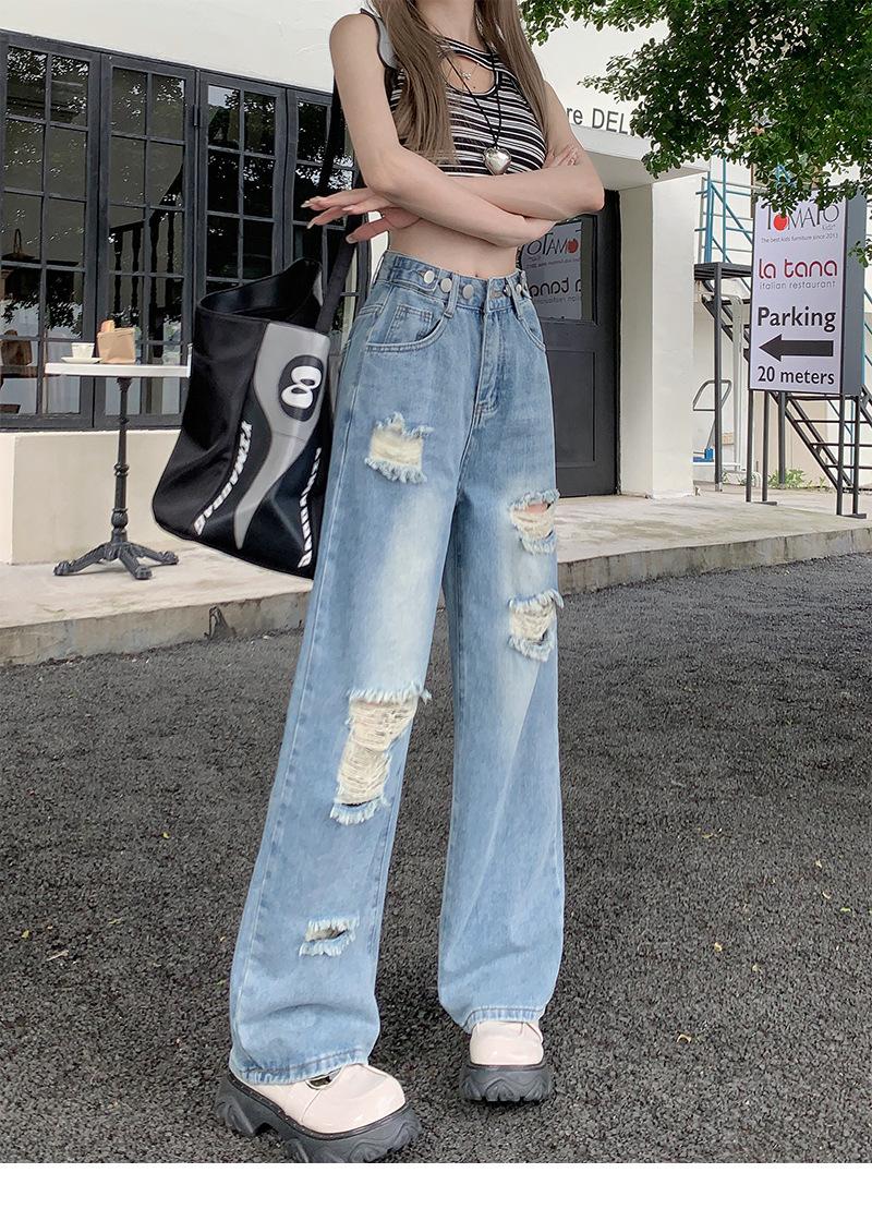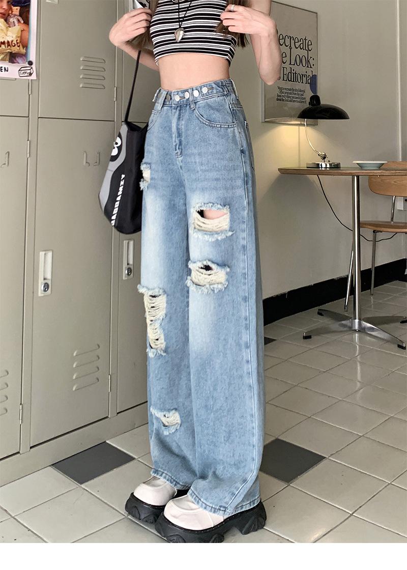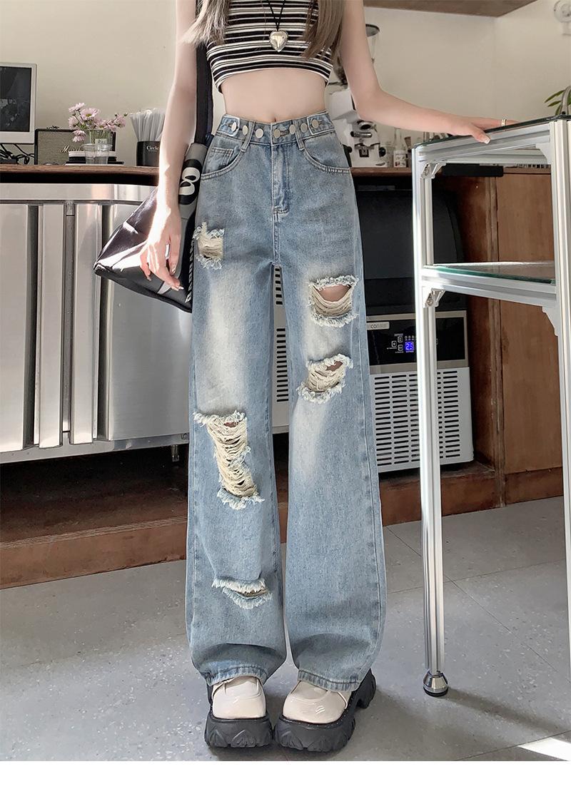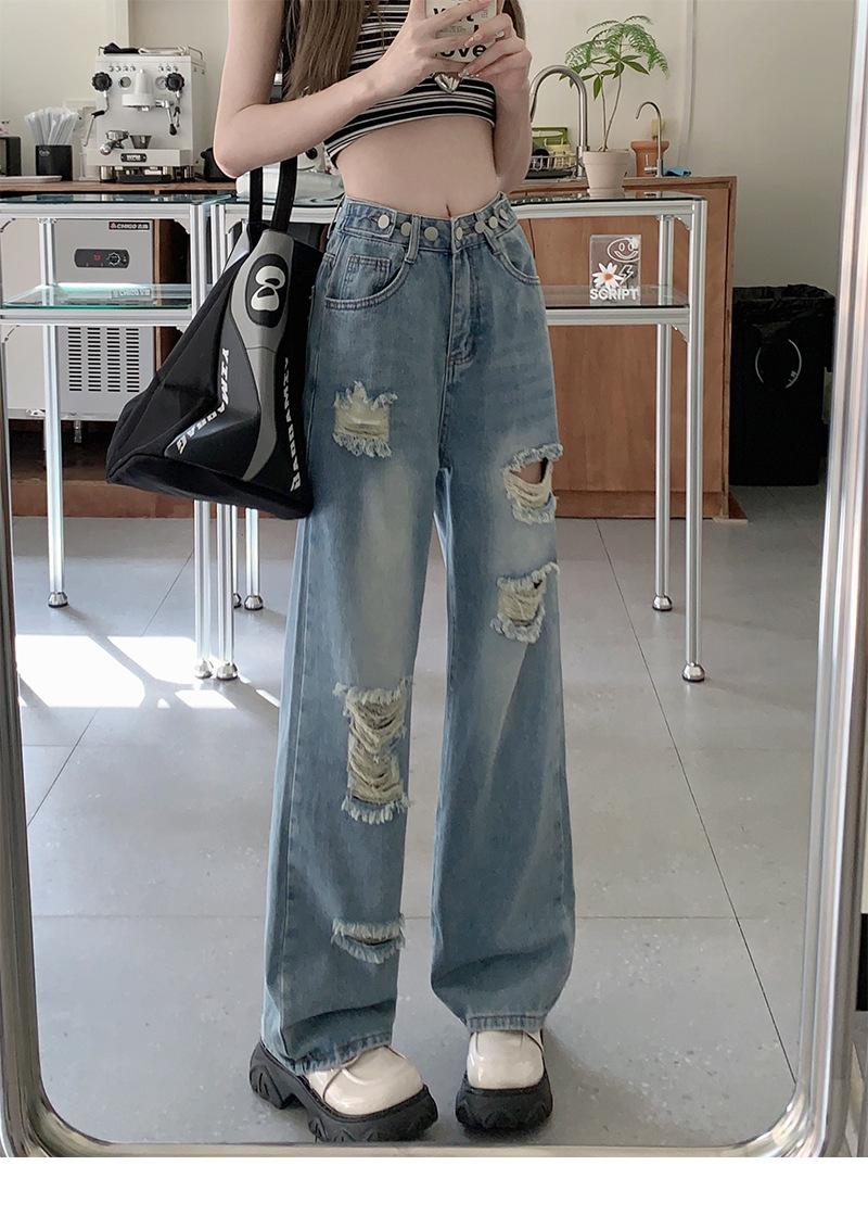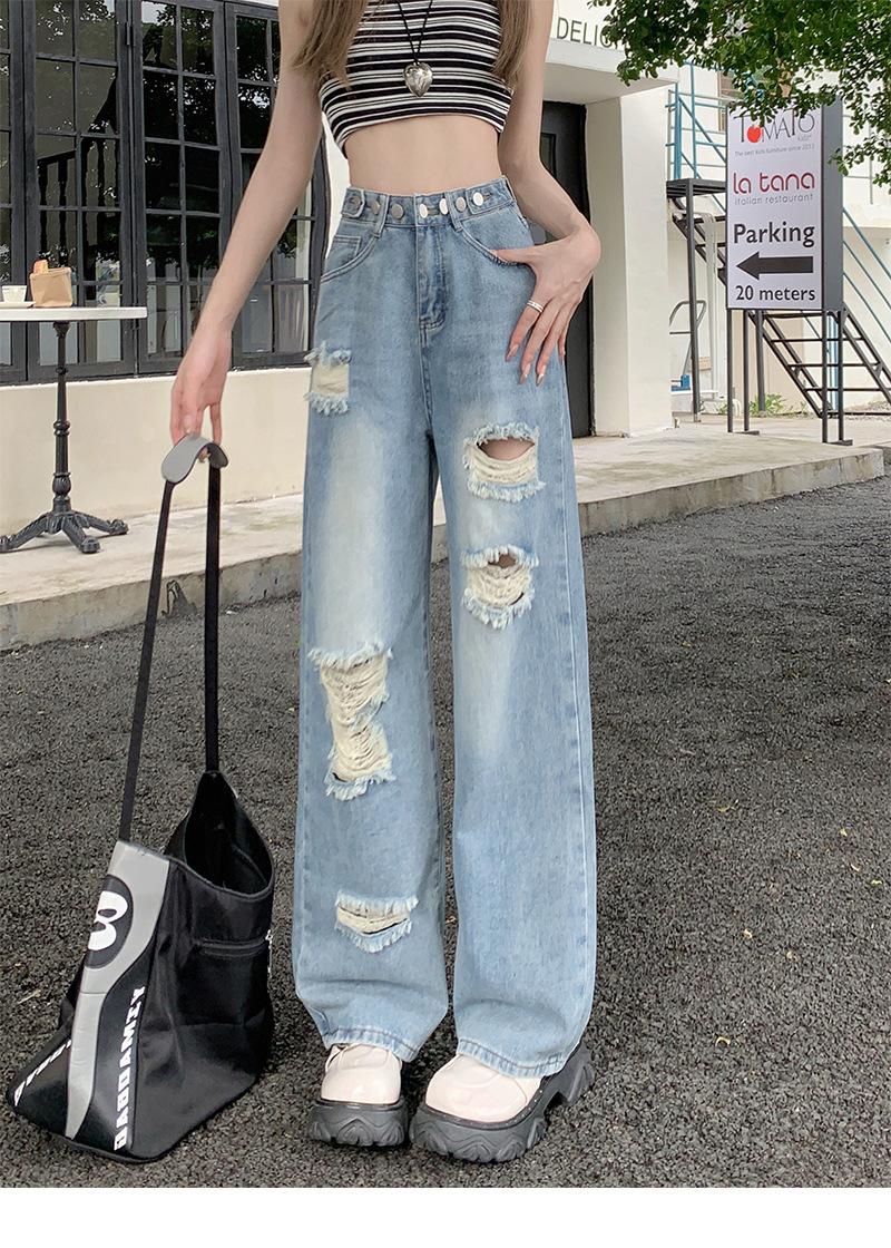 Sudeste Asiático comércio transfronteiriço jeans reto com buracos femininos mulheres uma geração de fornecimento de fábrica Guangzhou Xintang