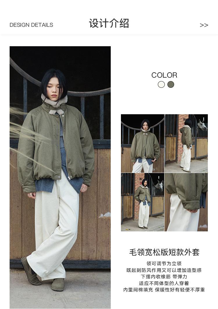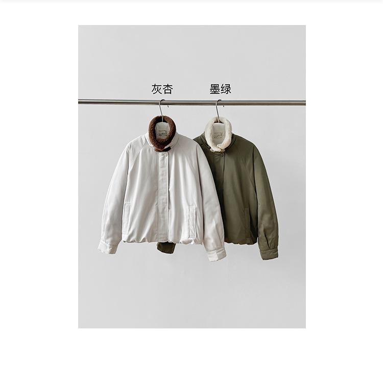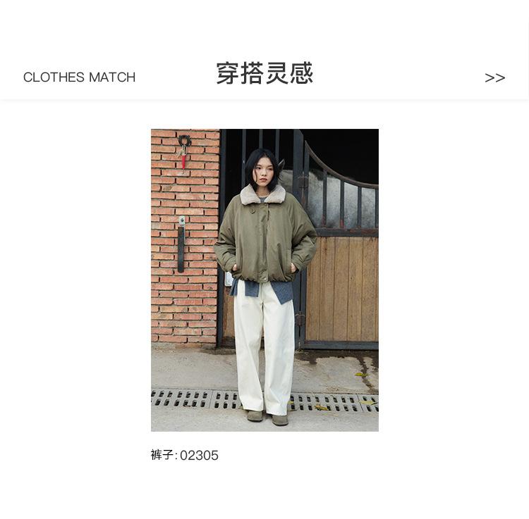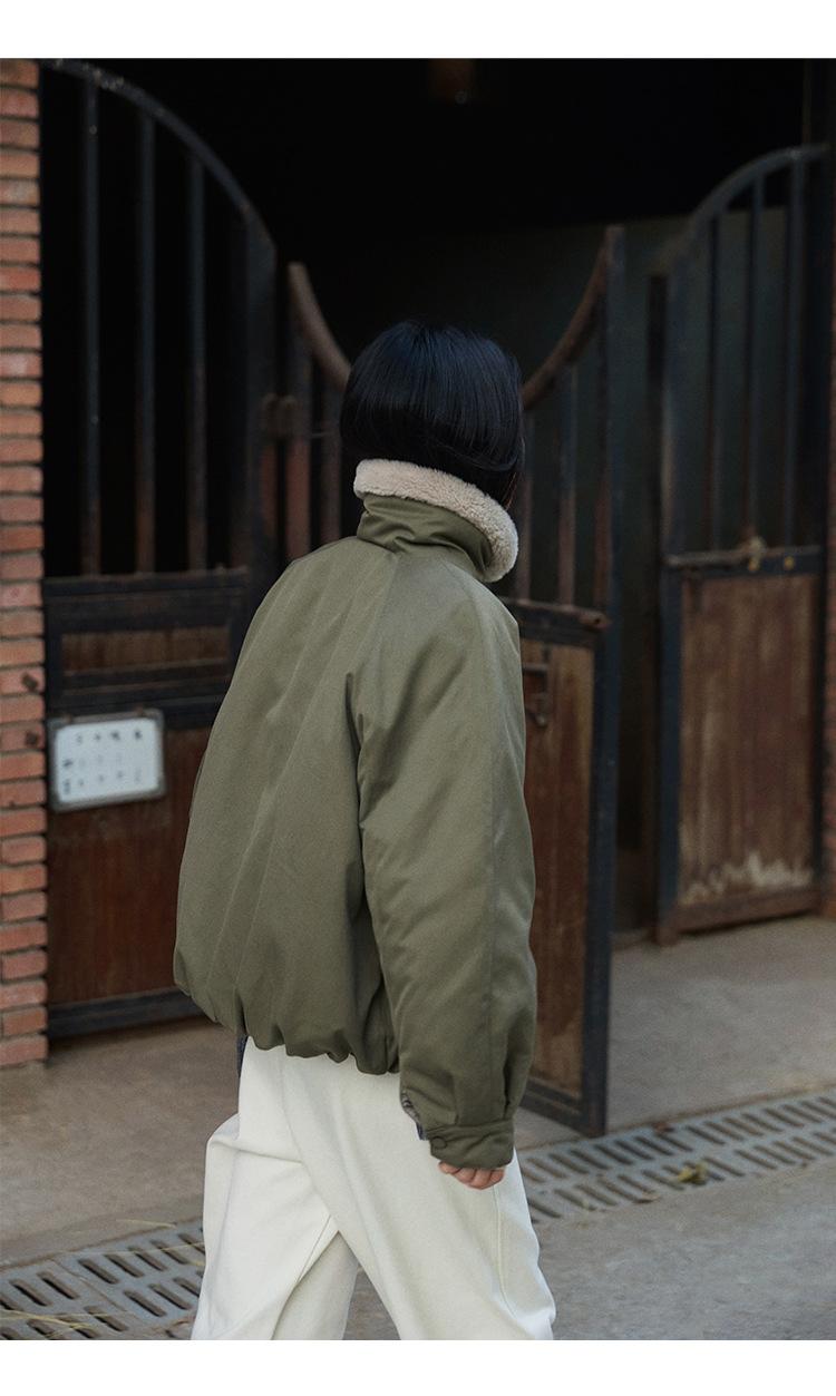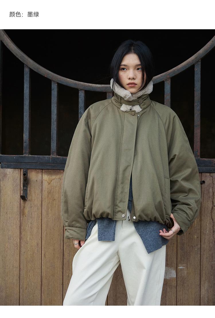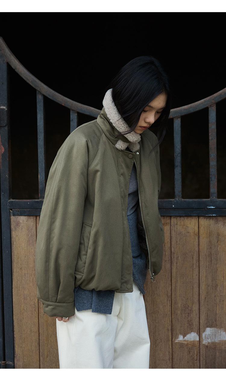 Time Jane Moda Zona de Conforto Solta Curta Jaqueta de Algodão com Gola de Pele Quente Estilo Gola Alta Casaco Corta-vento 02300