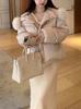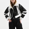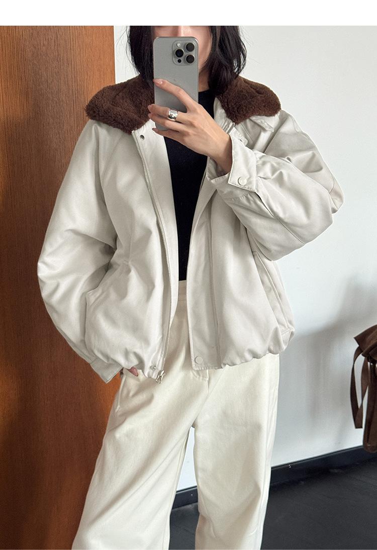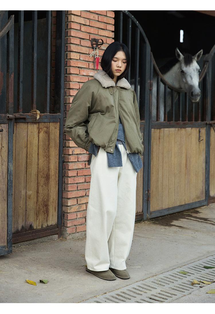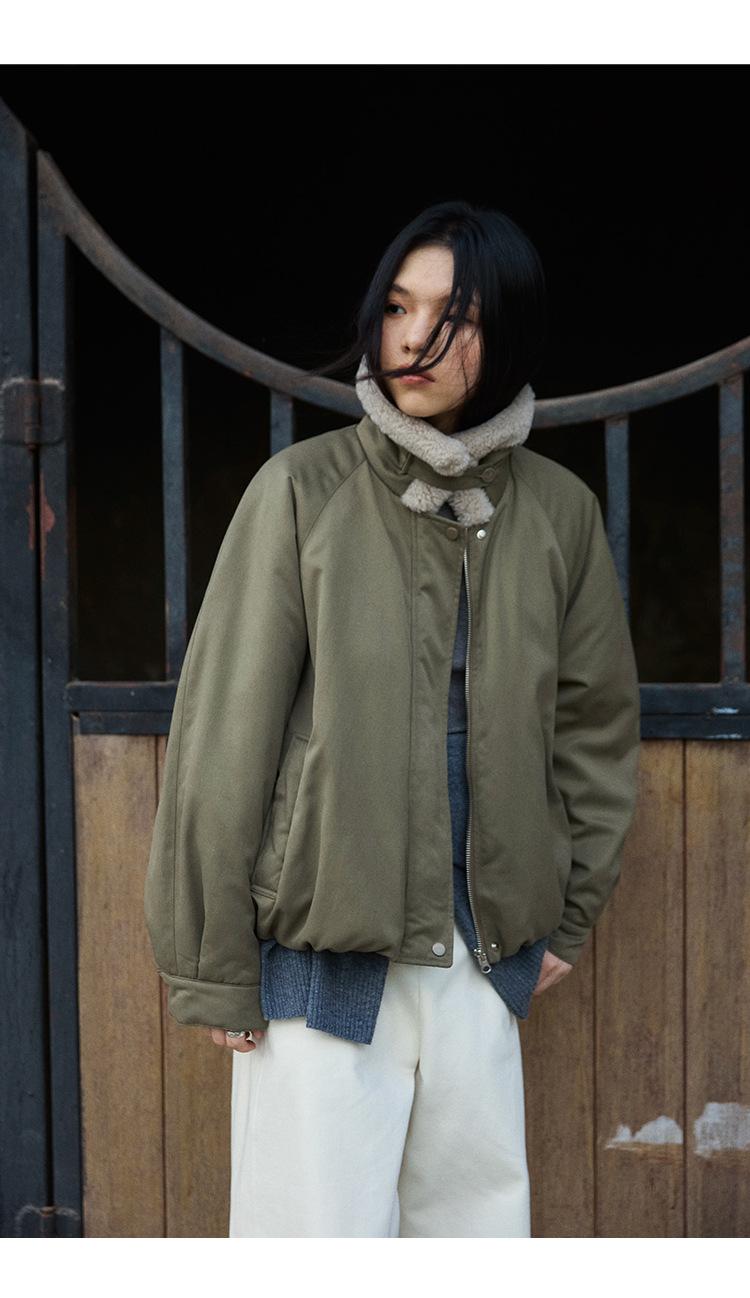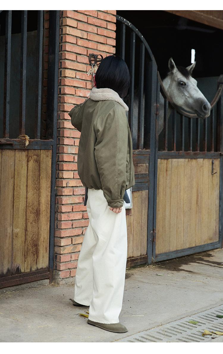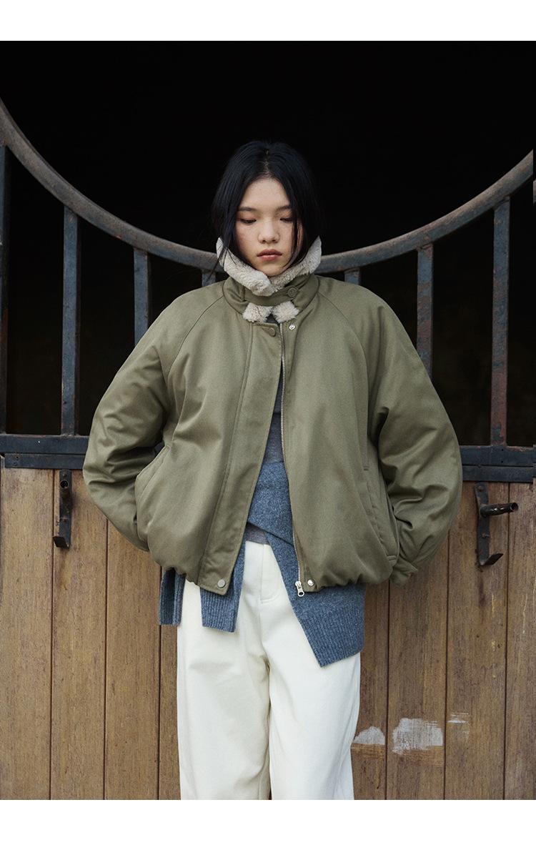 Time Jane Moda Zona de Conforto Solta Curta Jaqueta de Algodão com Gola de Pele Quente Estilo Gola Alta Casaco Corta-vento 02300